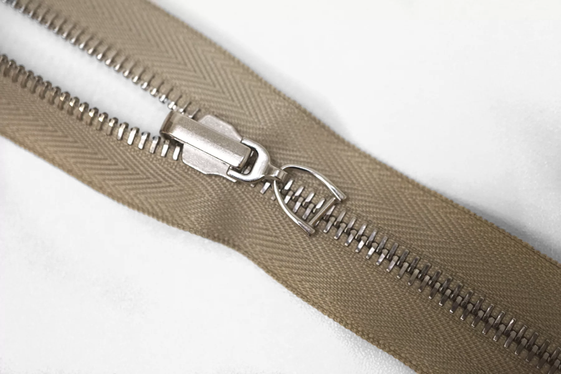 Молния металлическая двухсторонняя от Max Mara разъемная двухзамковая. Цвет молнии бежевый, цвет зубцов, пуллера и слайдера серебряный. Длина 99см. Ширина молнии 3см, ширина зубцов 6мм.