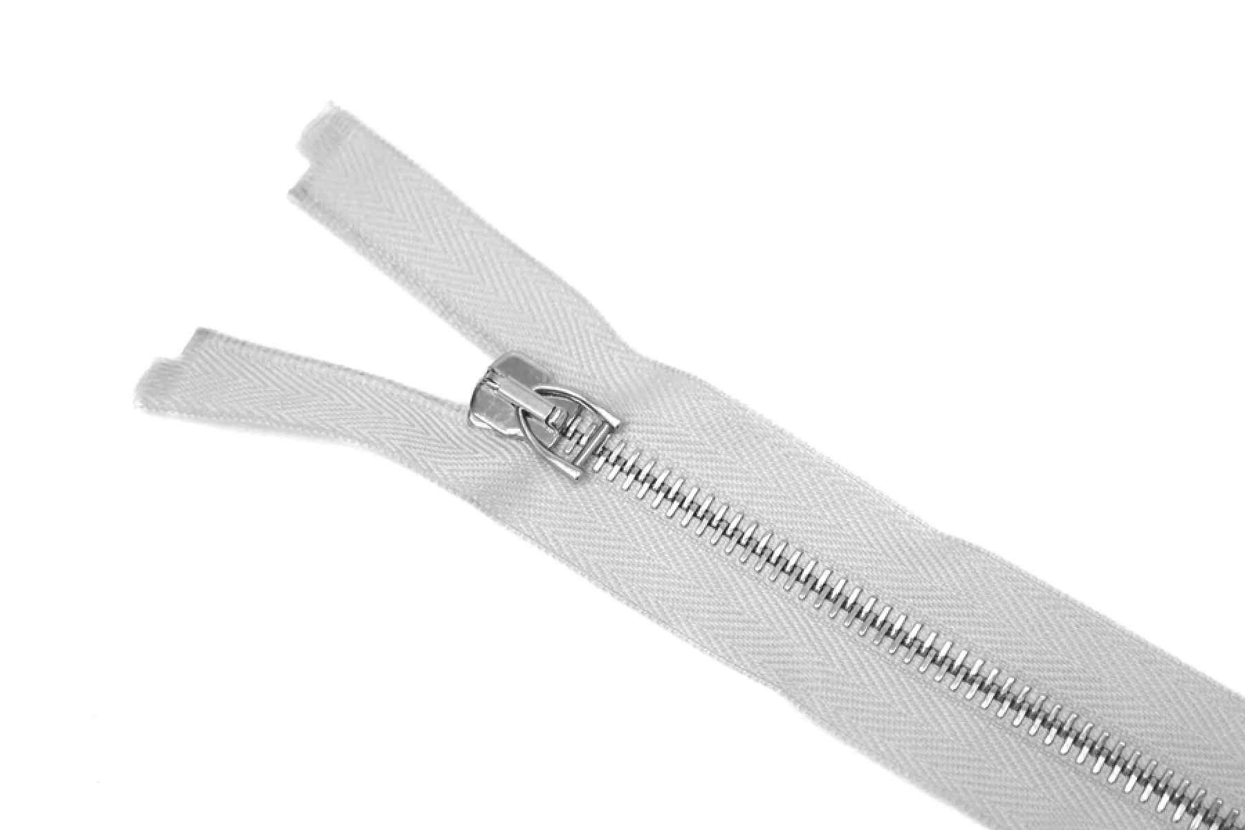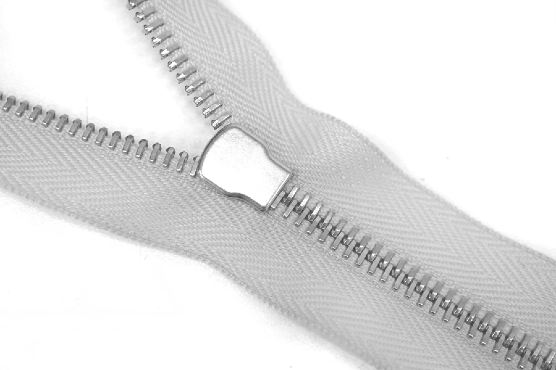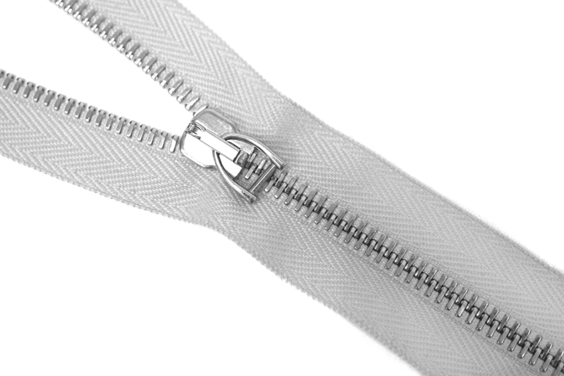 Молния металлическая двухсторонняя от Max Mara разъемная двухзамковая. Цвет молнии светло-серый, цвет зубцов, пуллера и слайдера серебряный. Длина 98см. Ширина молнии 3см, ширина зубцов 6мм.