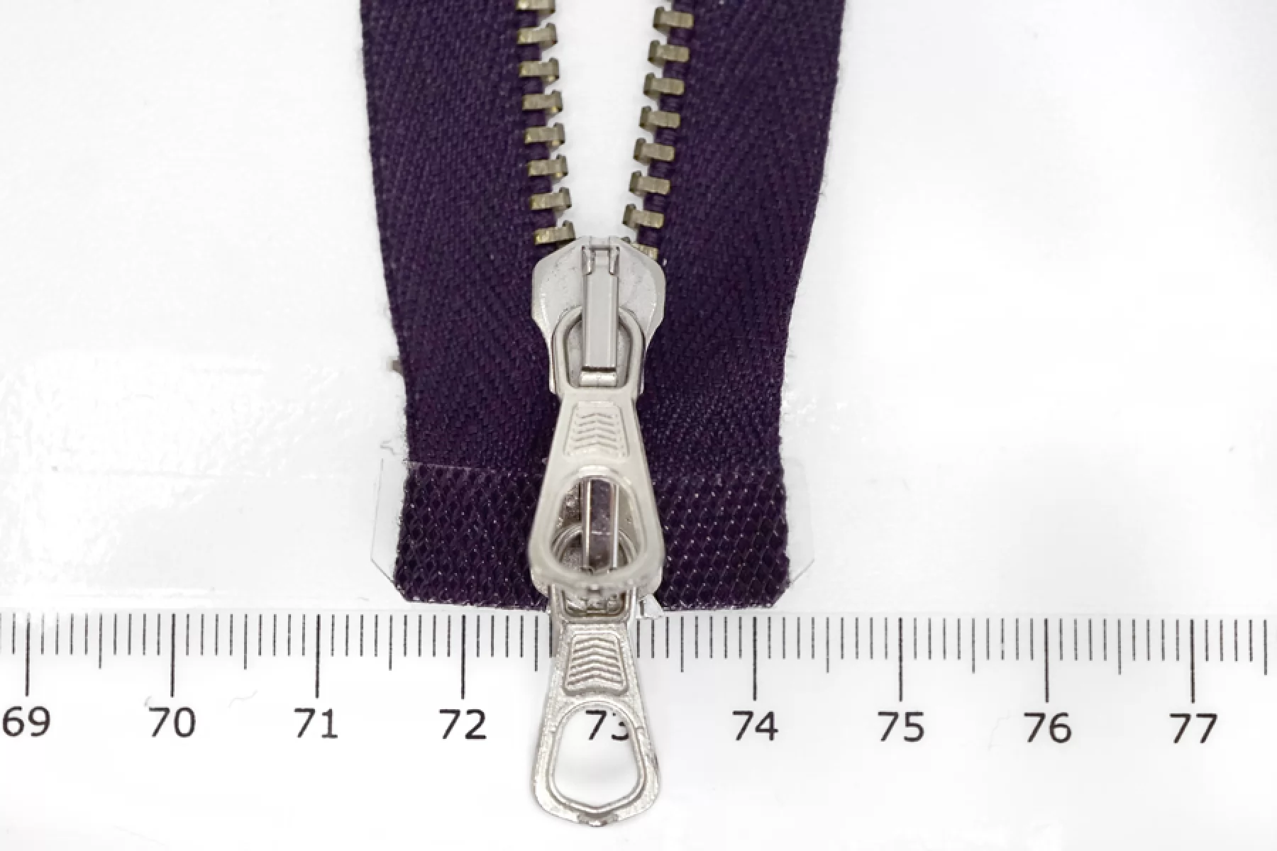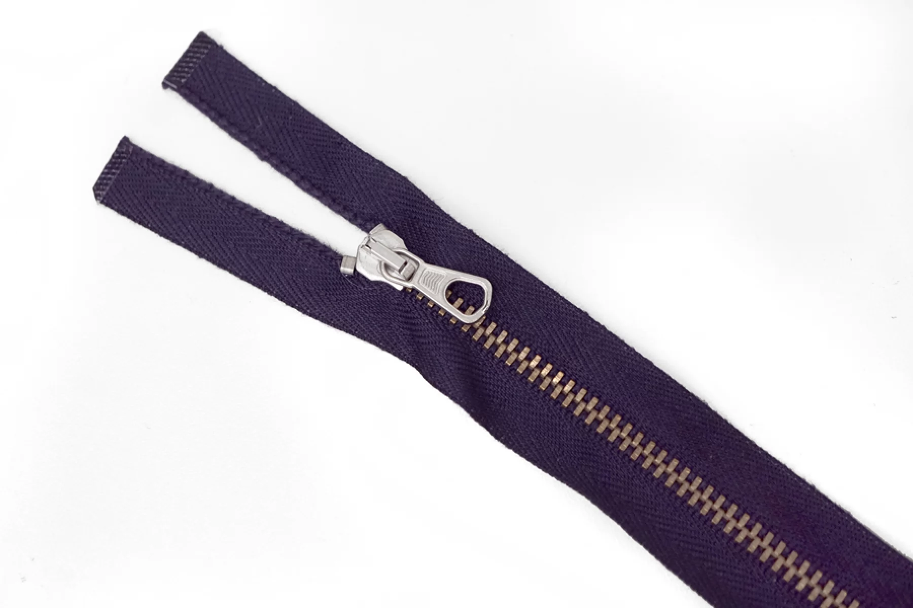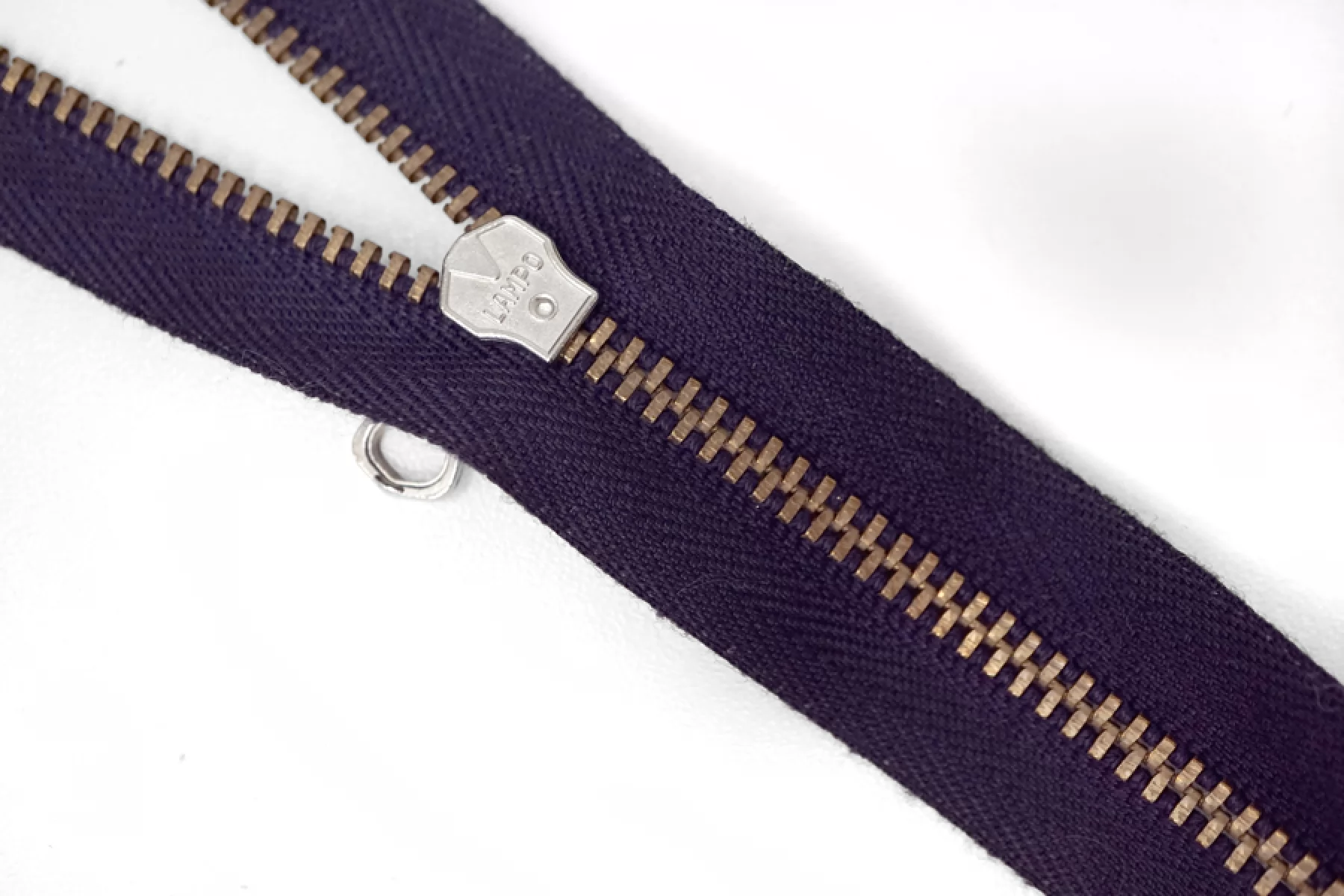 Итальянская разъемная двухзамковая молния LAMPO , оттенка баклажан; зубцы оттенка латунь, пуллер и слайдер - серебрянного. Длина 40 см. Ширина 2,5 см. Ширина зубцов 5 мм.