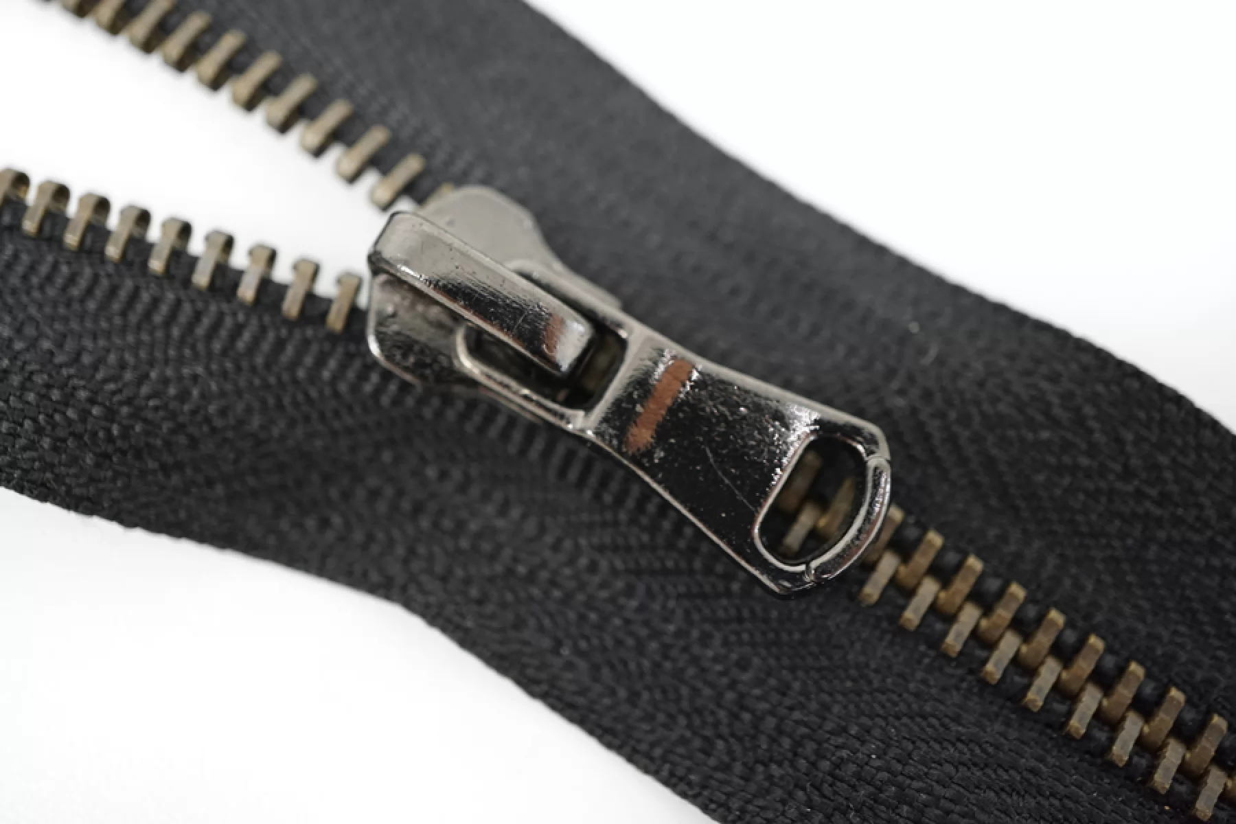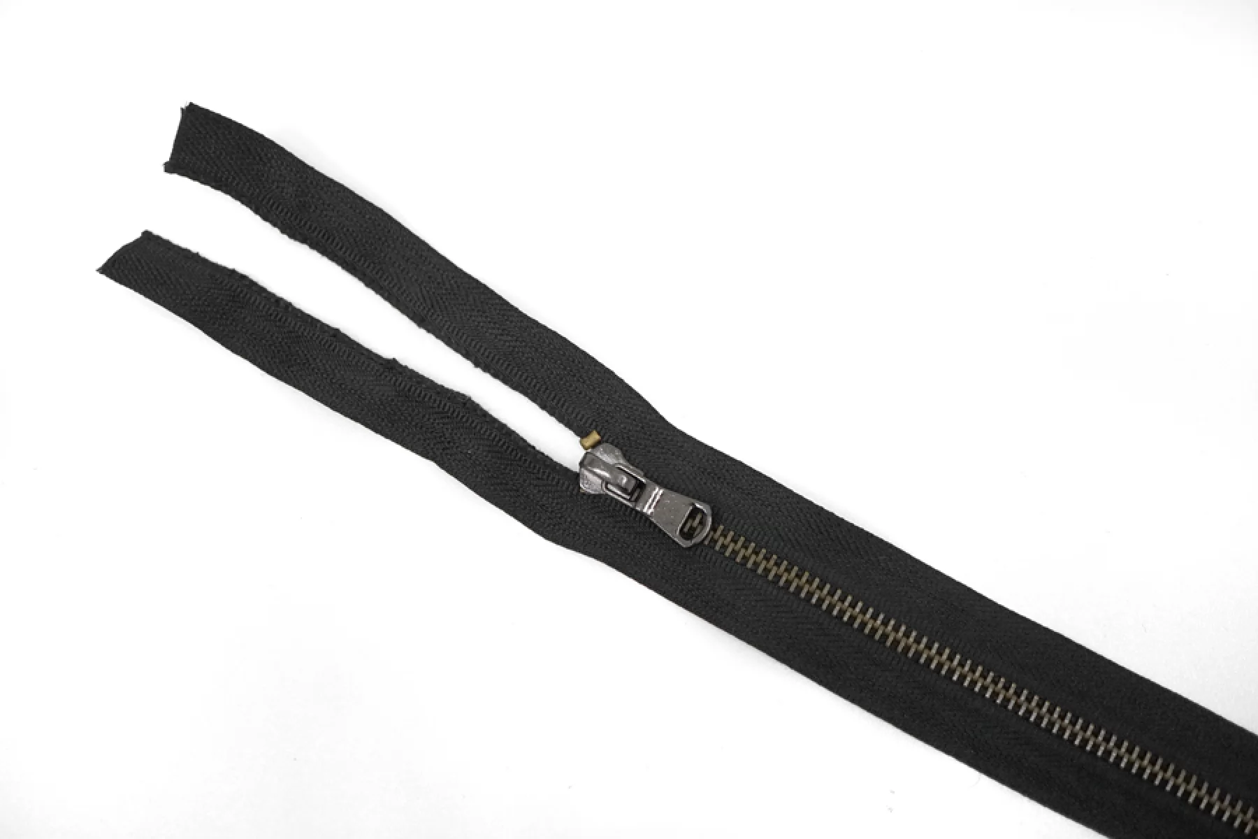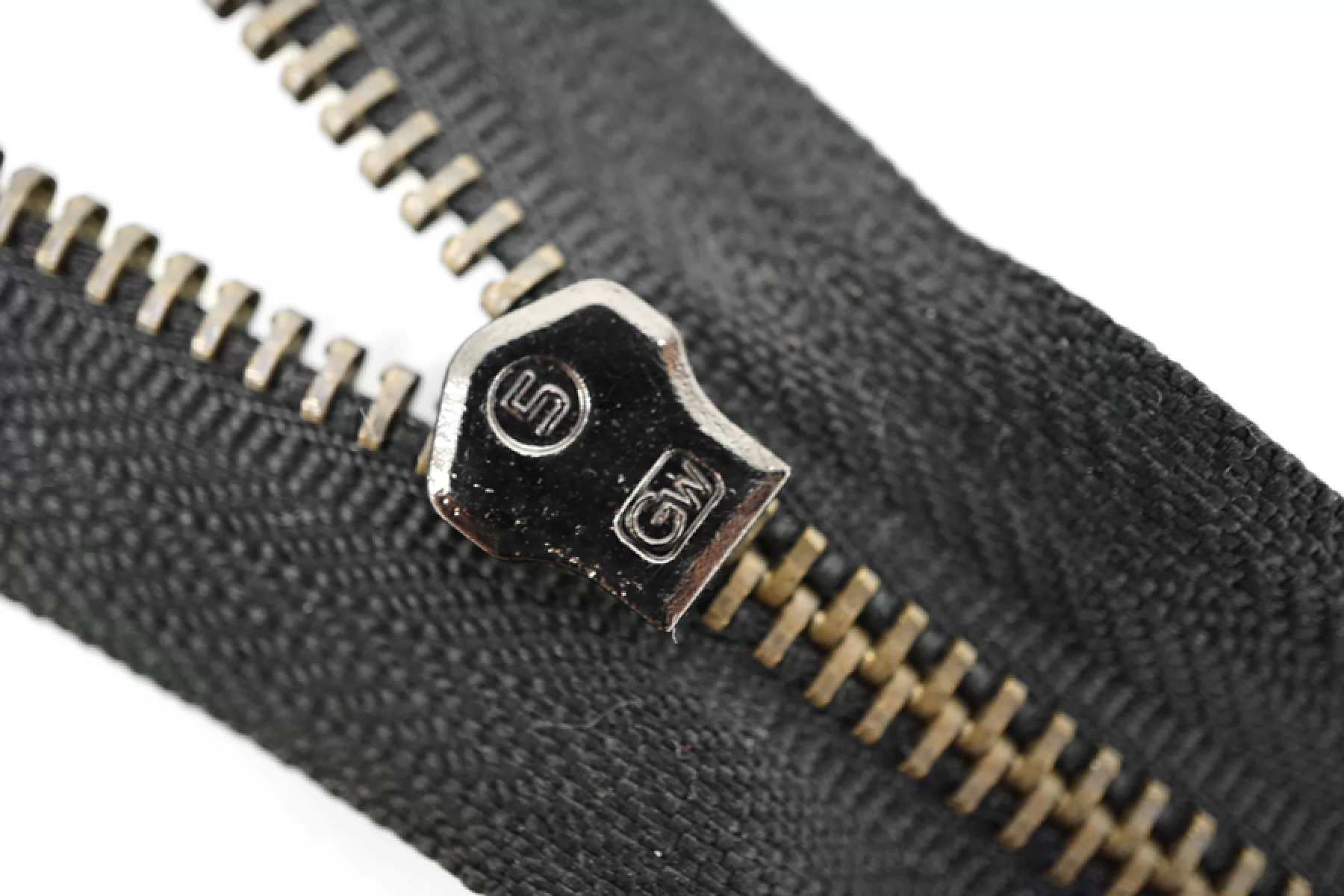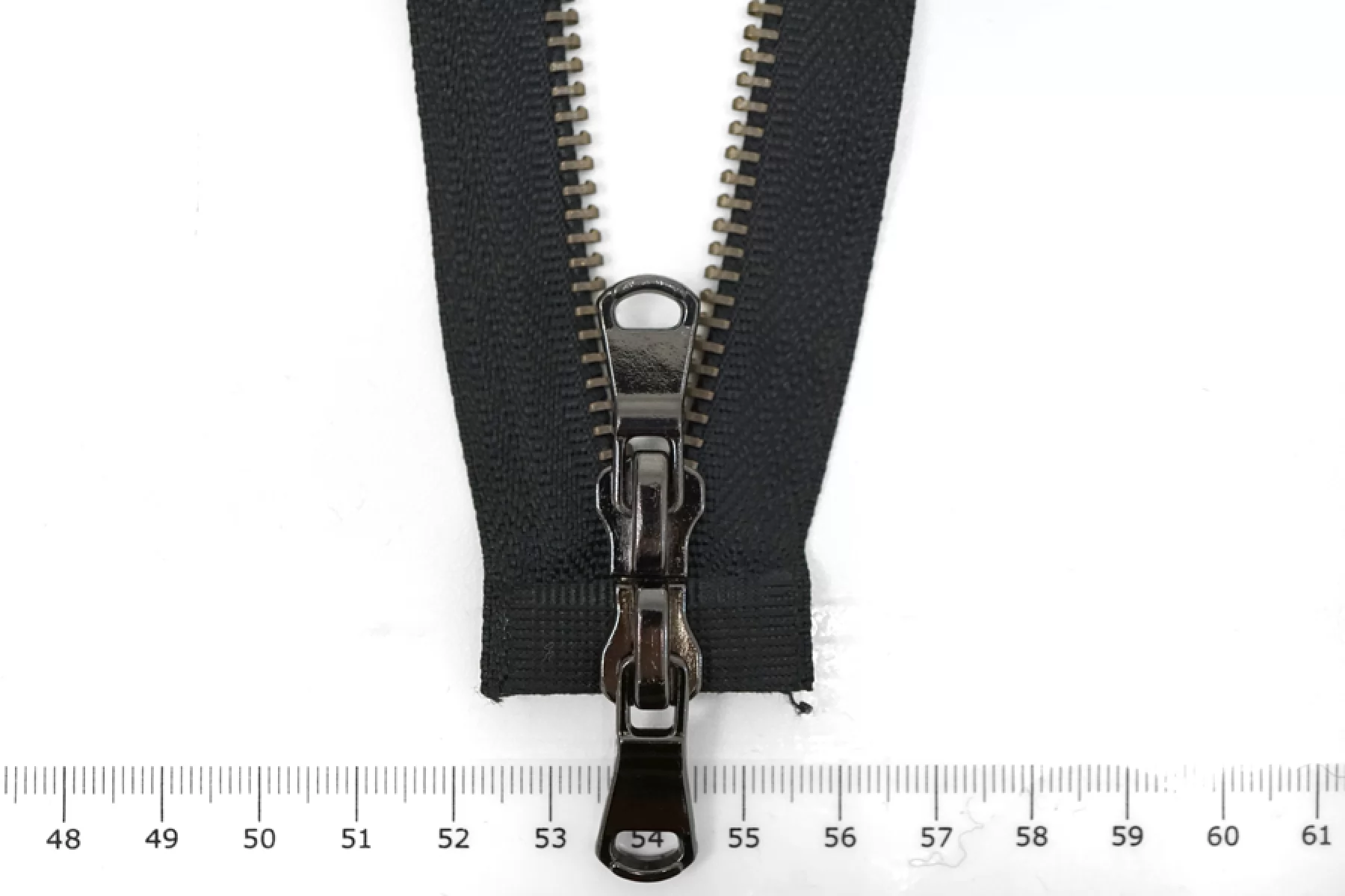Итальянская разъемная двухзамковая молния , черного оттенка; зубцы, пуллер и слайдер - металлические, оттенок - античная бронза и черный никель. Длина 45,5 см. Ширина 3 см. Ширина зубцов 6 мм.