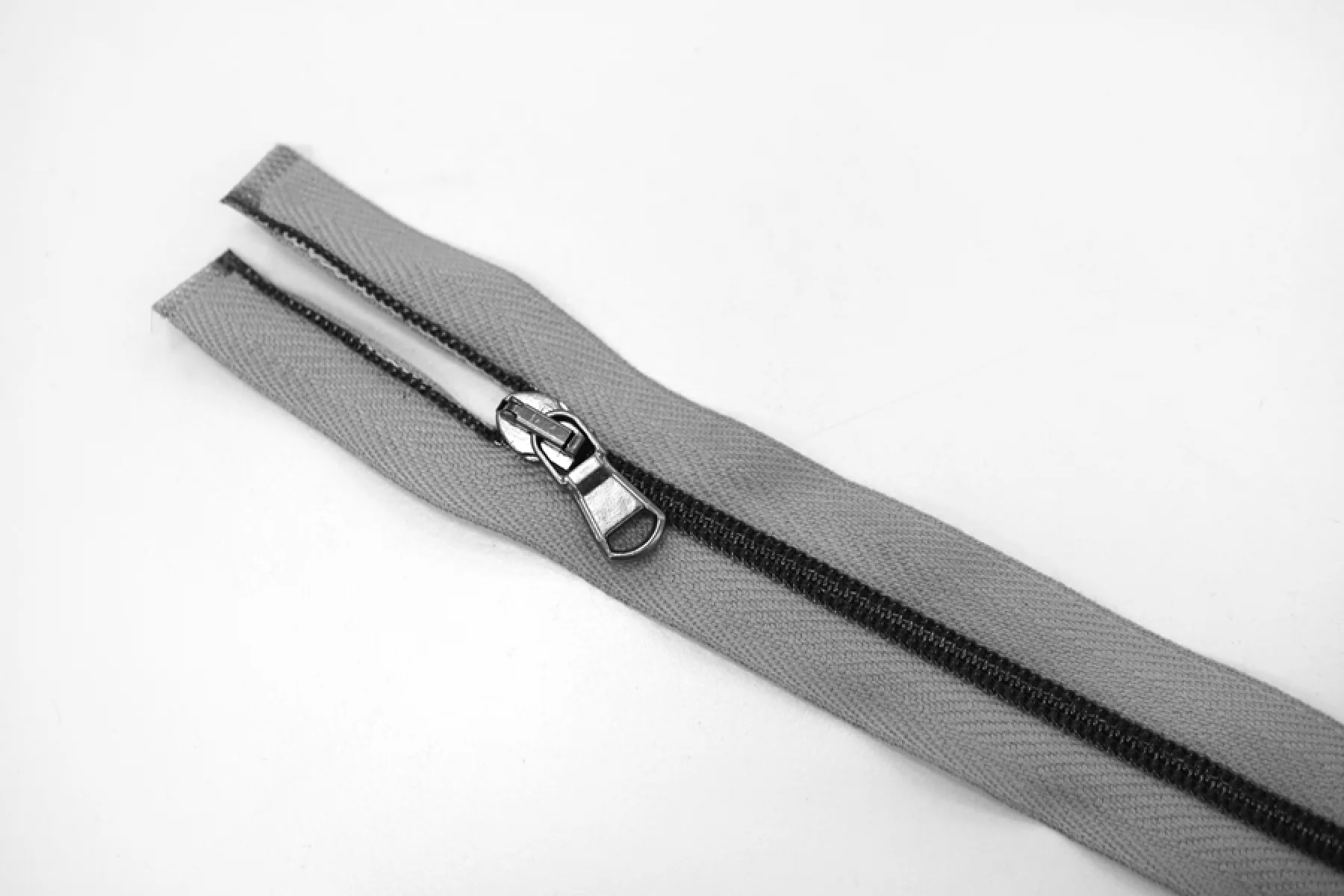 Молния от "Lampo" разъемная, двухзамковая, серого цвета, цвет пуллера , слайдера и зубцов черный. Длина 43 см.