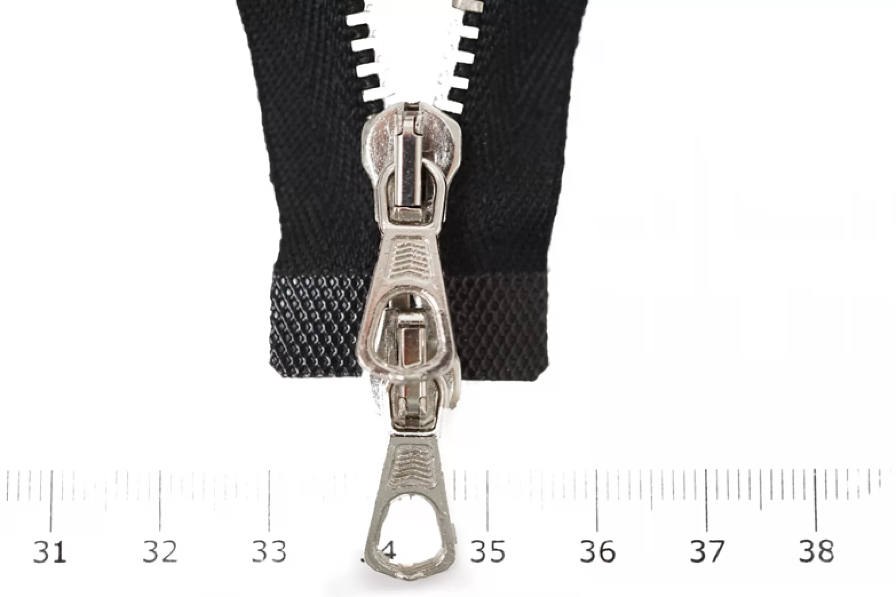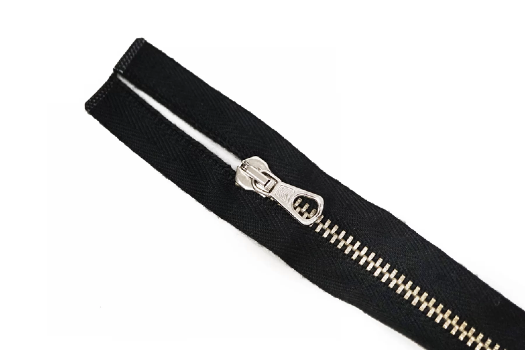 Молния металлическая, двухзамковая от "Lampo" разъёмная. Цвет молнии черный. Материал основы - киперная лента, достаточно мягкая, цвет зубцов - серебряный. Слайдер и пулер серебряные. Ширина молнии - 2.6 см, ширина зубцов 0,5 см. Длина молнии 38 см.