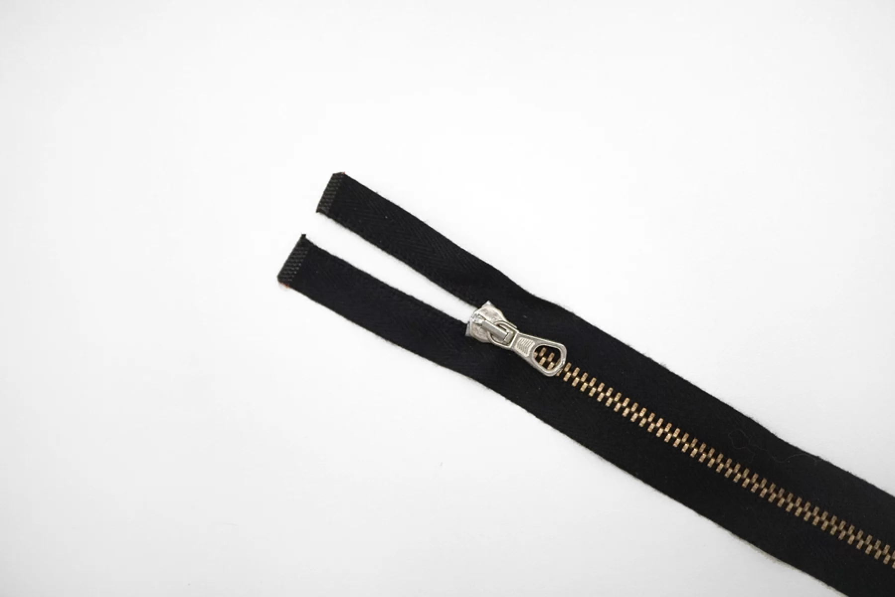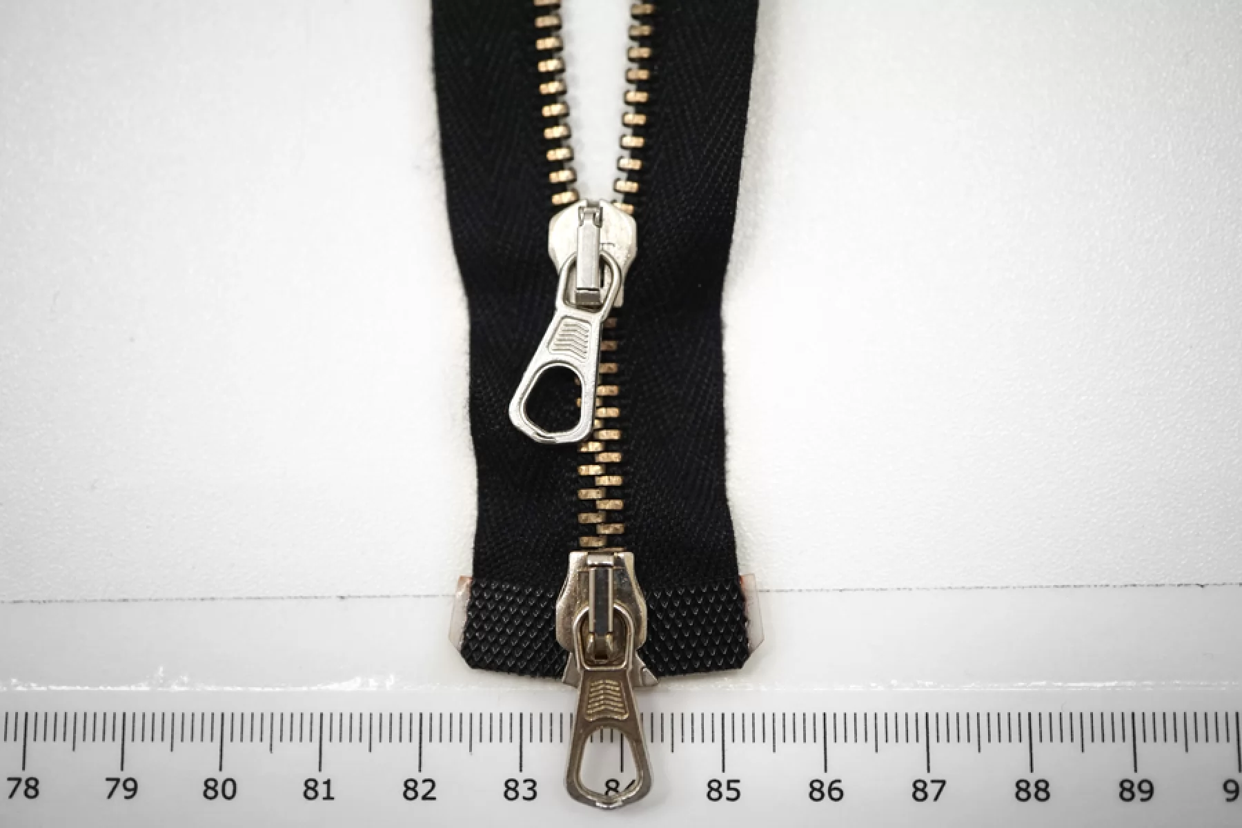 Молния металлическая двухзамковая от "Lampo" разъёмная, черная, цвет зубцов золотистый, пуллера и слайдера - серебристый. Длина 51 см.