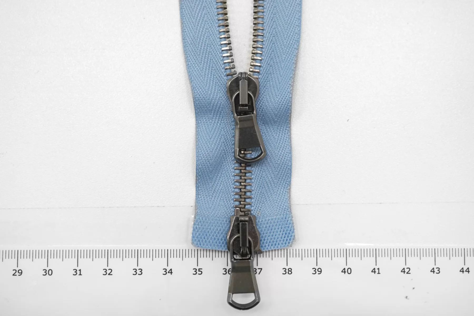 Молния голубая двухзамковая тракторная от "Lampo " неразъемная, цвет зубцов тёмный никель. Длина 49 см.