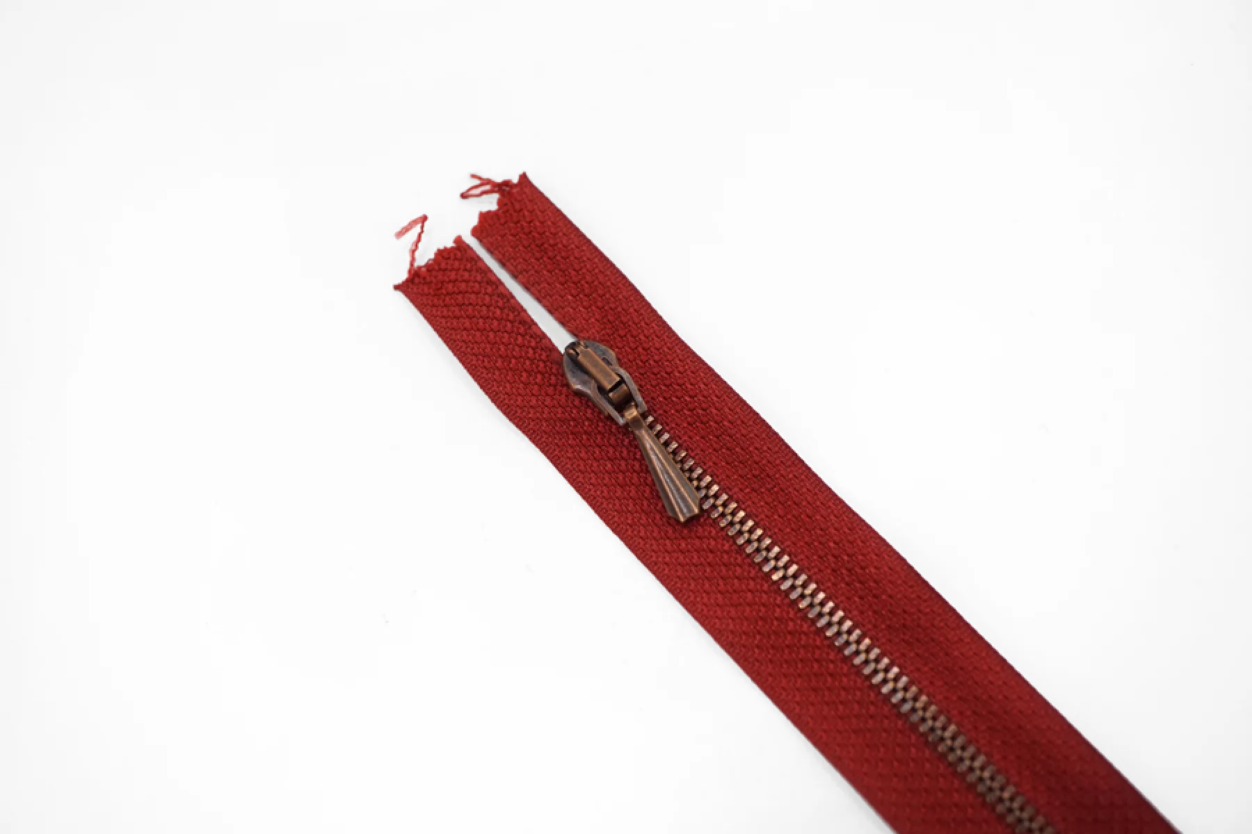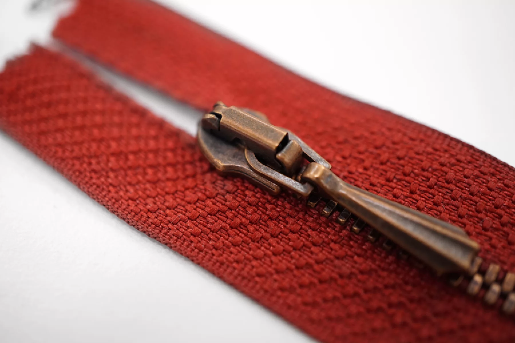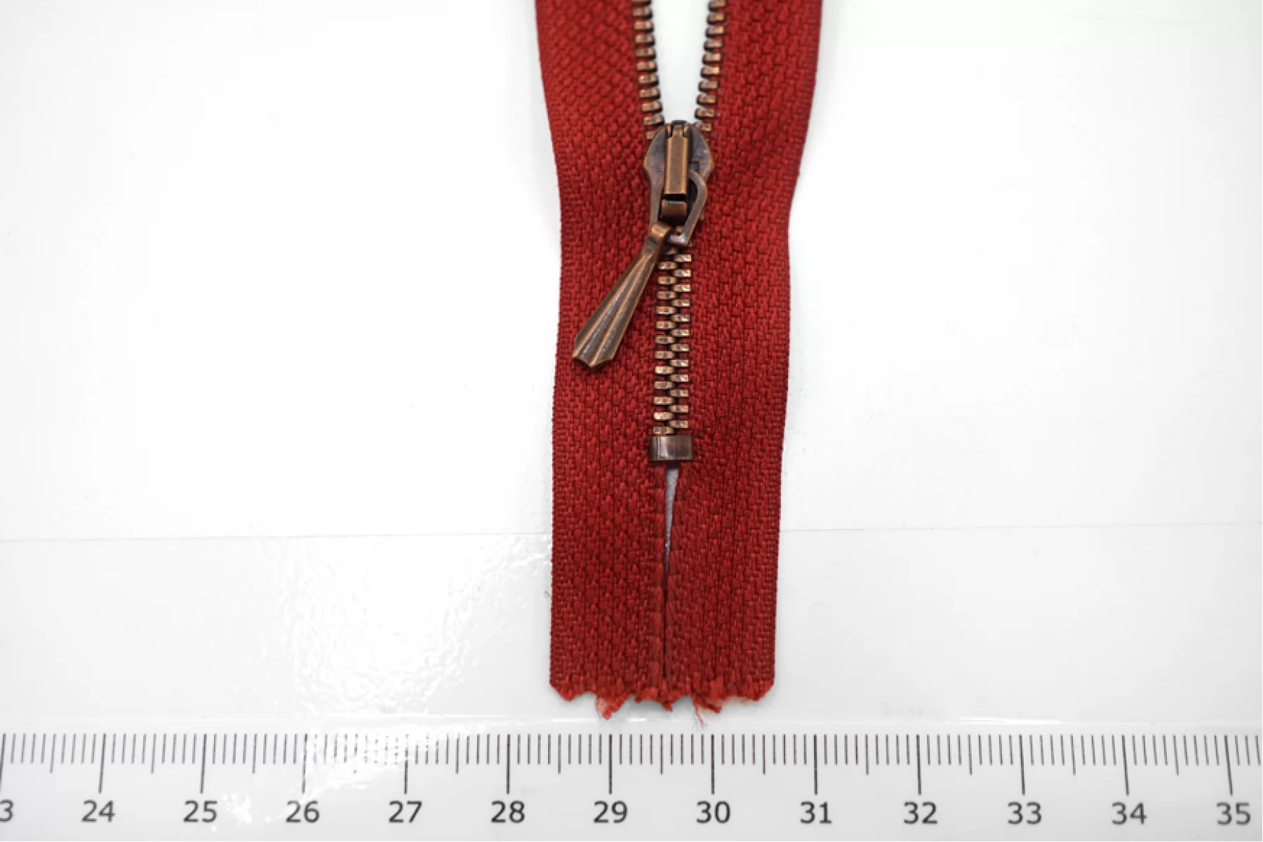 Молния спиральная неразъёмная, однозамковая, красного цвета, цвет зубцов и пуллера бронза, от Lampo. Длина 20 см.