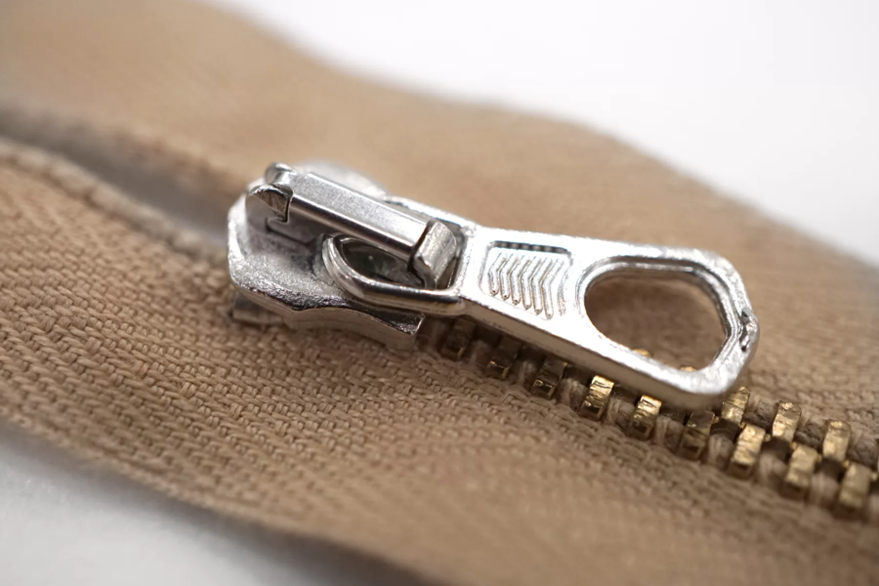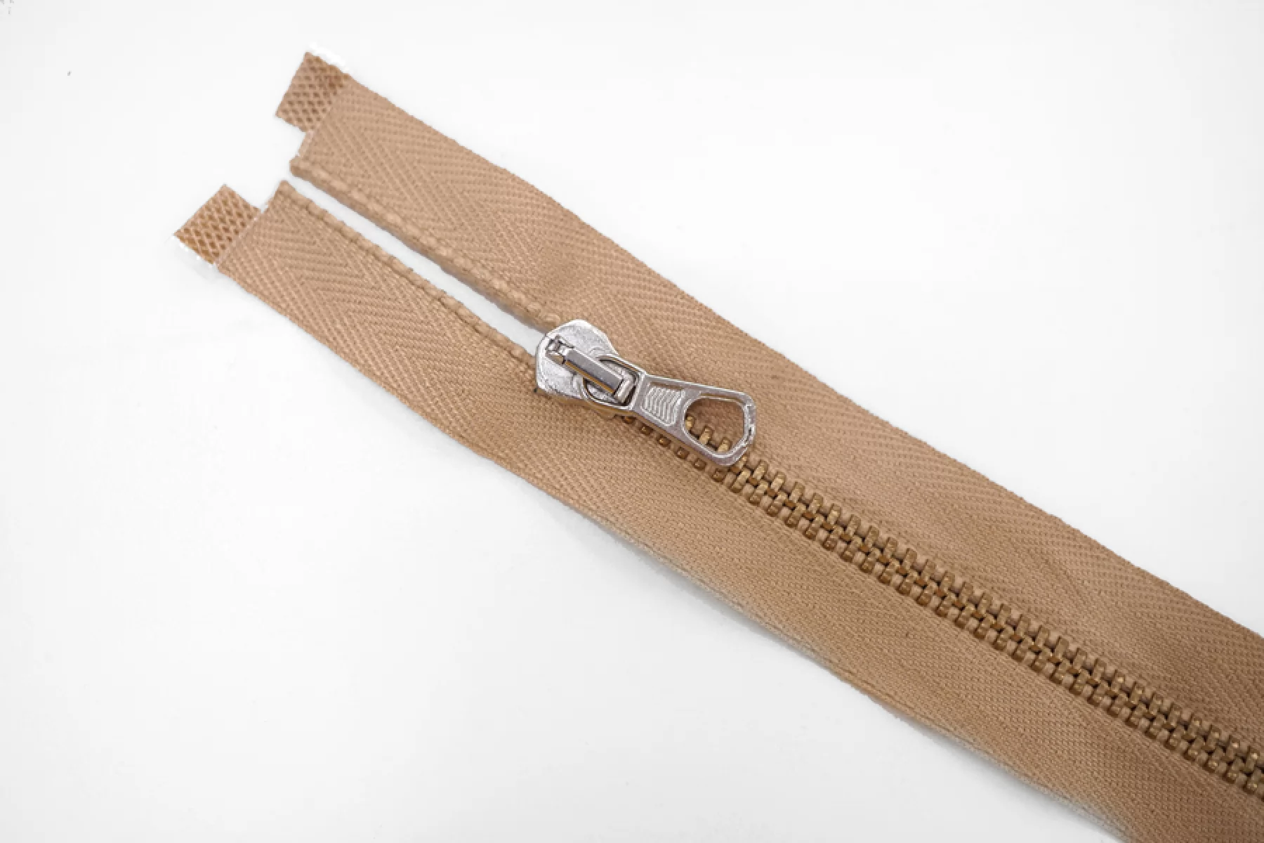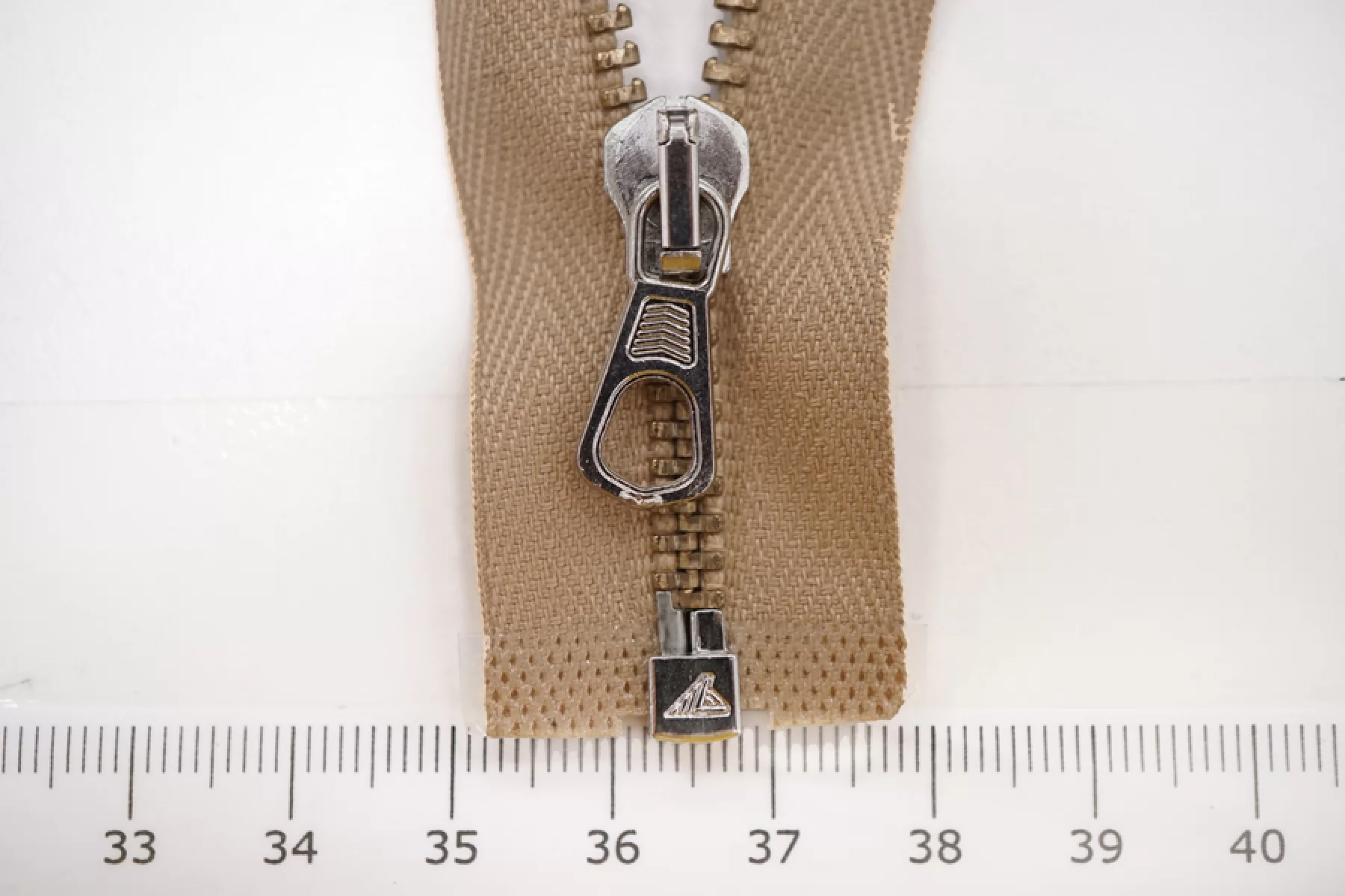 Молния металлическая однозамковая от "Lampо" разъёмная, бежевого цвета, цвет зубцов золотистый , цвет пуллер серебристый . Длина 46 см.