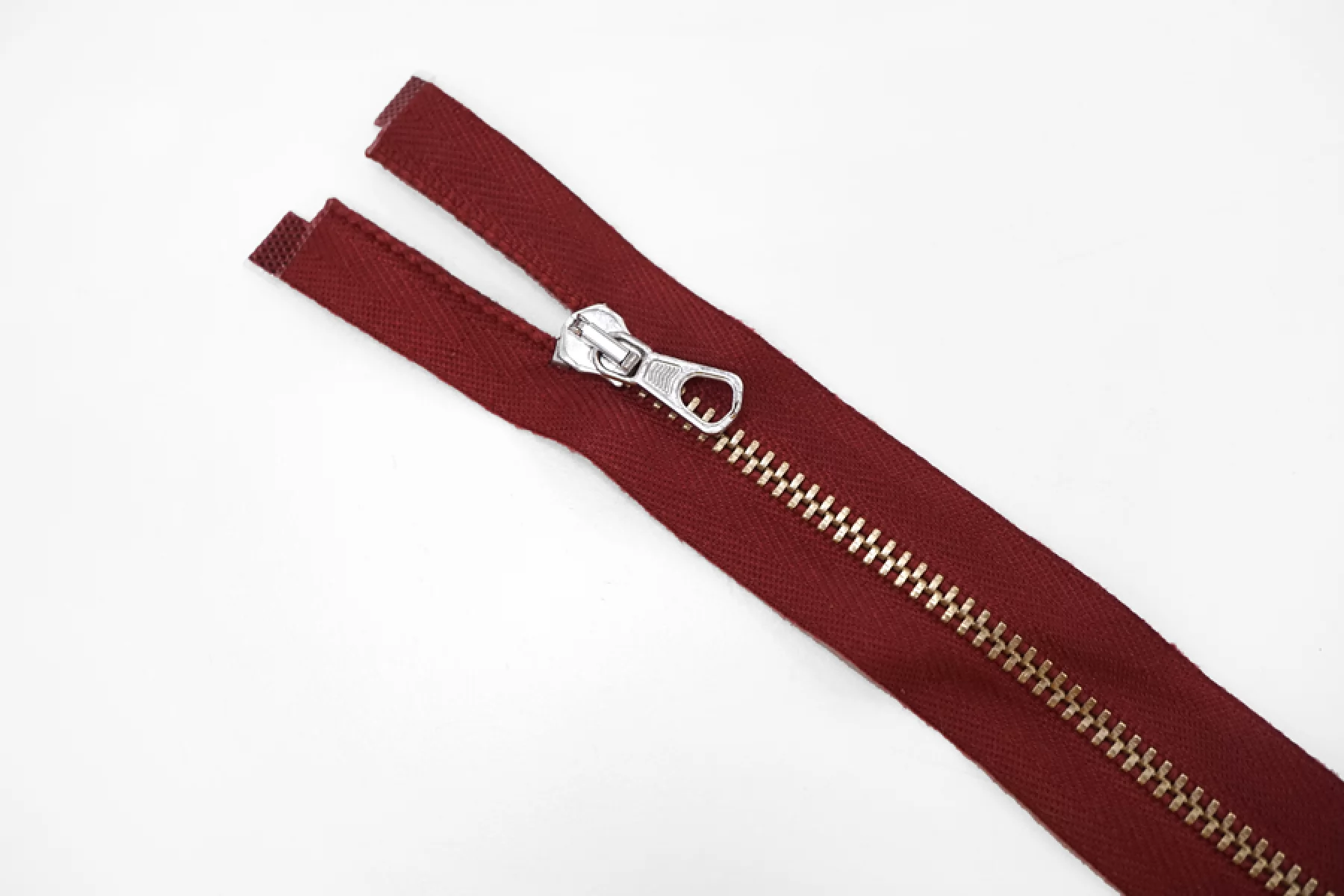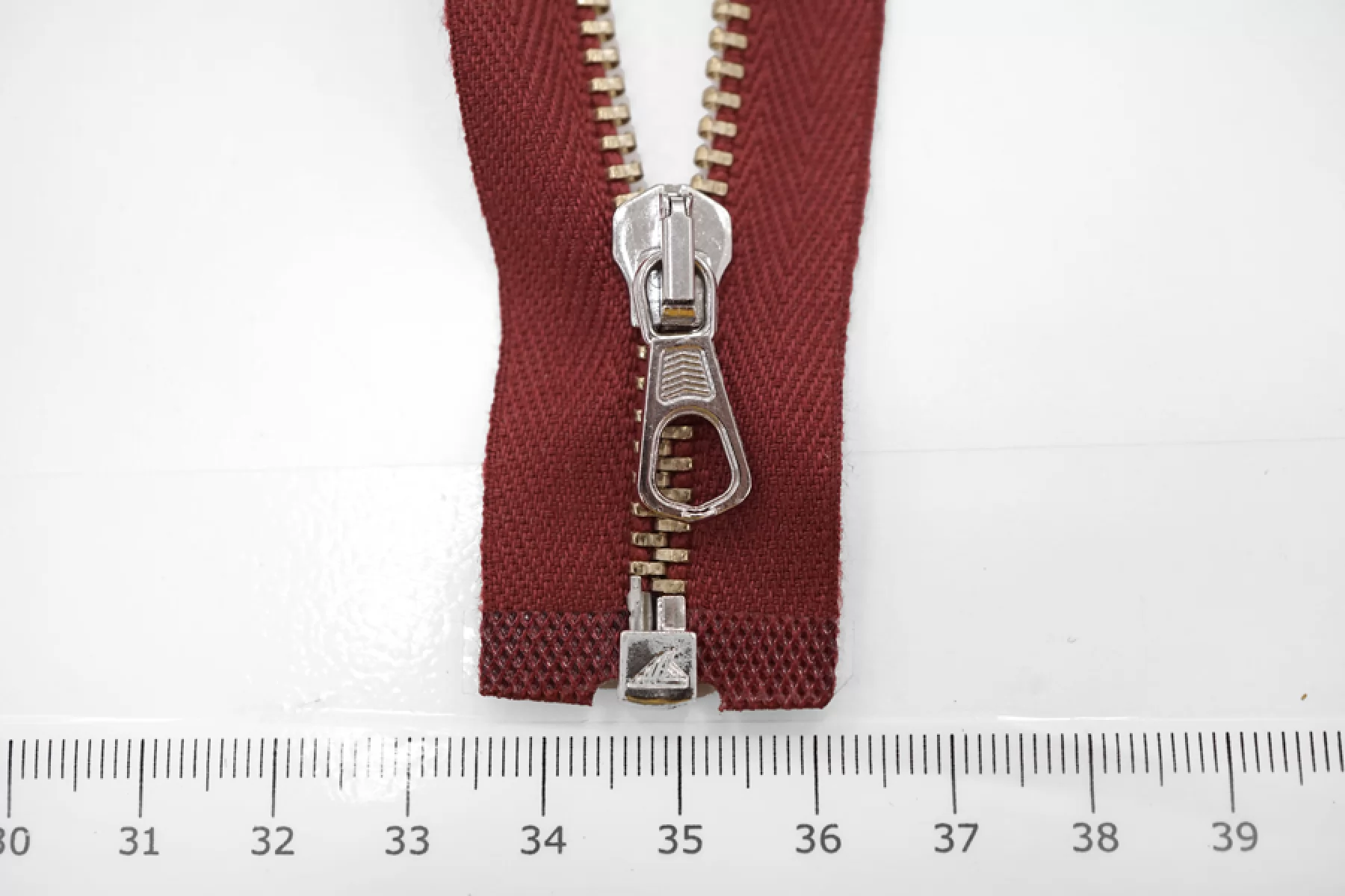 Молния металлическая однозамковая от "Lampо" разъёмная, бордового цвета, цвет зубцов золотистый , цвет пуллер серебристый . Длина 36 см.