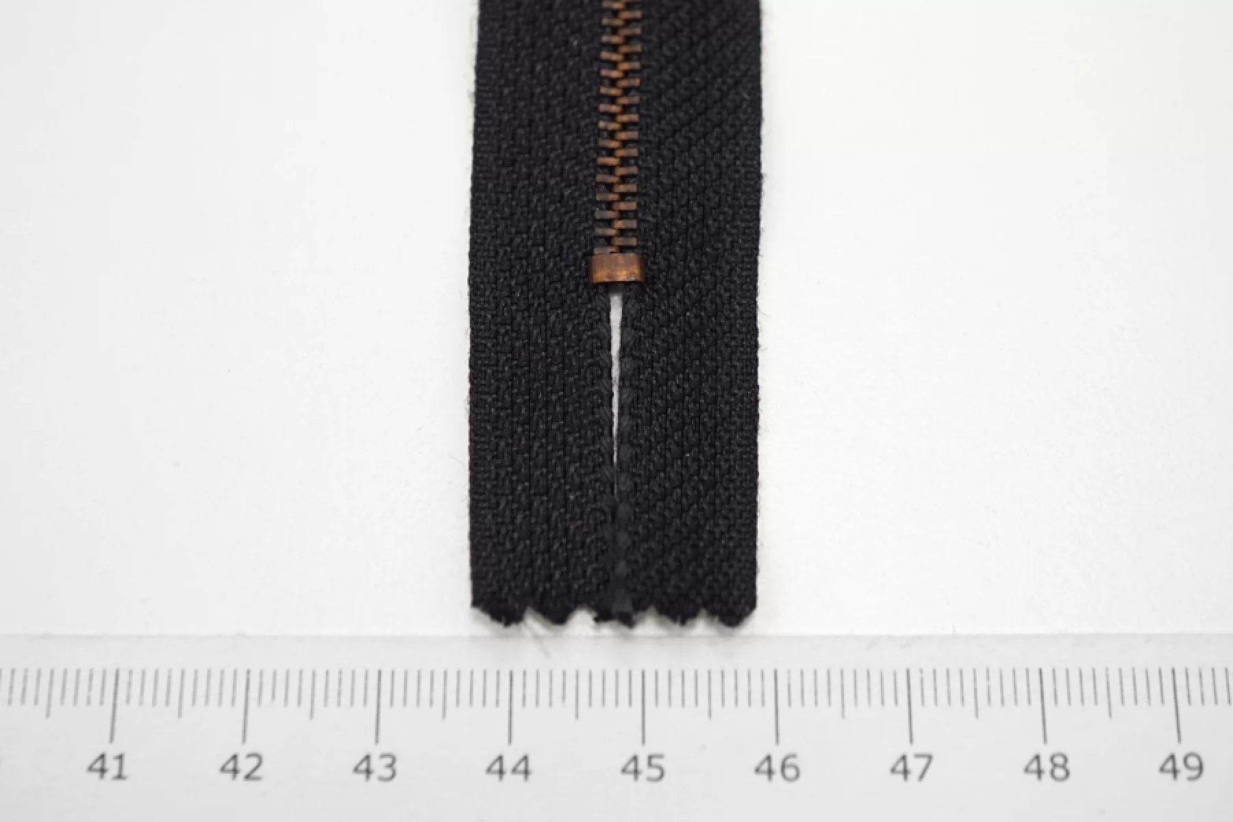 Молния от "Lampo" неразъемная, черная, цвет зубцов бронзовый. Длина 8 см.