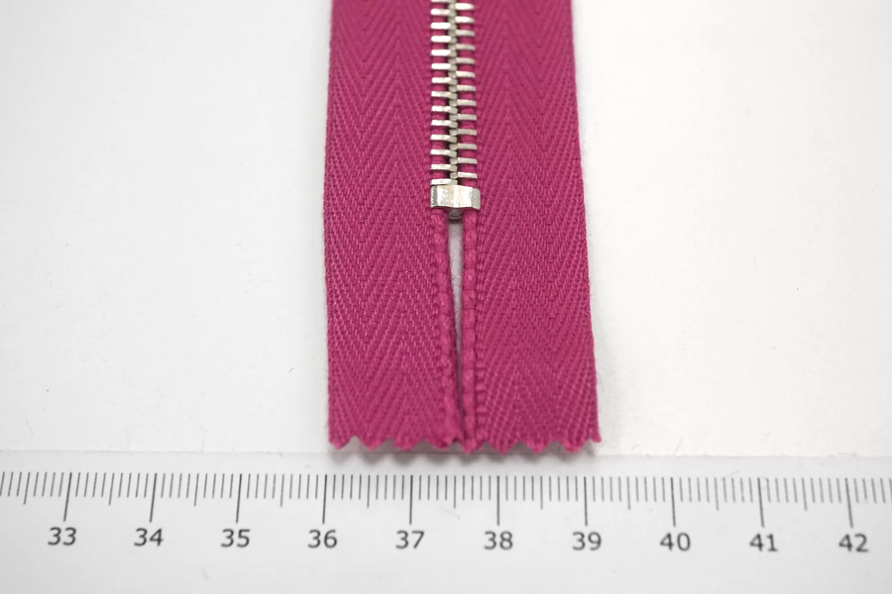 Молния от "Lampo" неразъемная, пурпурная, цвет зубцов серебристый. Длина 10 см.