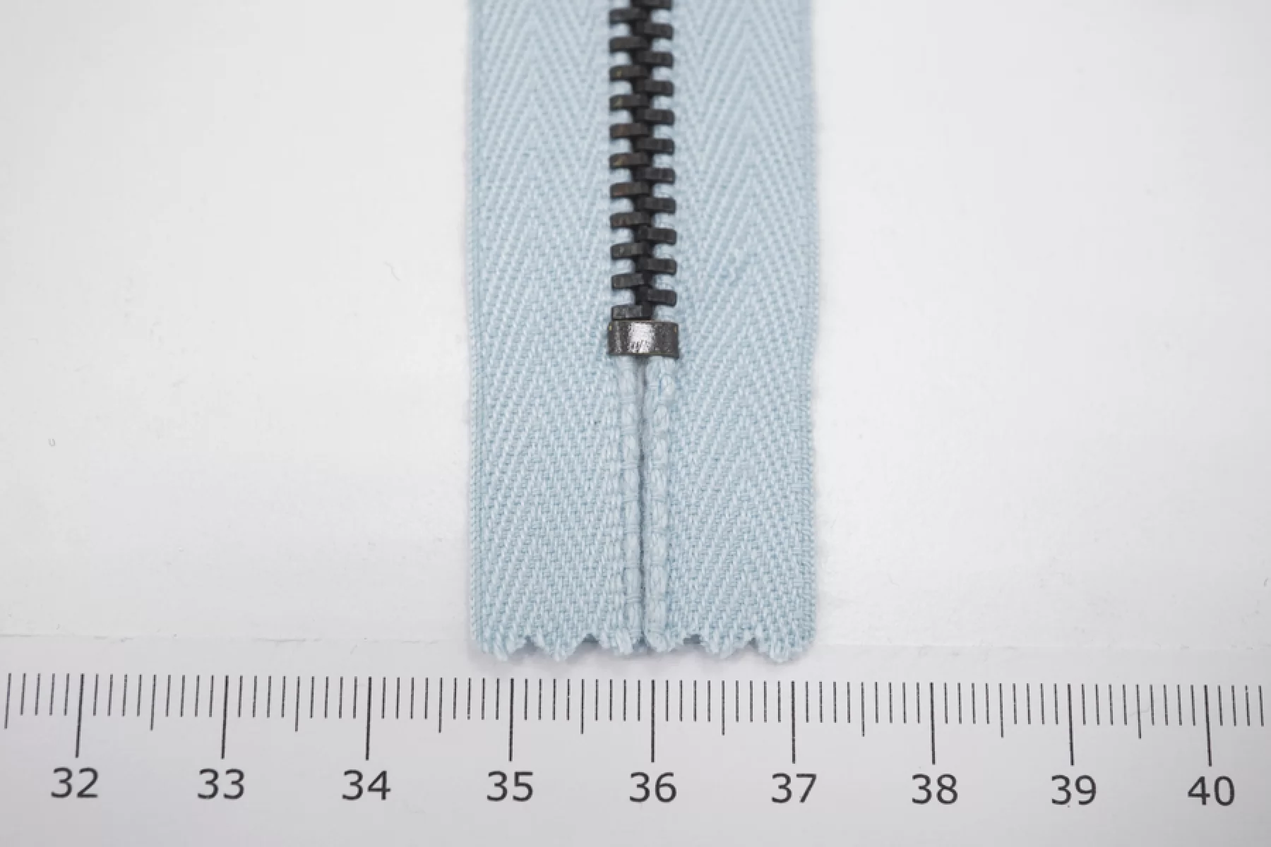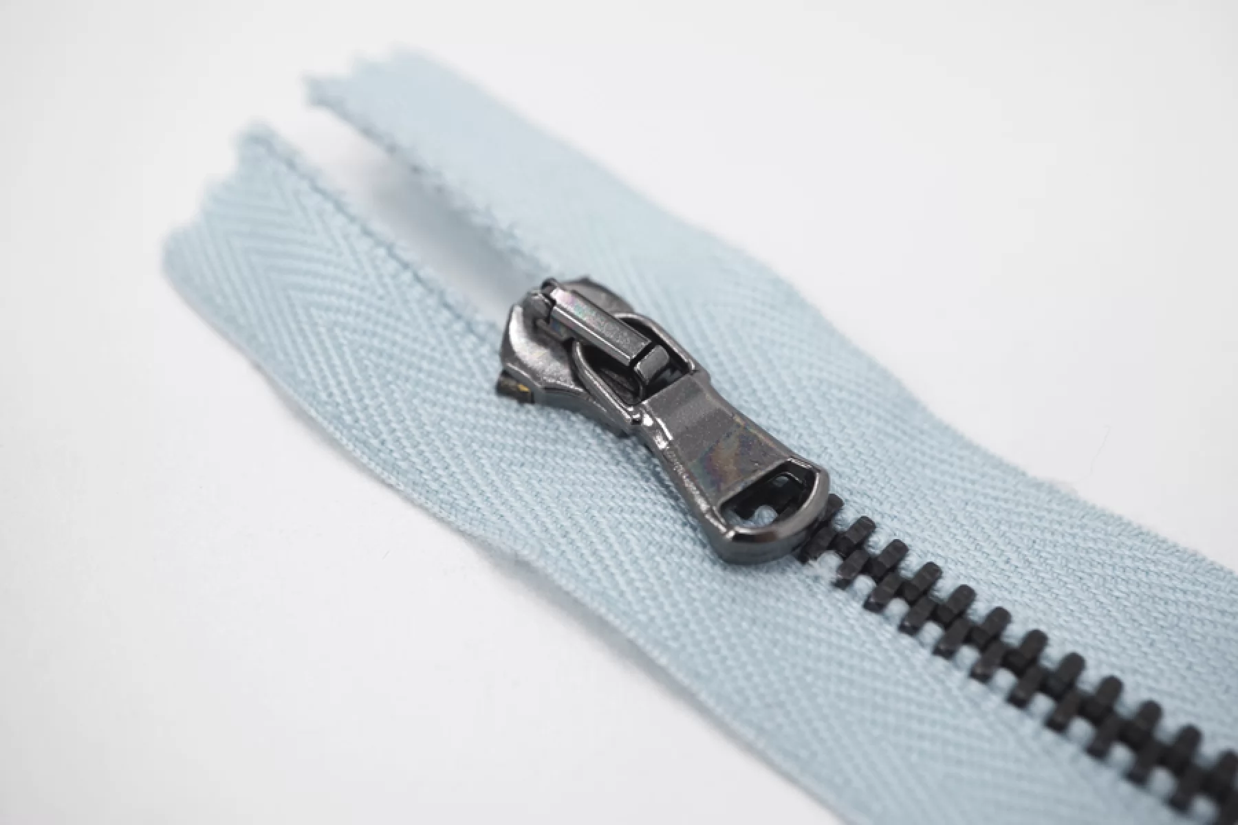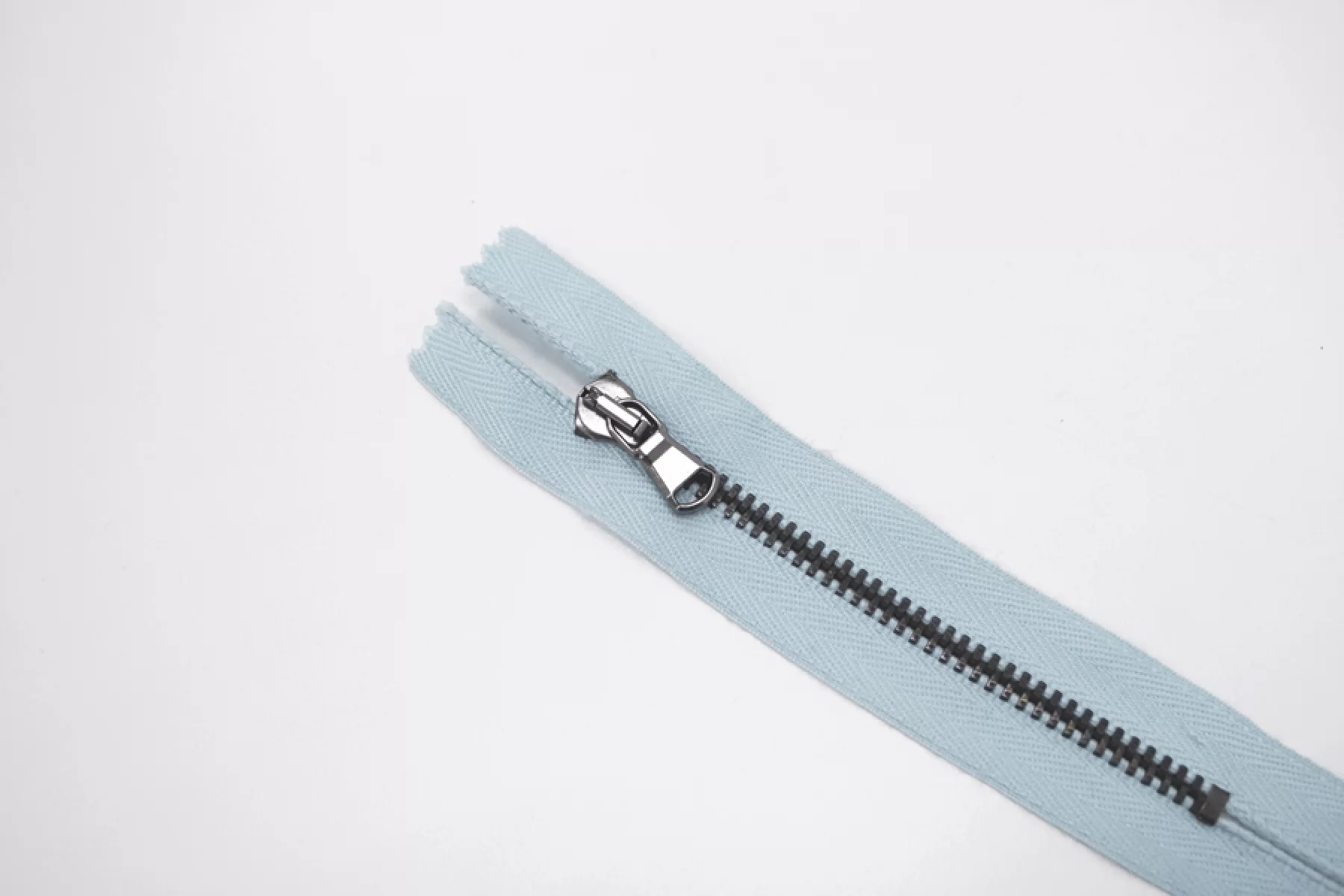 Молния от "Lampo" неразъемная, голубая, цвет зубцов - темный никель. Длина 10 см.