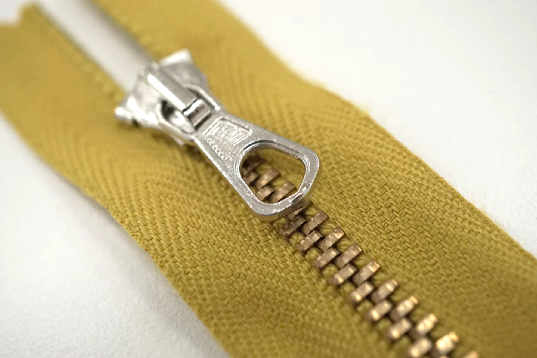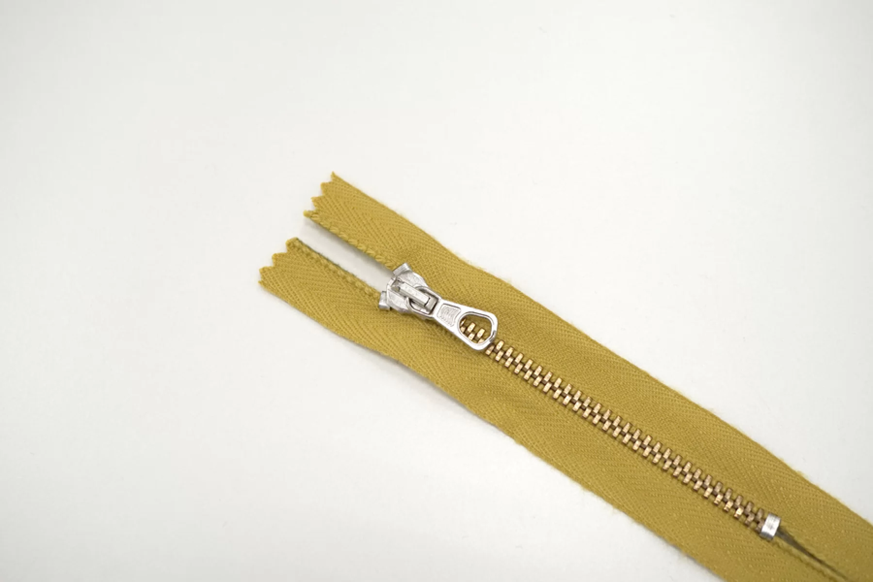 Молния от "Lampo" неразъемная, горчичная, цвет зубцов - золотистый, слайдер и пулер - серебристые. Длина 9 см.