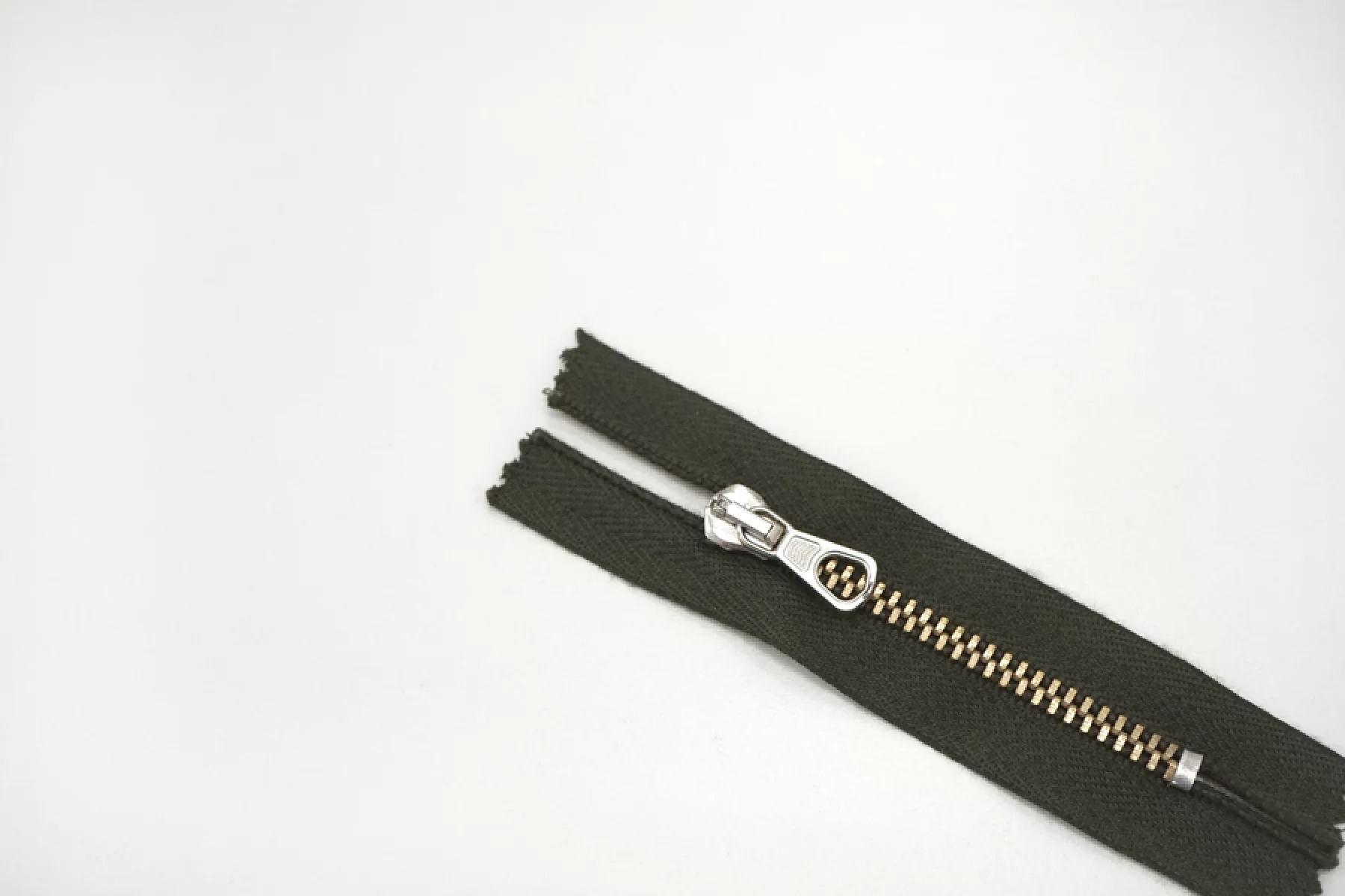 Молния от "Lampo" неразъемная, хаки, цвет зубцов - золотистый, слайдер и пулер - серебристые. Длина 7 см.