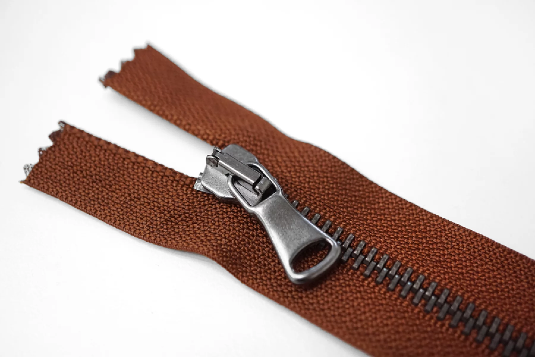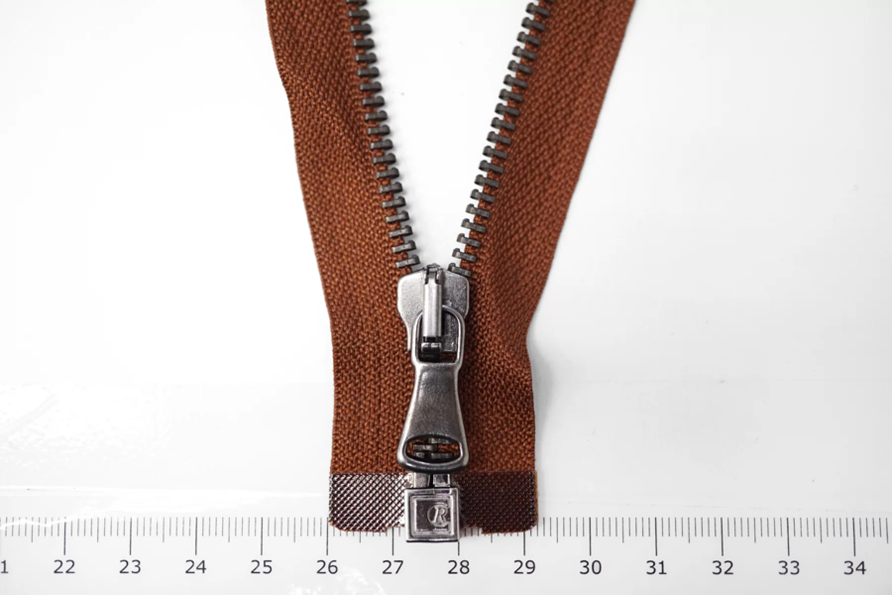 Молния металлическая однозамковая от "Lampо" разъёмная, коричневого цвета, цвет зубцов и пуллера - никель. Длина 50 см .