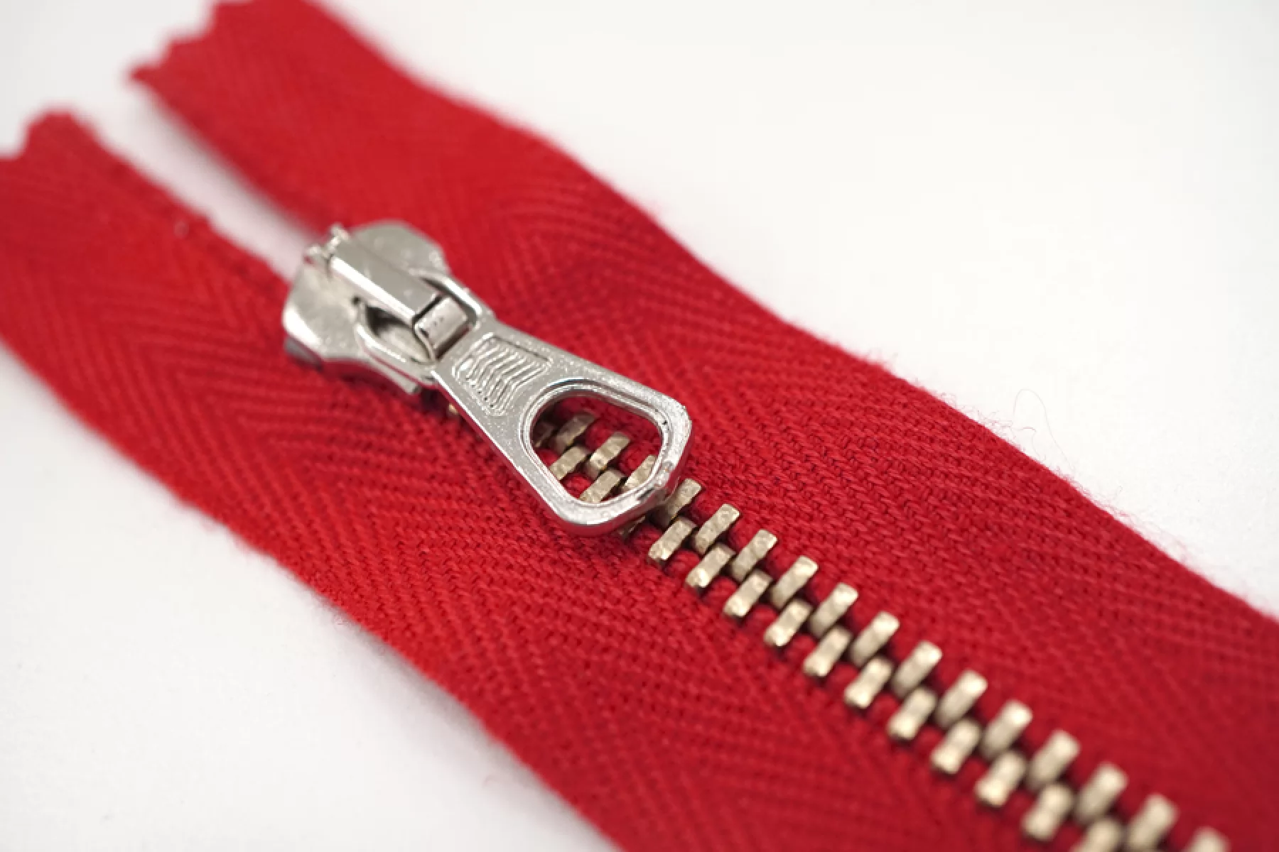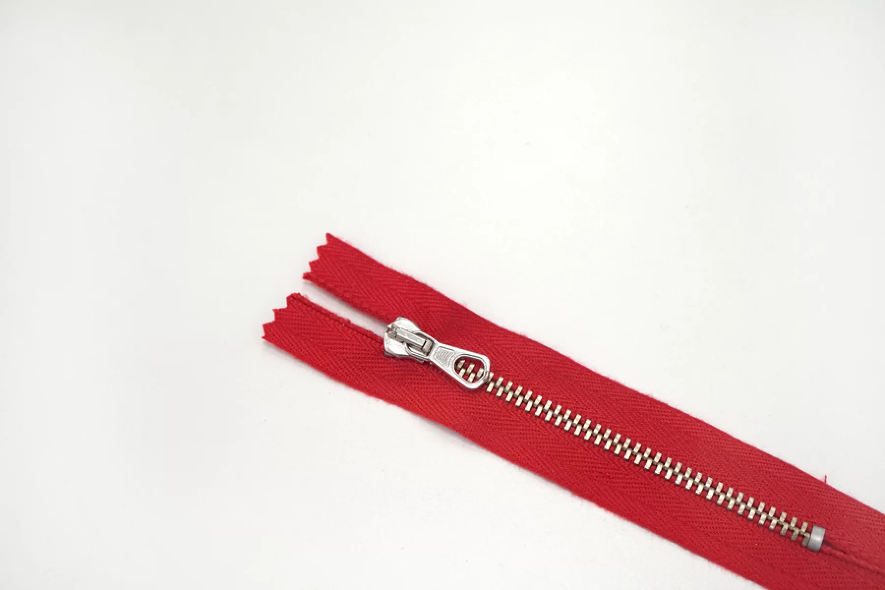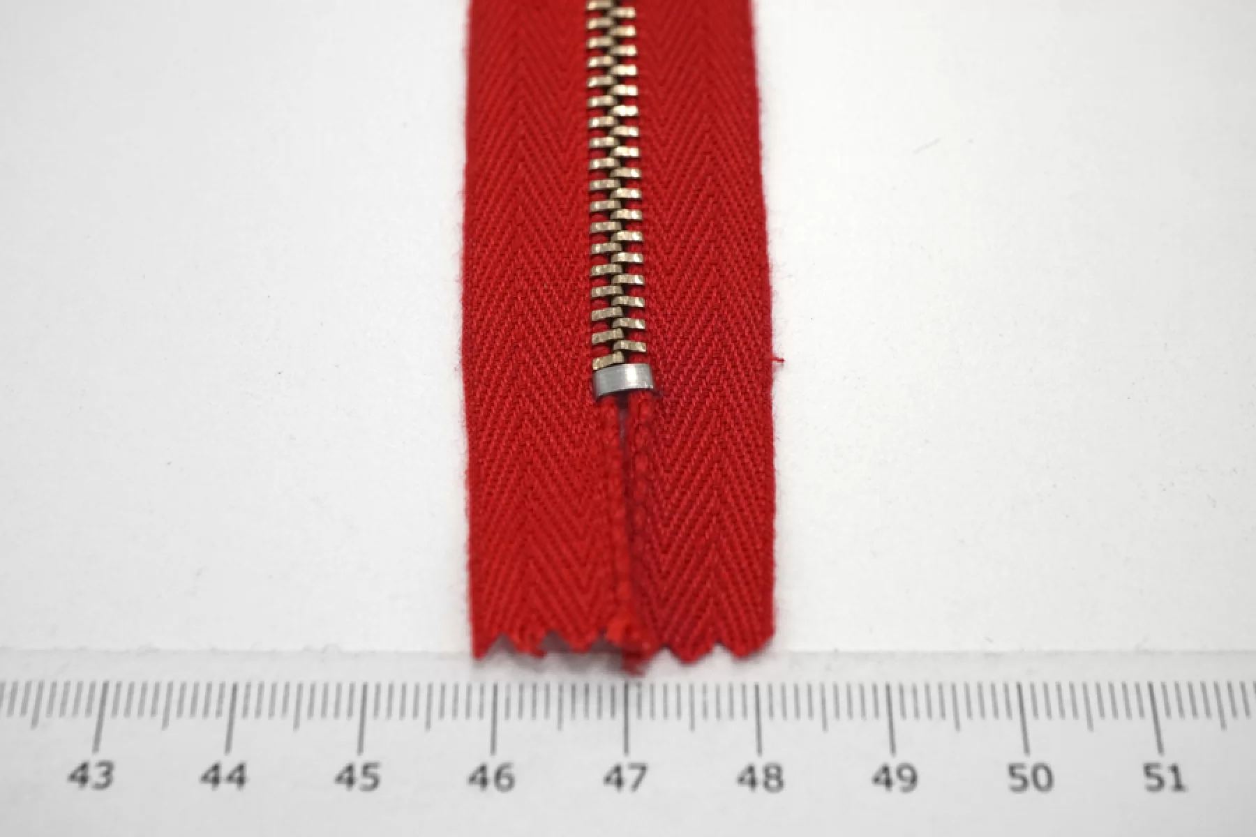 Молния от "Lampo" неразъемная, красная, цвет зубцов - золотистый, слайдер и пулер - серебристые. Длина 12 см.