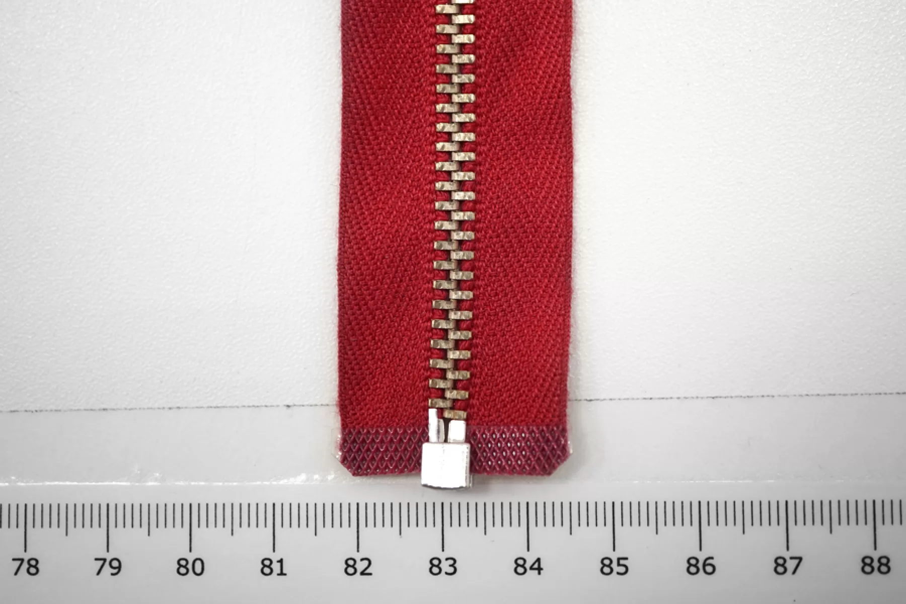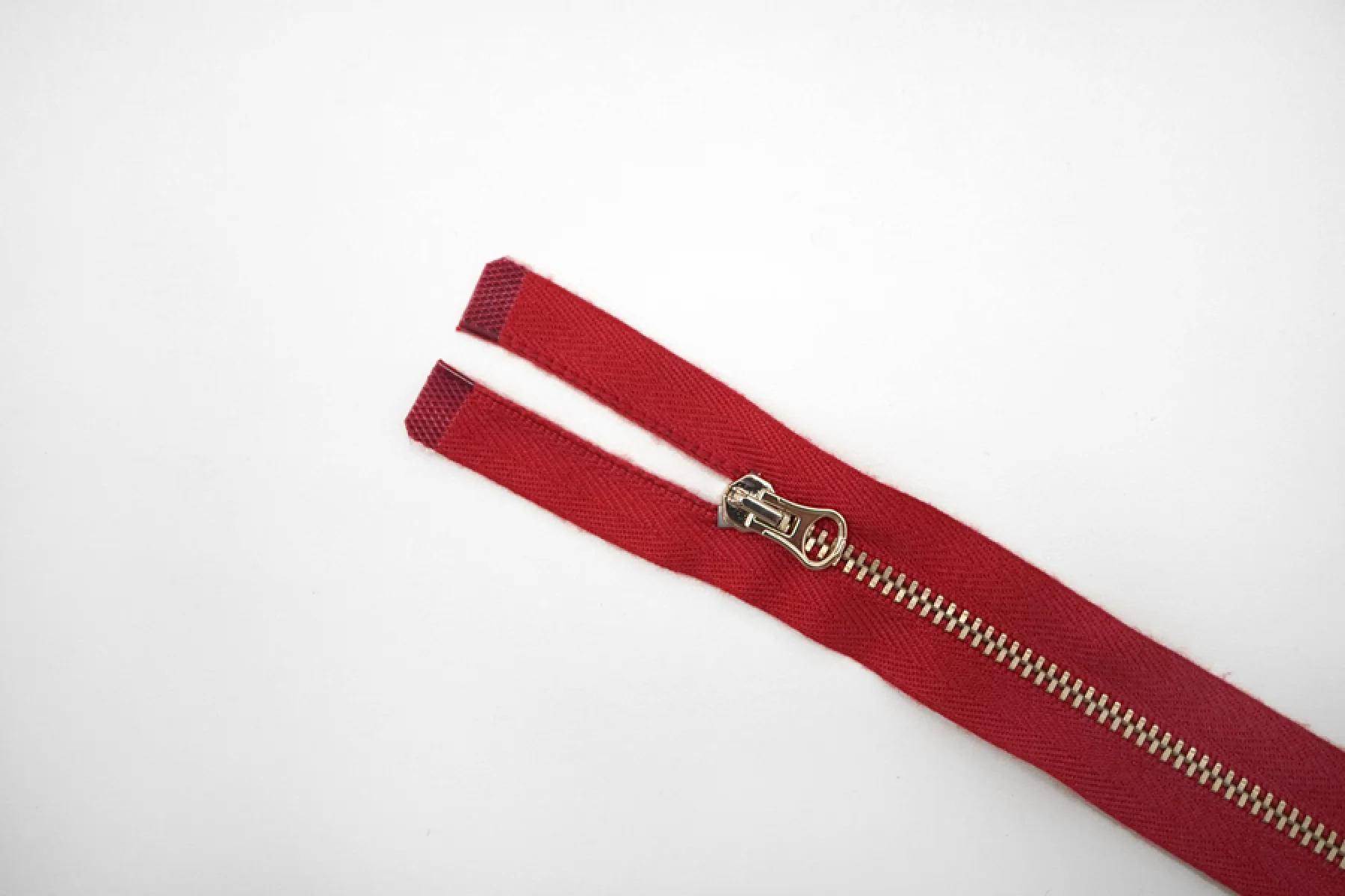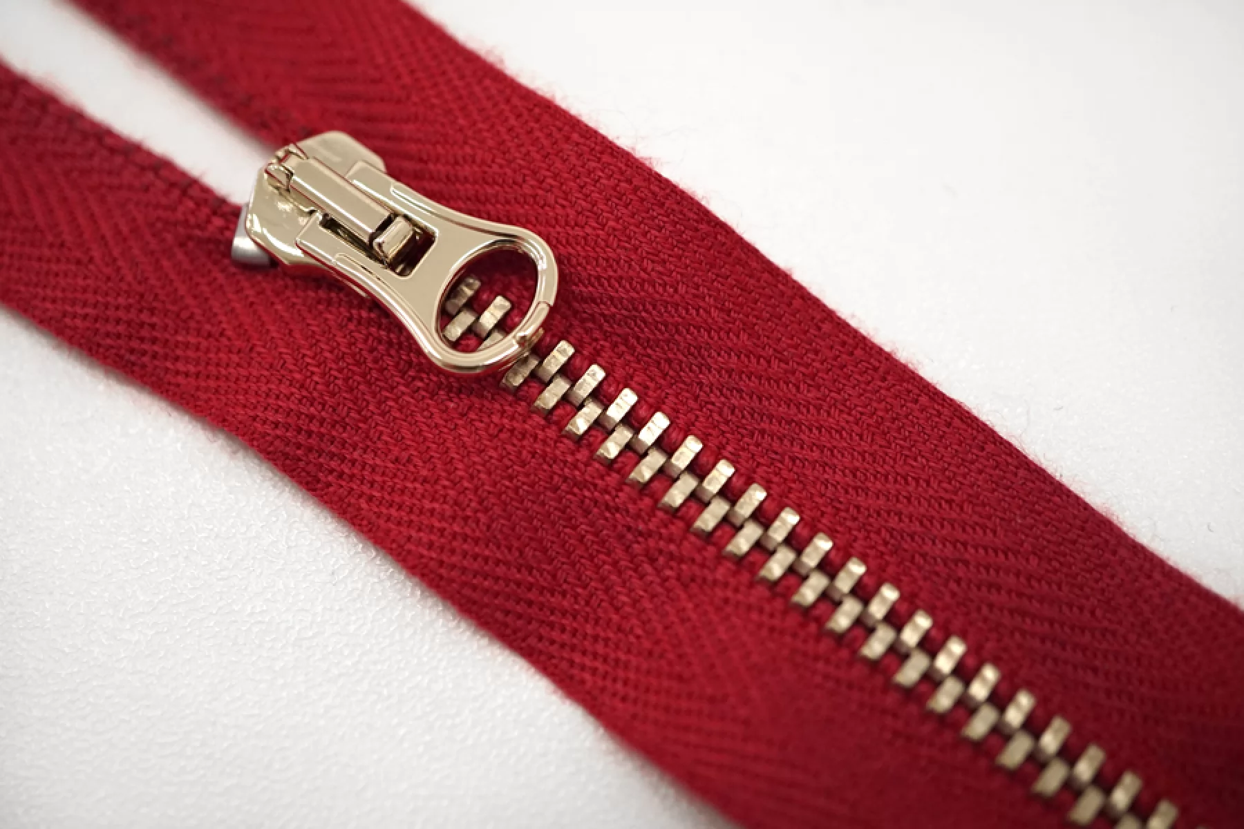 Молния металлическая однозамковая от "Lampo" разъёмная, красная, цвет зубцов золотистый. Длина 39 см.