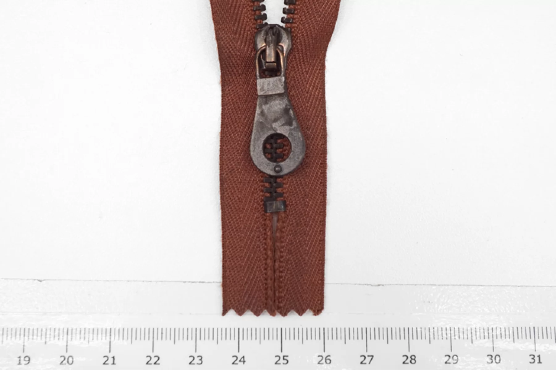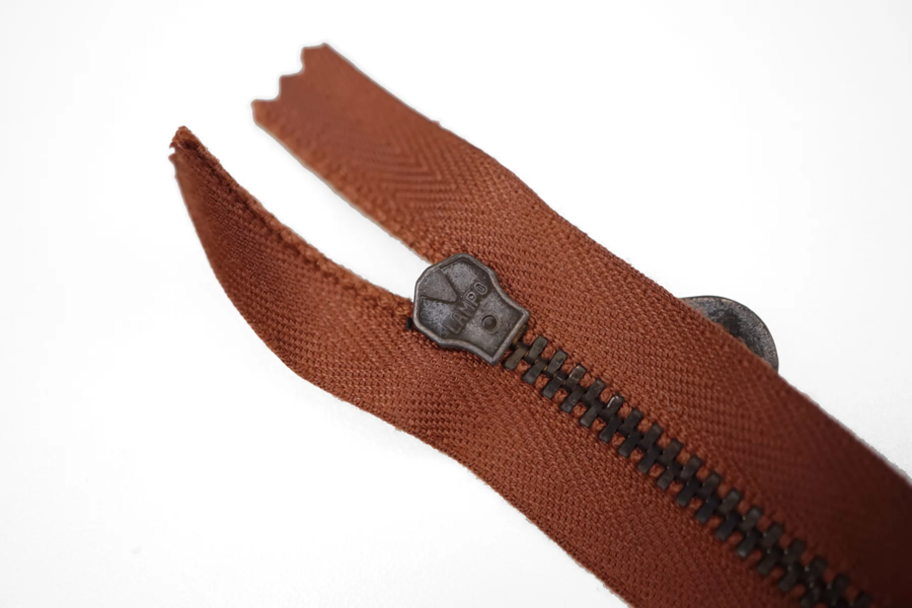 Молния от "Lampo" неразъемная, однозамковая, красно-коричневого цвета, цвет зубцов бронза . Длина 20 см.