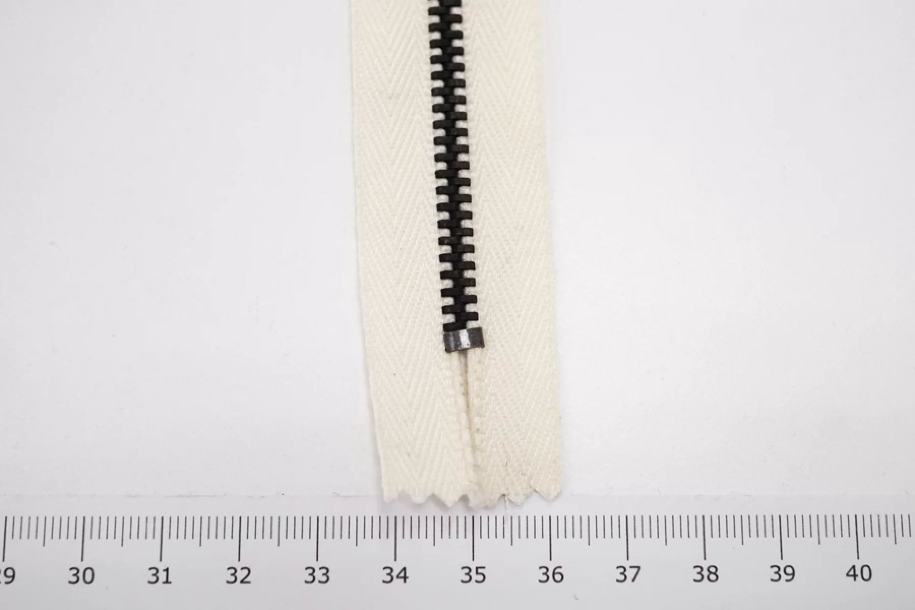 Молния от "Lampo" неразъемная, молочная, цвет зубцов и крупного пуллера - темный никель. Длина 20 см.