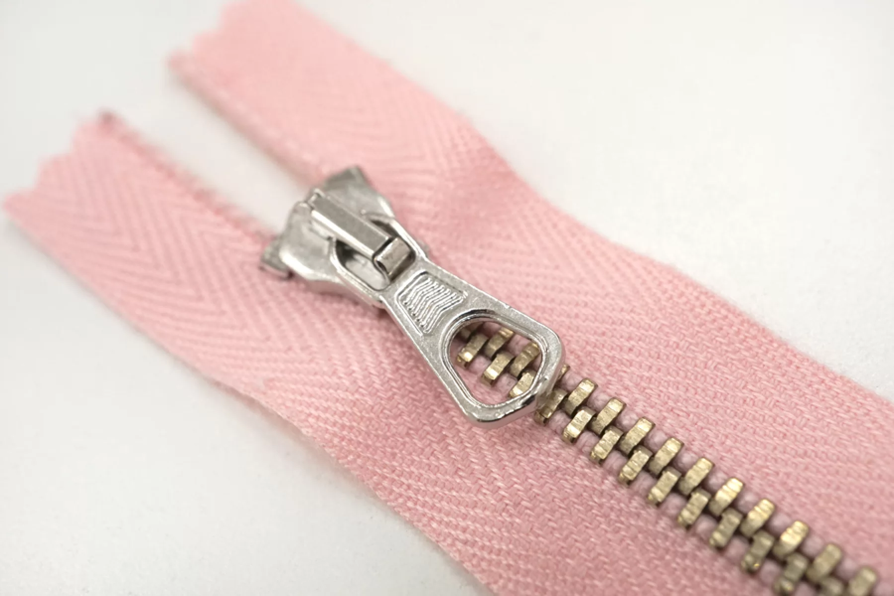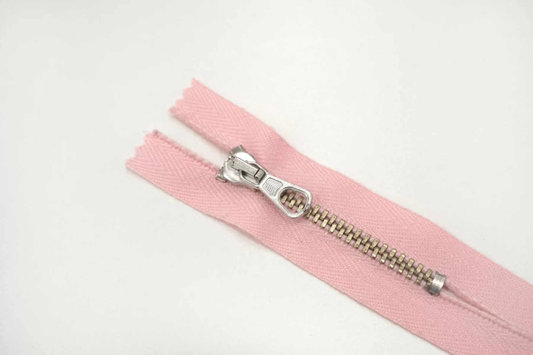 Молния от "Lampo" неразъемная, нежно-розовая, цвет зубцов золотистый, слайдер и пулер - серебристые. Длина 6 см.