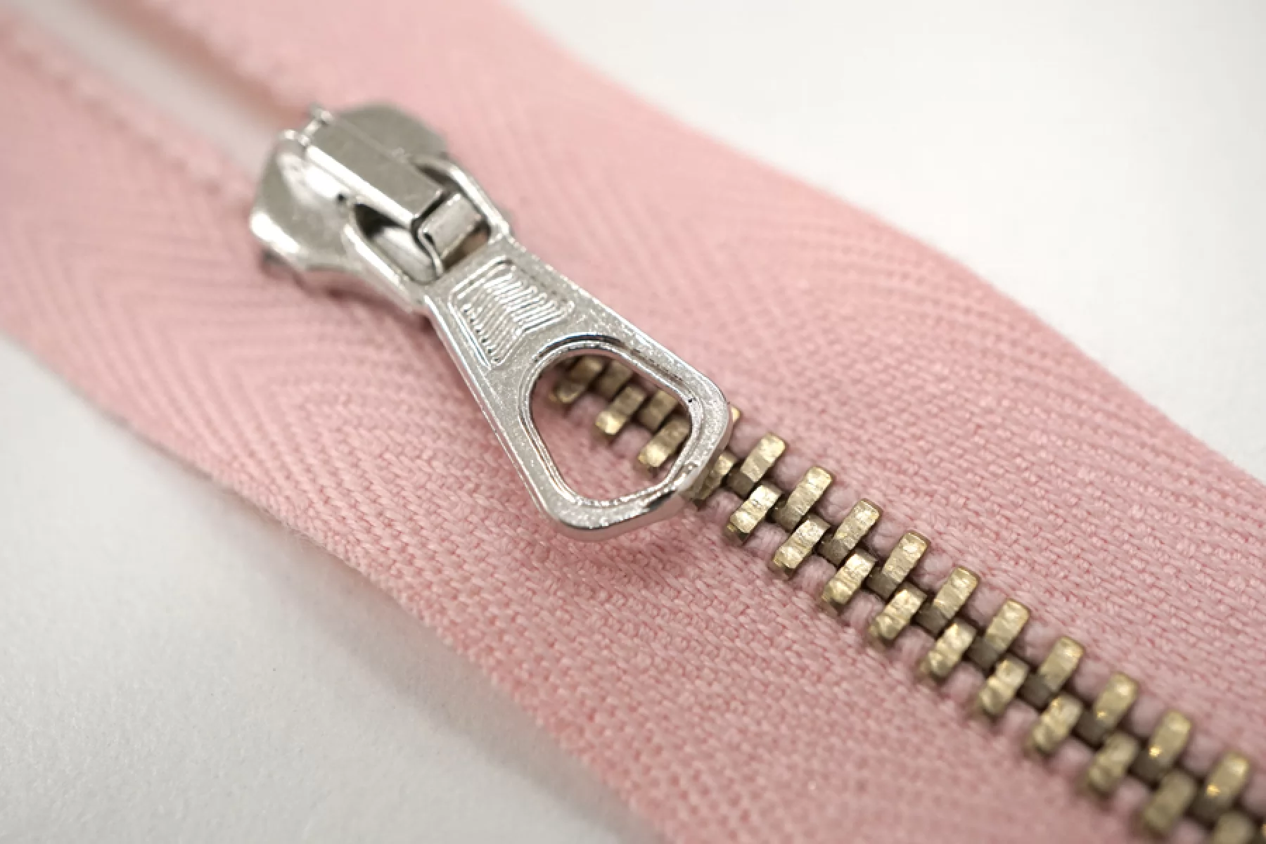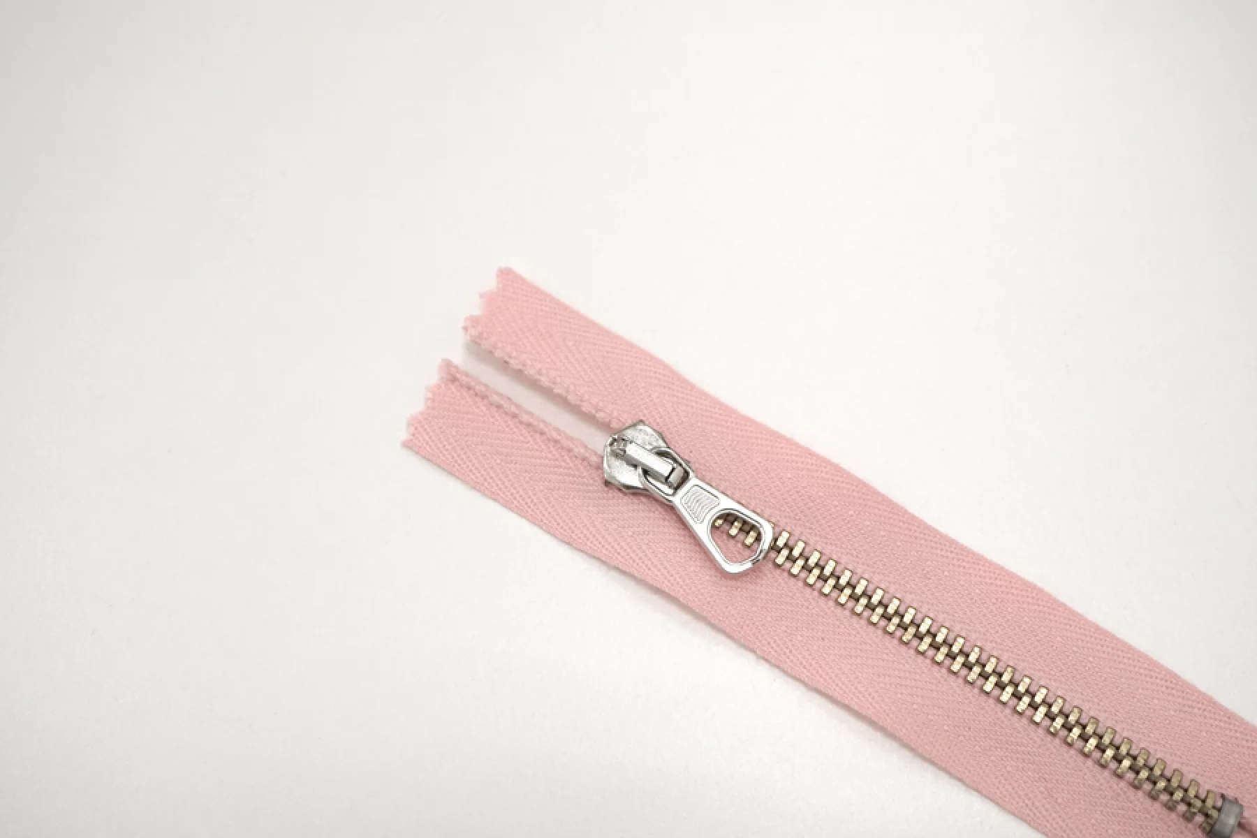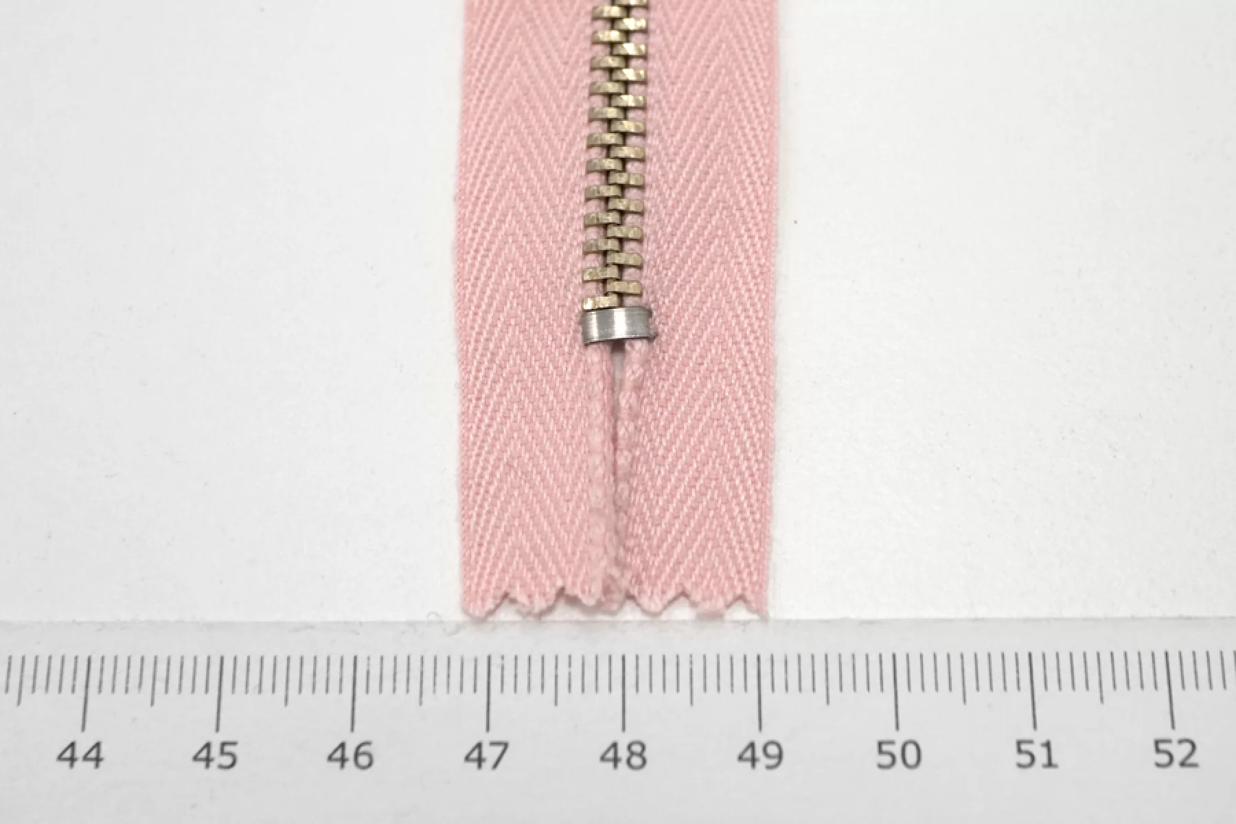 Молния от "Lampo" неразъемная, нежно-розовая, цвет зубцов - золотистый, слайдер и пулер - серебристые. Длина 7 см.