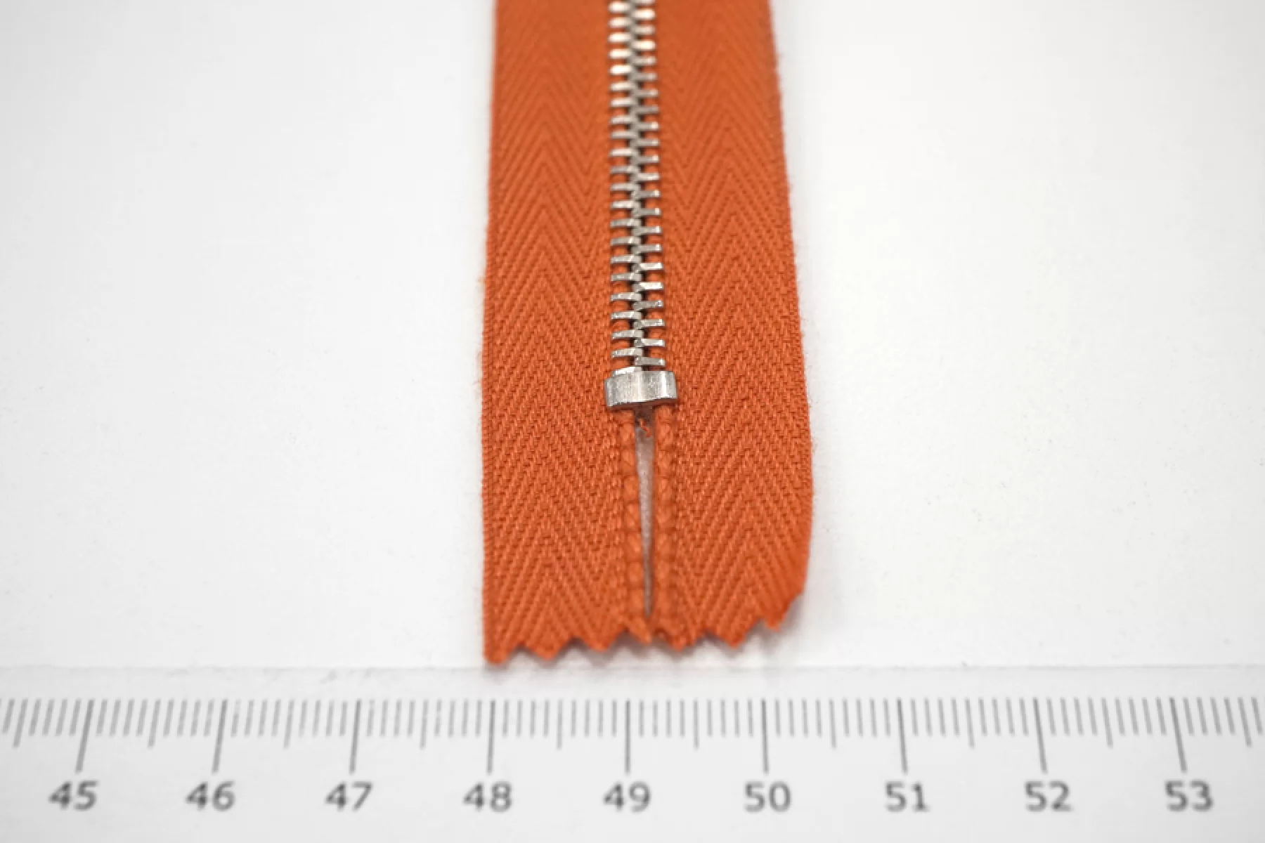 Молния от "Lampo" неразъемная, оранжевая, цвет зубцов серебристый. Длина 16 см.