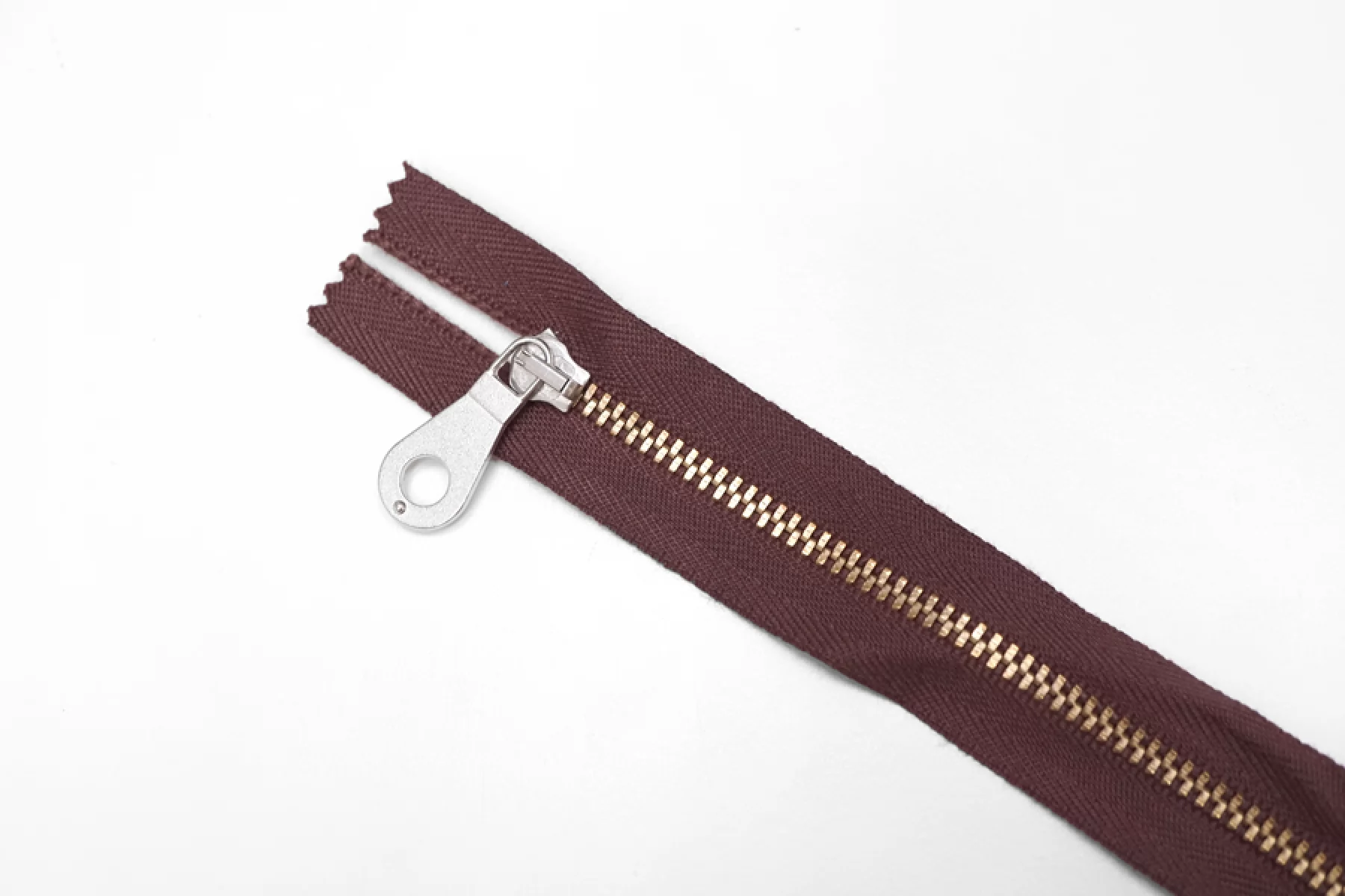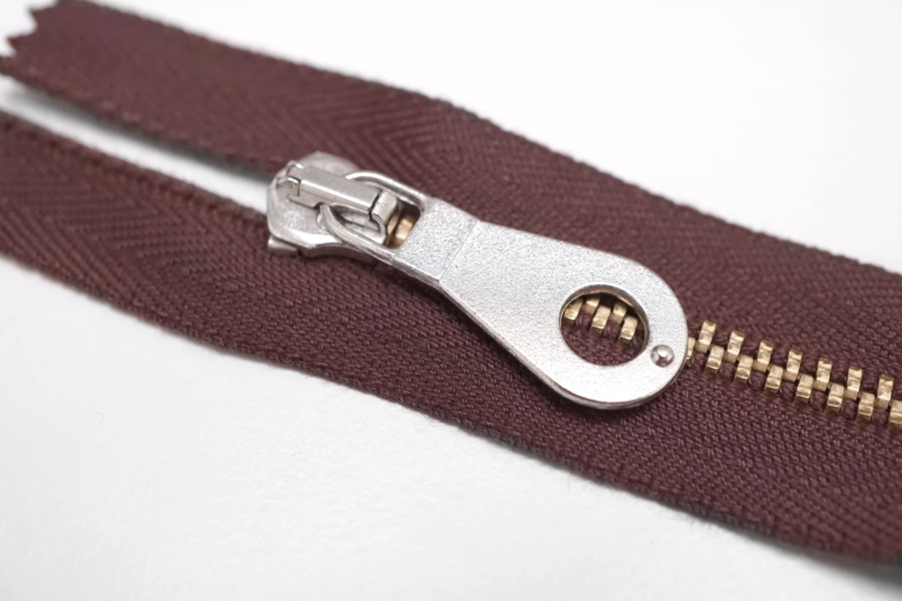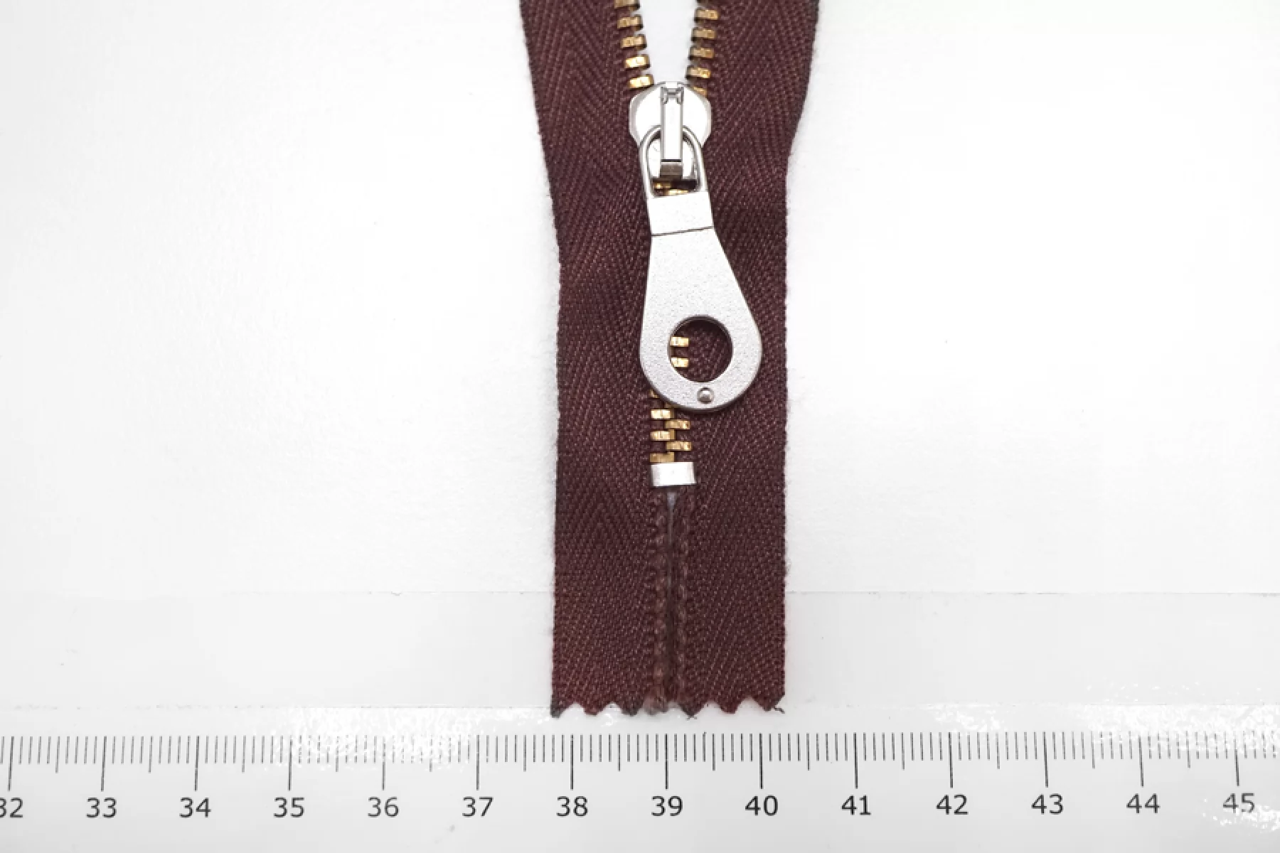 Молния металлическая от "Lampo" неразъемная, пыльно-бордового цвета, цвет слайдера и пуллера серебристый, цвет зубцов золотистый. Длина 26 см.