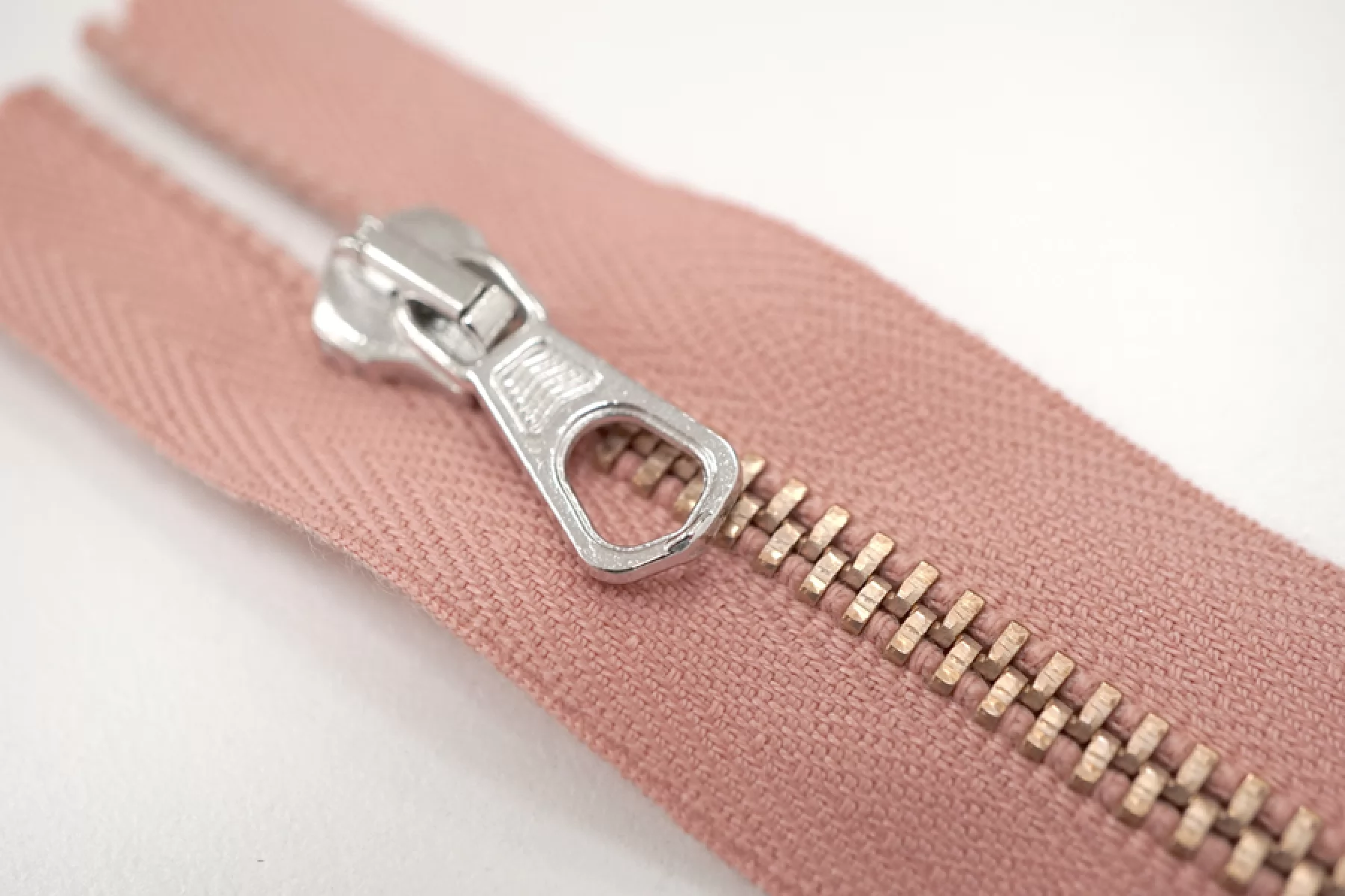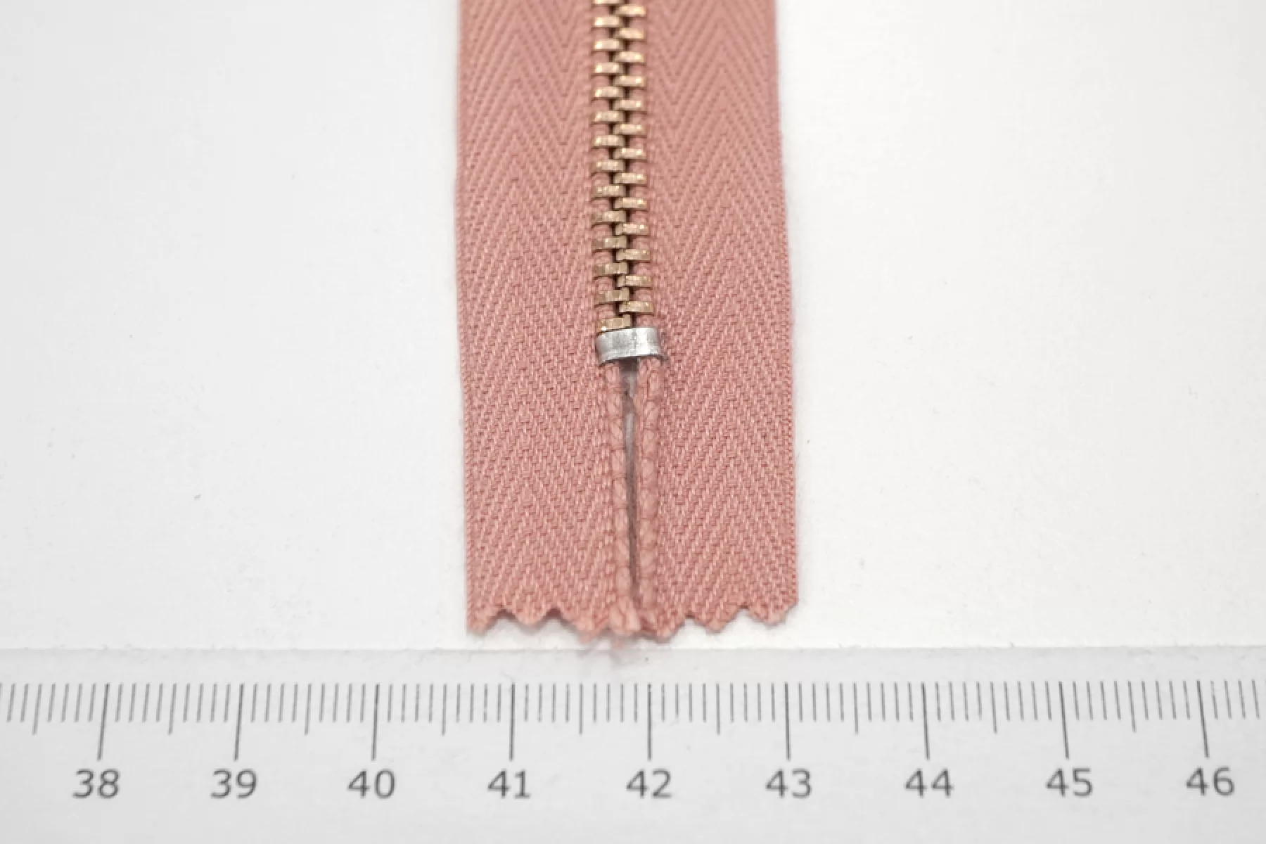 Молния от "Lampo" неразъемная, пыльно-розовая, цвет зубцов - золотистый, слайдер и пулер - серебристые. Длина 10 см.