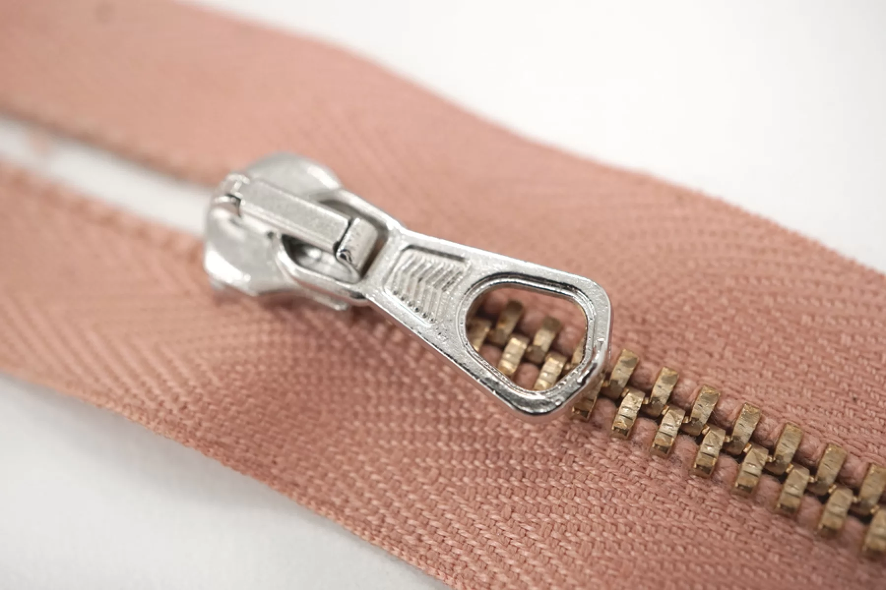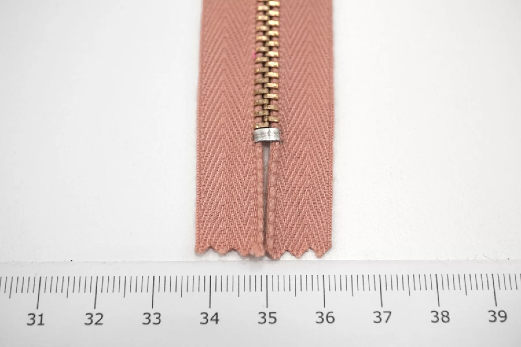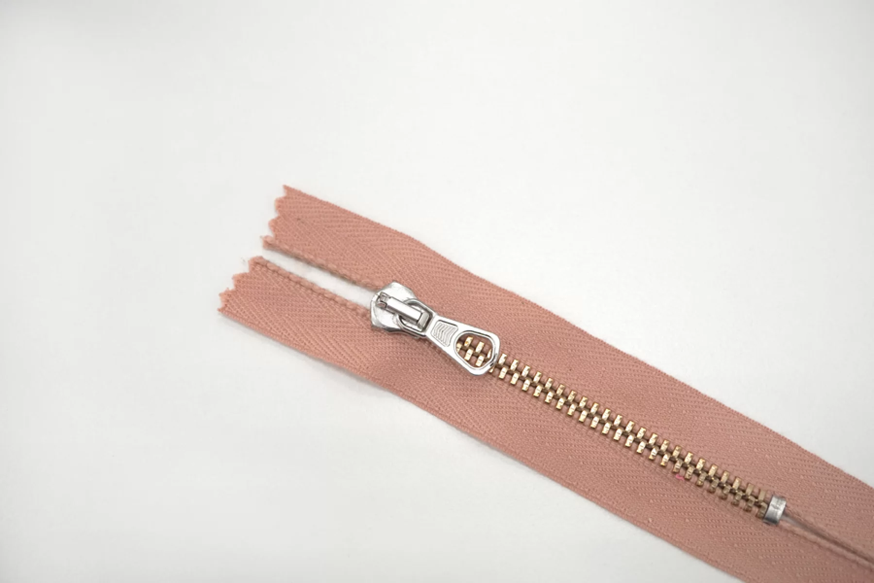 Молния от "Lampo" неразъемная, пыльно-розовая, цвет зубцов - золотистый, слайдер и пулер - серебристые. Длина 8 см.