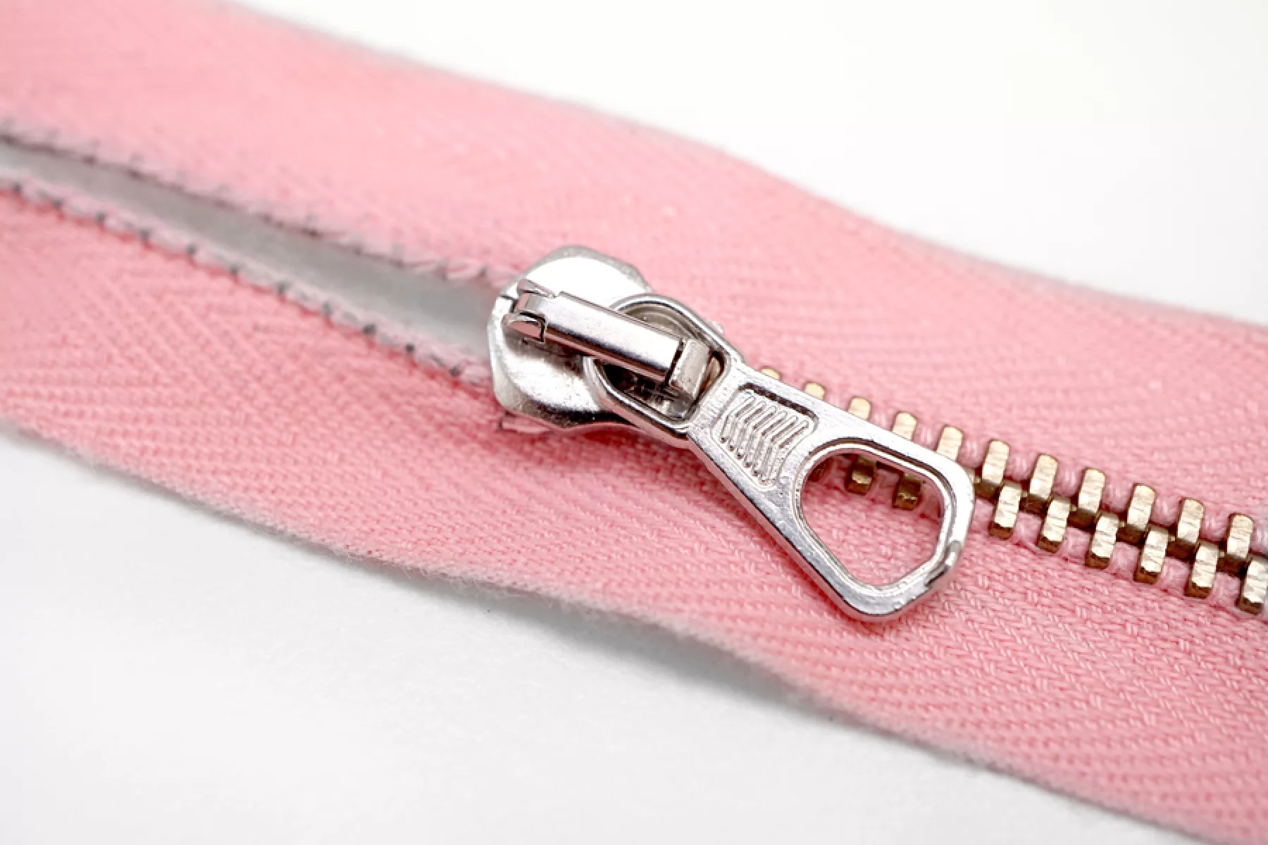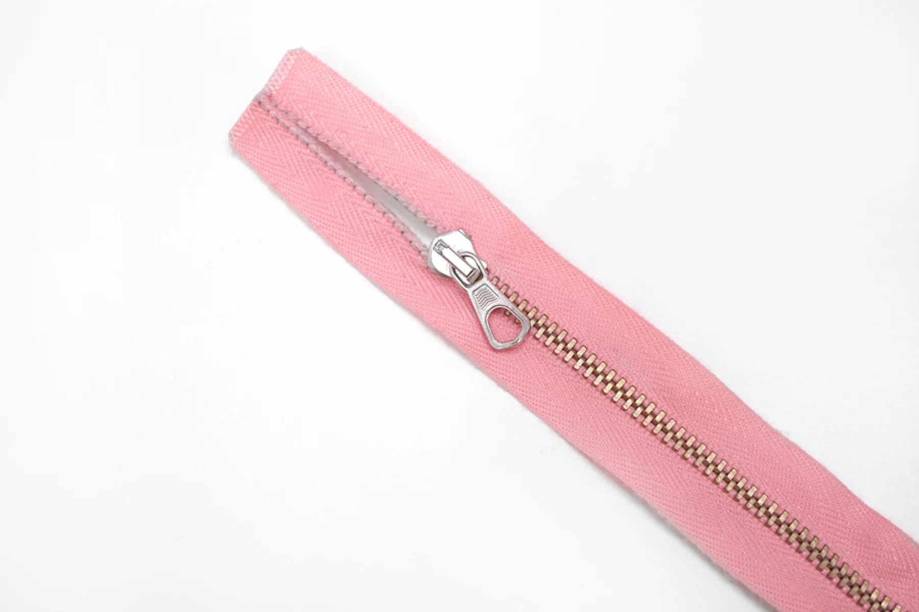 Молния от "Lampo" разъемная, двухзамковая, розового цвета, цвет зубцов бронза, пуллера и слайдера серебристый. Длина 40 см.