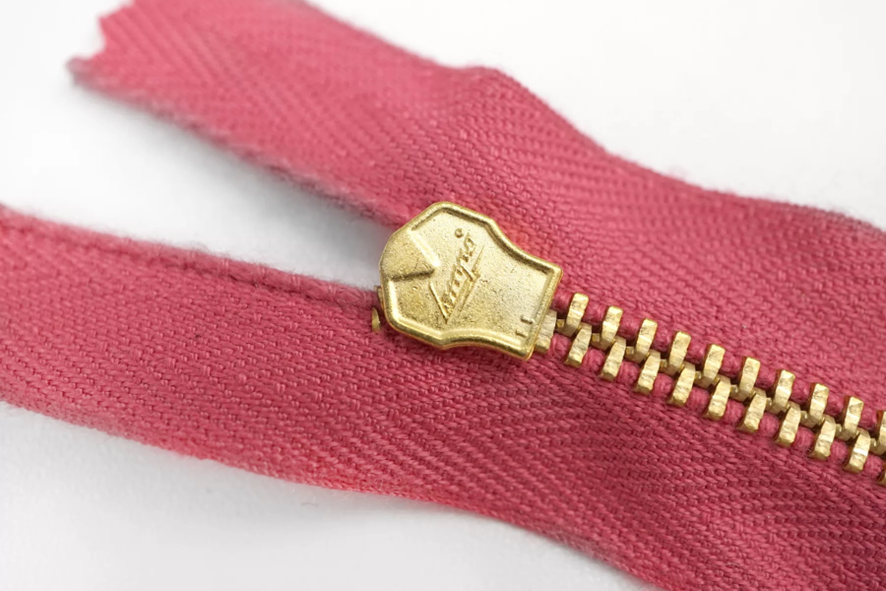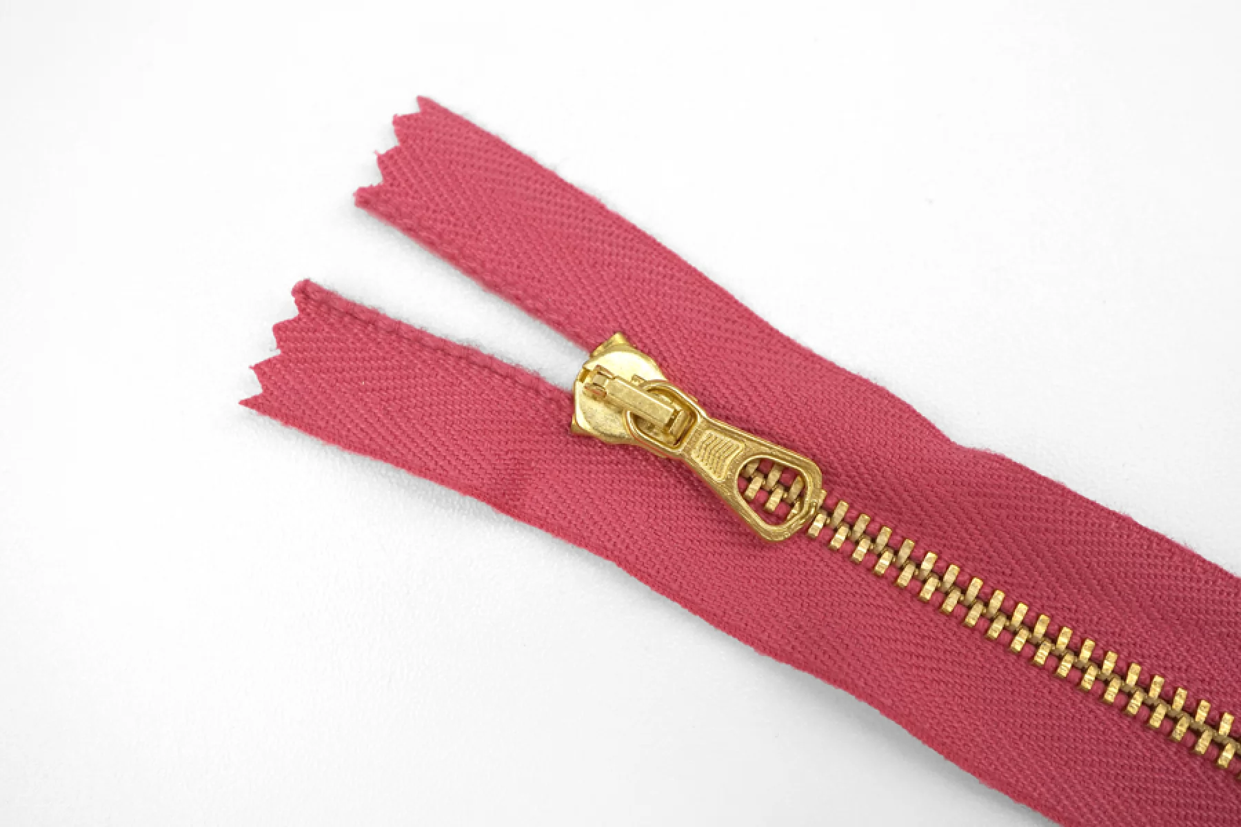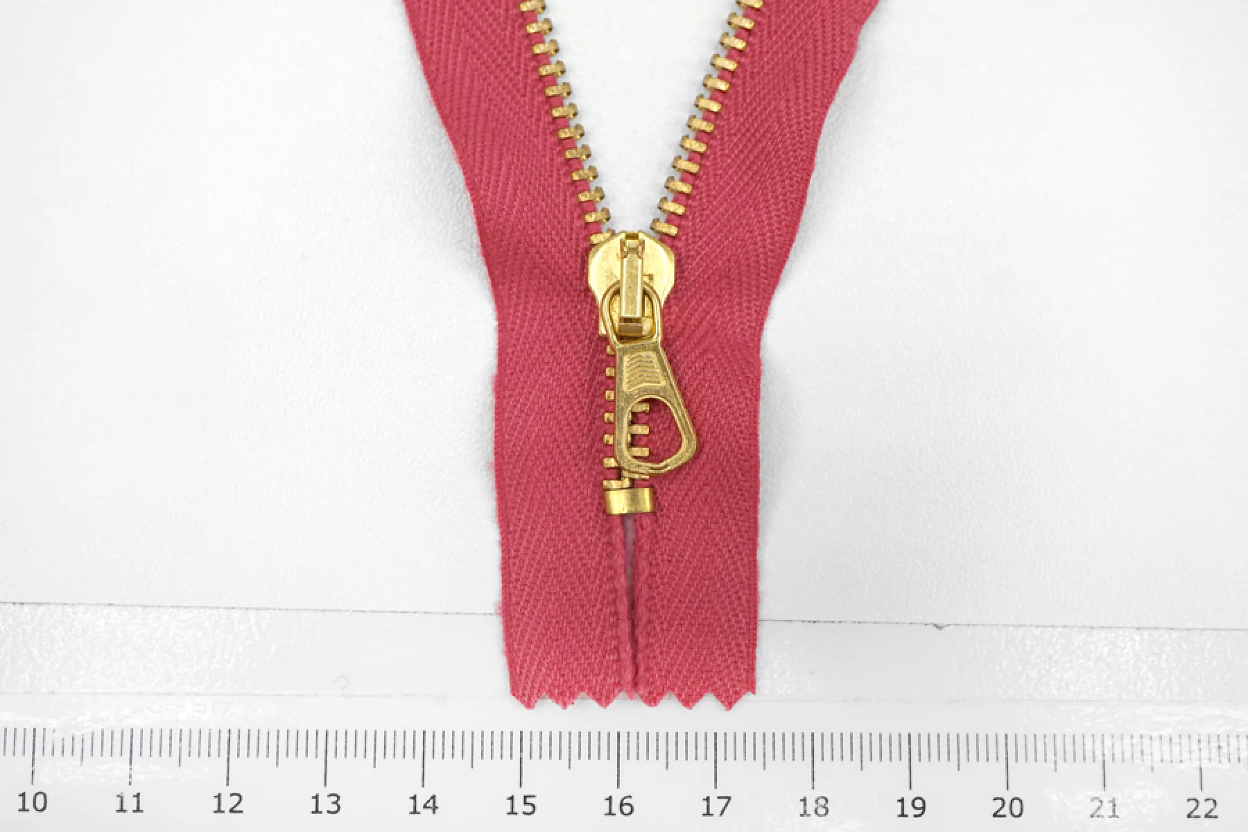 Молния от "Lampo" неразъемная, однозамковая, розового цвета, цвет зубцов золотистый. Длина 9 см.