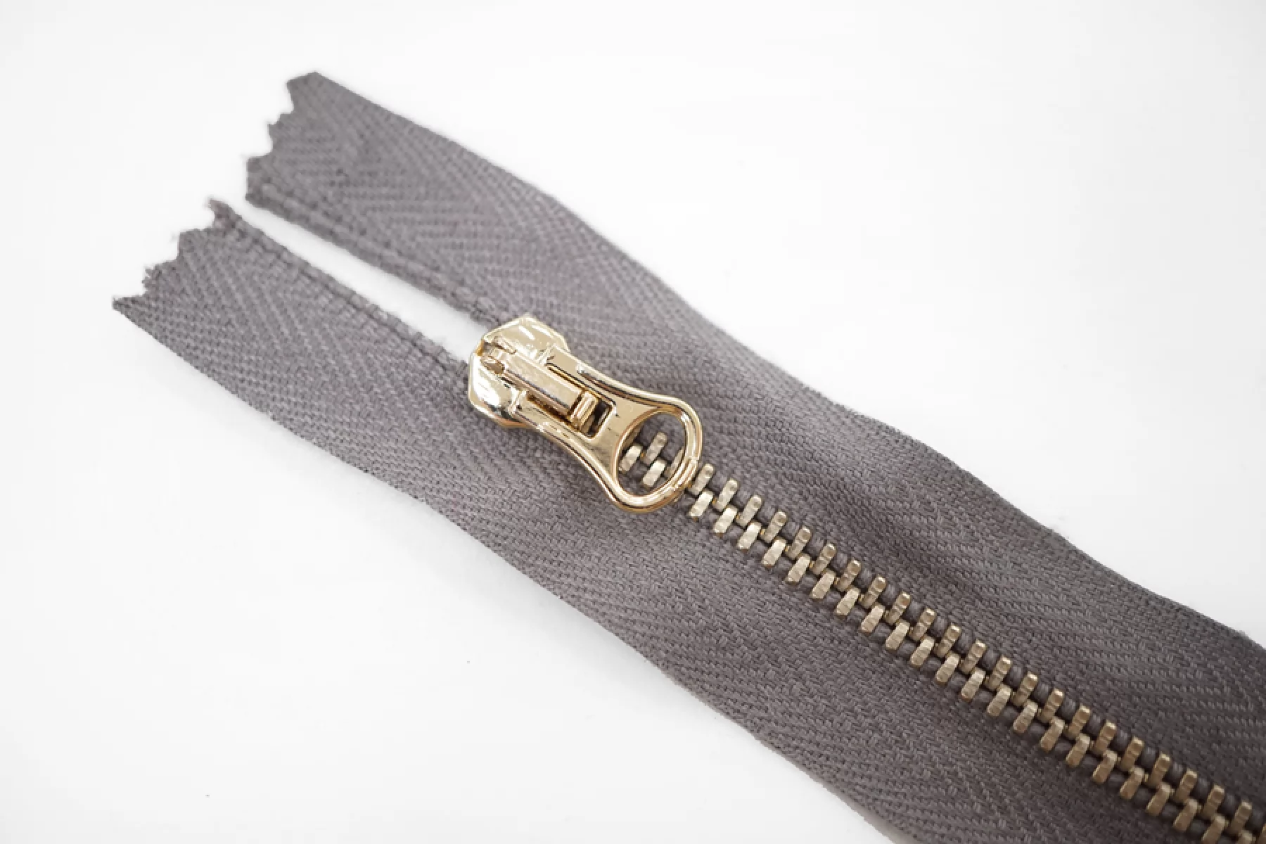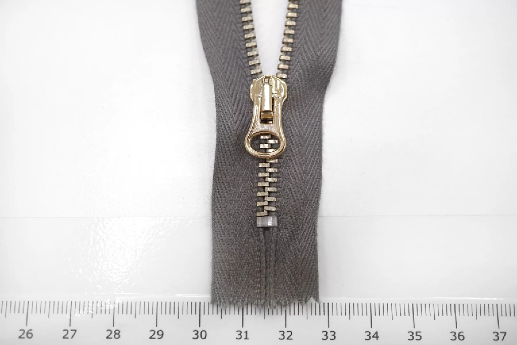Молния металлическая однозамковая от "Lampо" неразъёмная, серого цвета, цвет зубцов и пуллера золотистый. Длина 12 см.