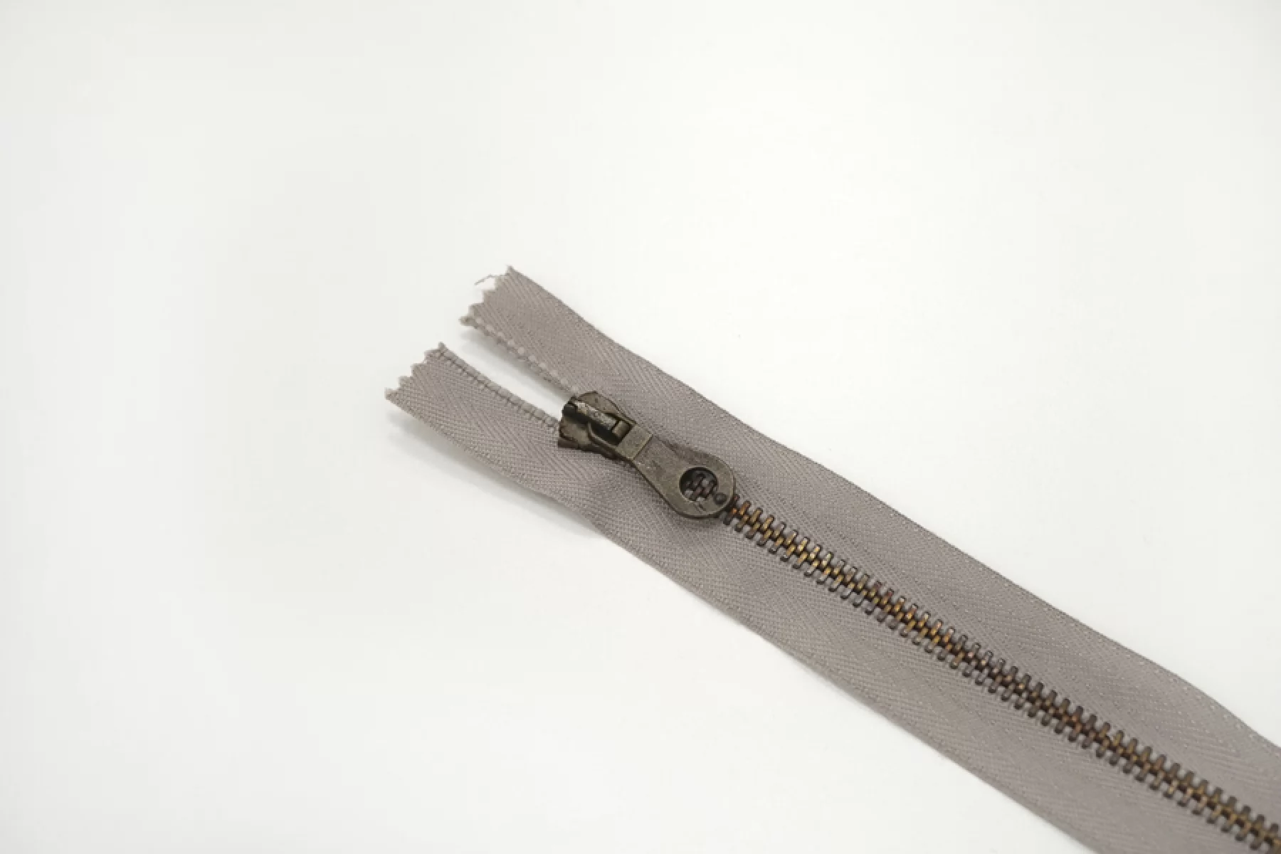 Молния от "Lampo" неразъемная, серая, цвет зубцов и крупного слайдера бронзовый. Длина 15 см.