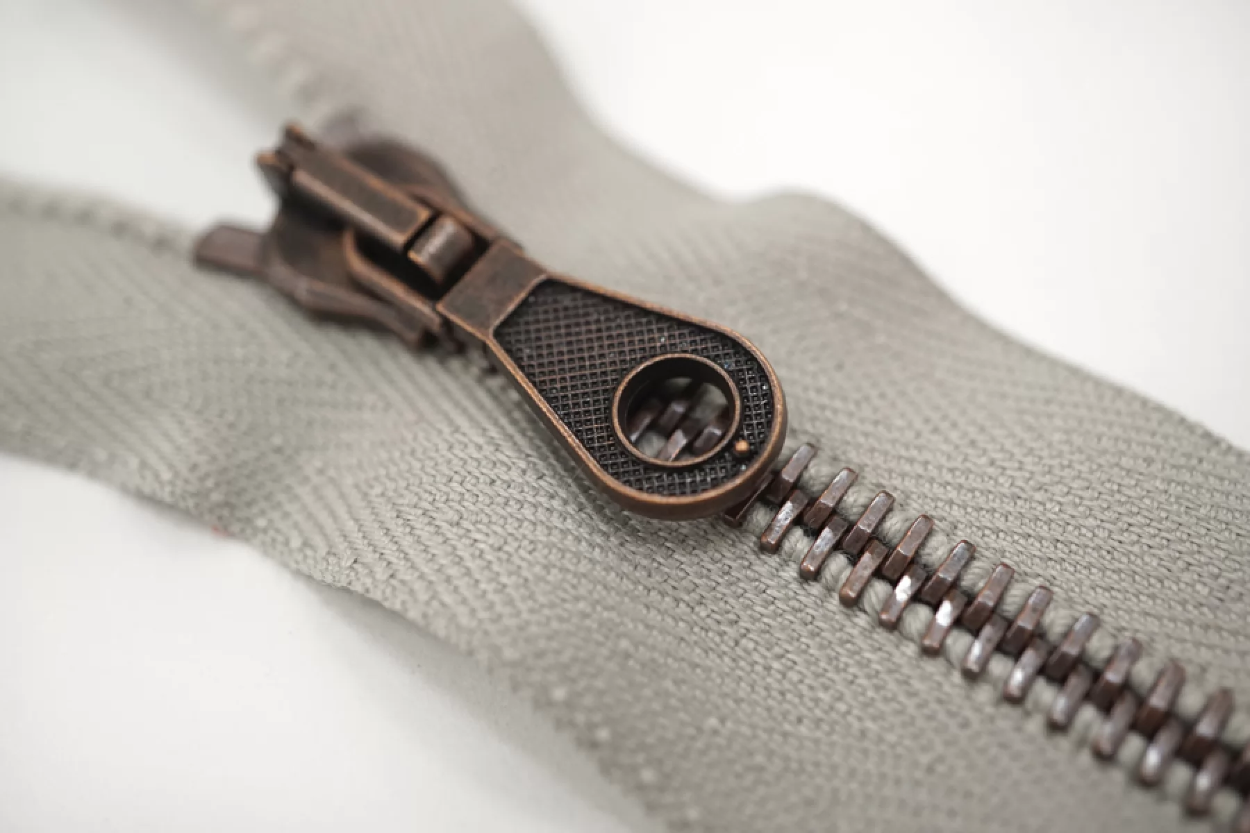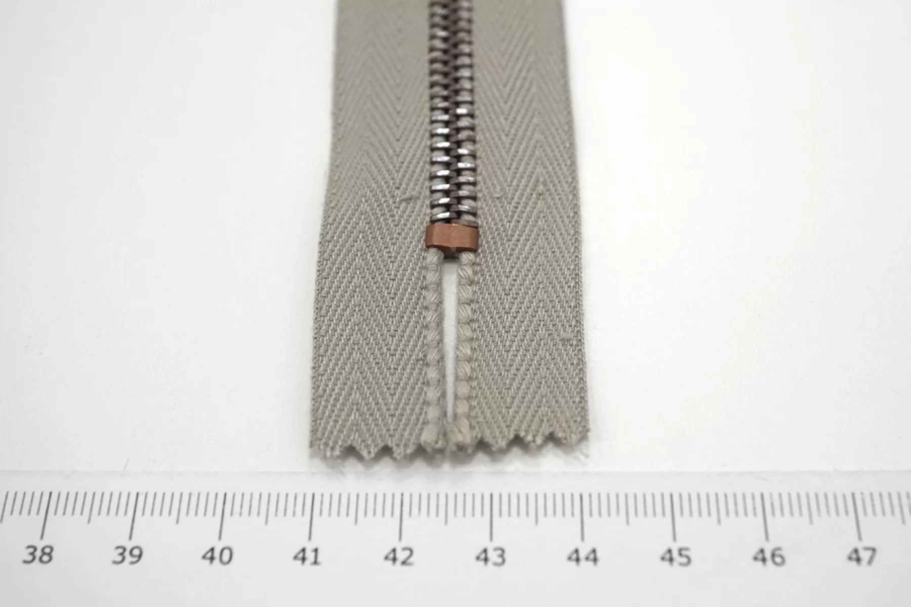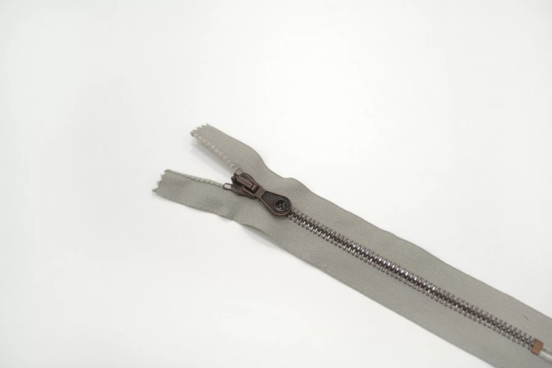 Молния от "Lampo" неразъемная, серая с зеленым подтоном, цвет зубцов бронзовый. Длина 16 см.