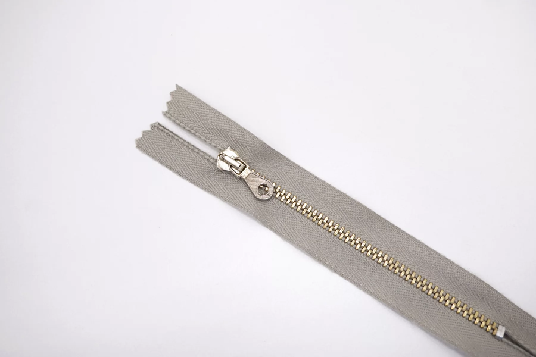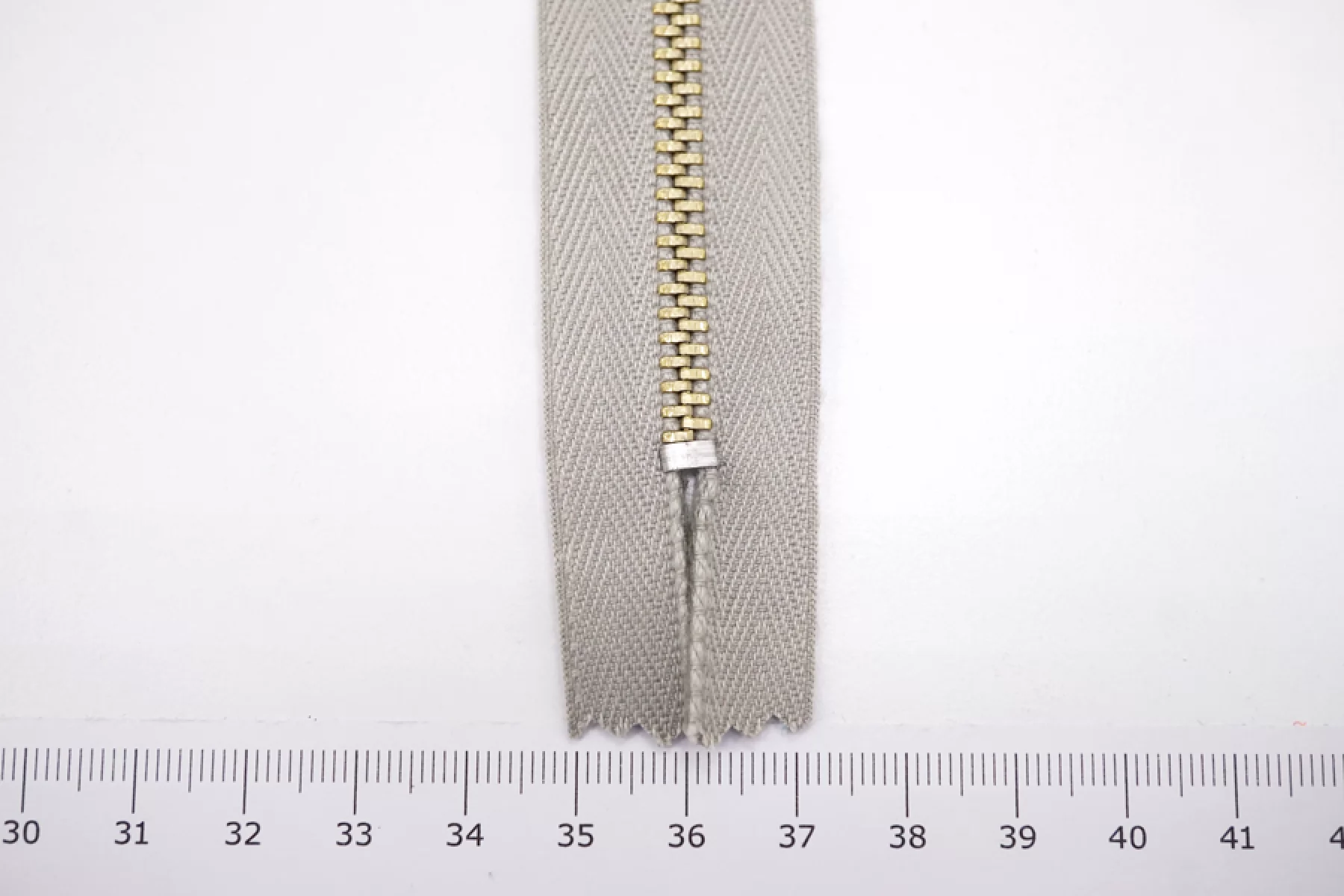Молния от "Lampo" неразъемная, серая, цвет зубцов золотистый. Длина 17 см.