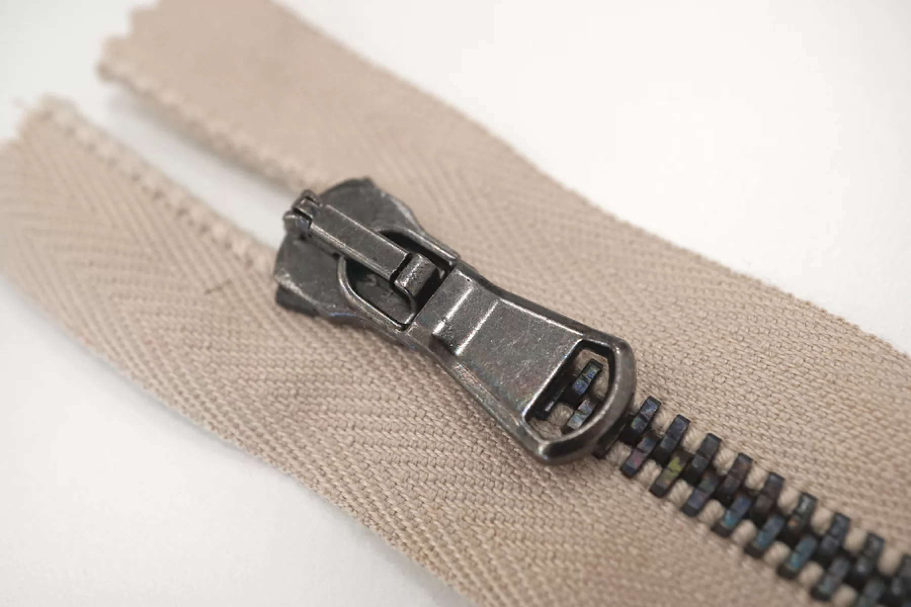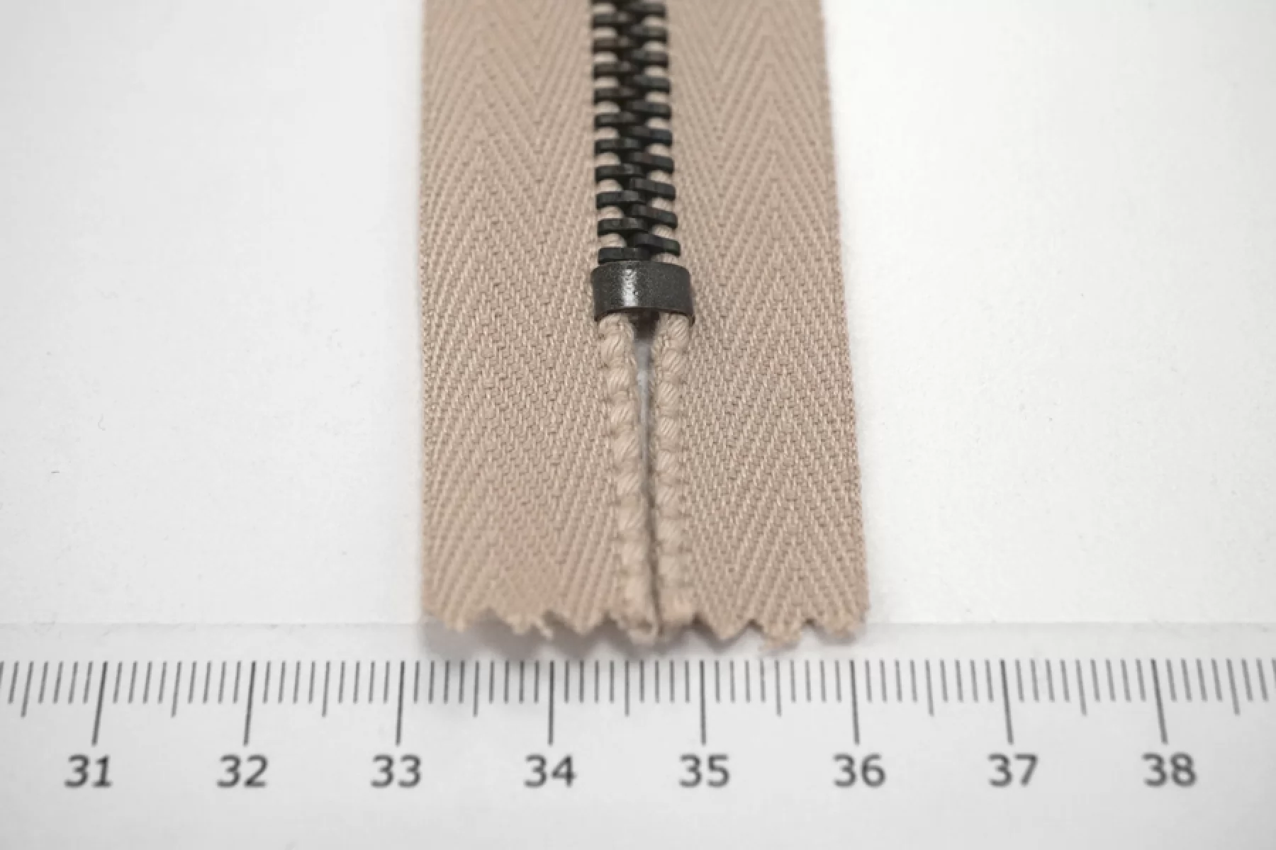 Молния от "Lampo" неразъемная, серо-бежевая, цвет зубцов - темный никель. Длина 12 см.