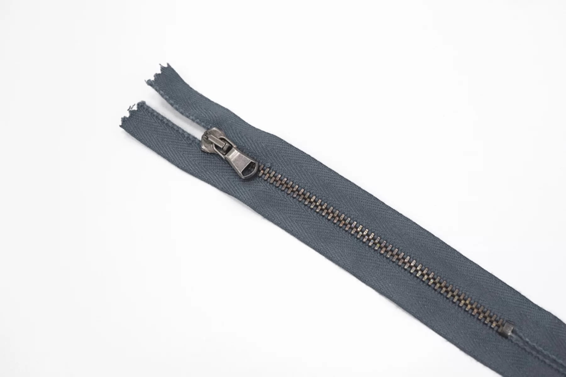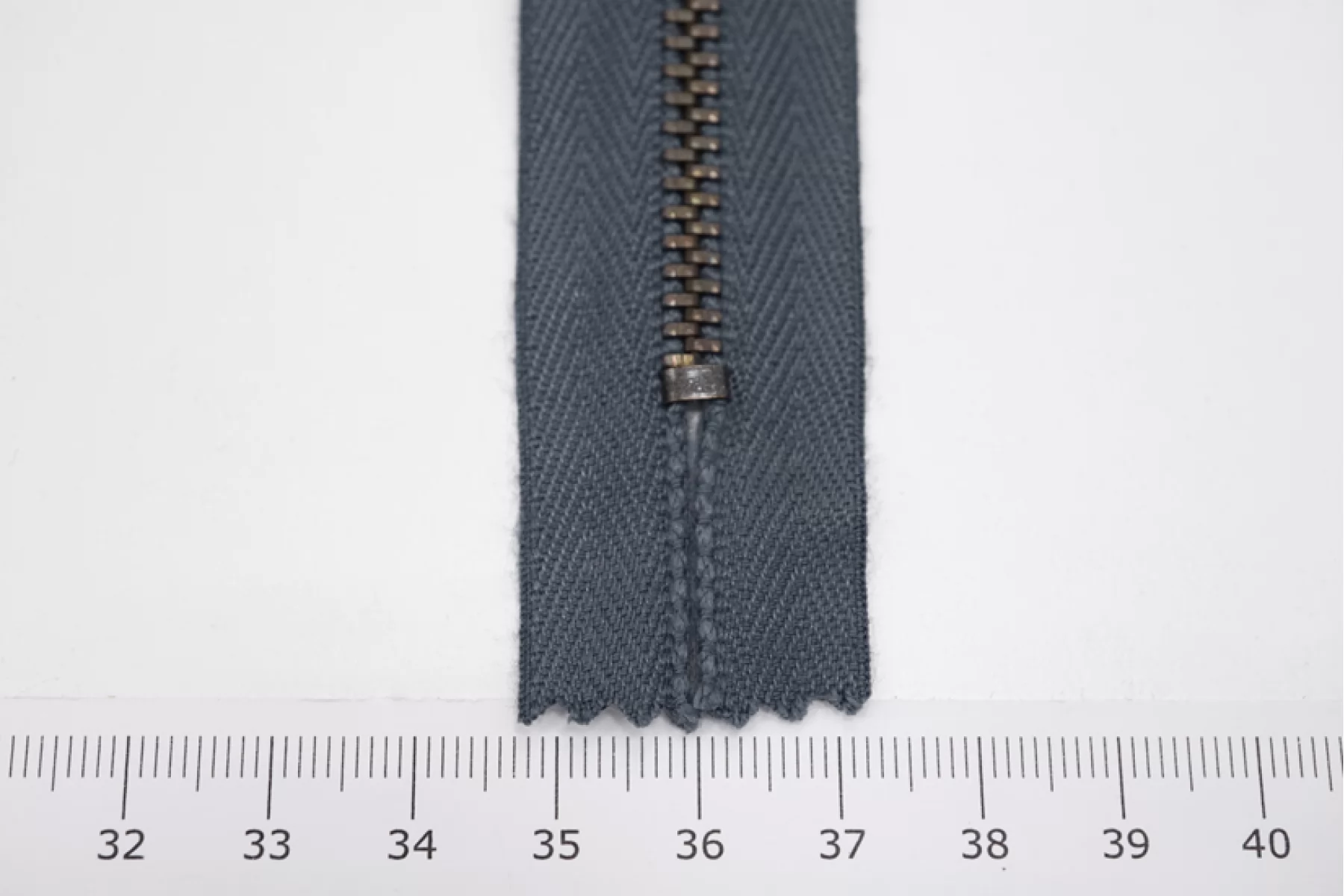 Молния от "Lampo" неразъемная, серо-синяя, цвет зубцов бронзовый, слайдер и пулер - темный никель. Длина 10 см.