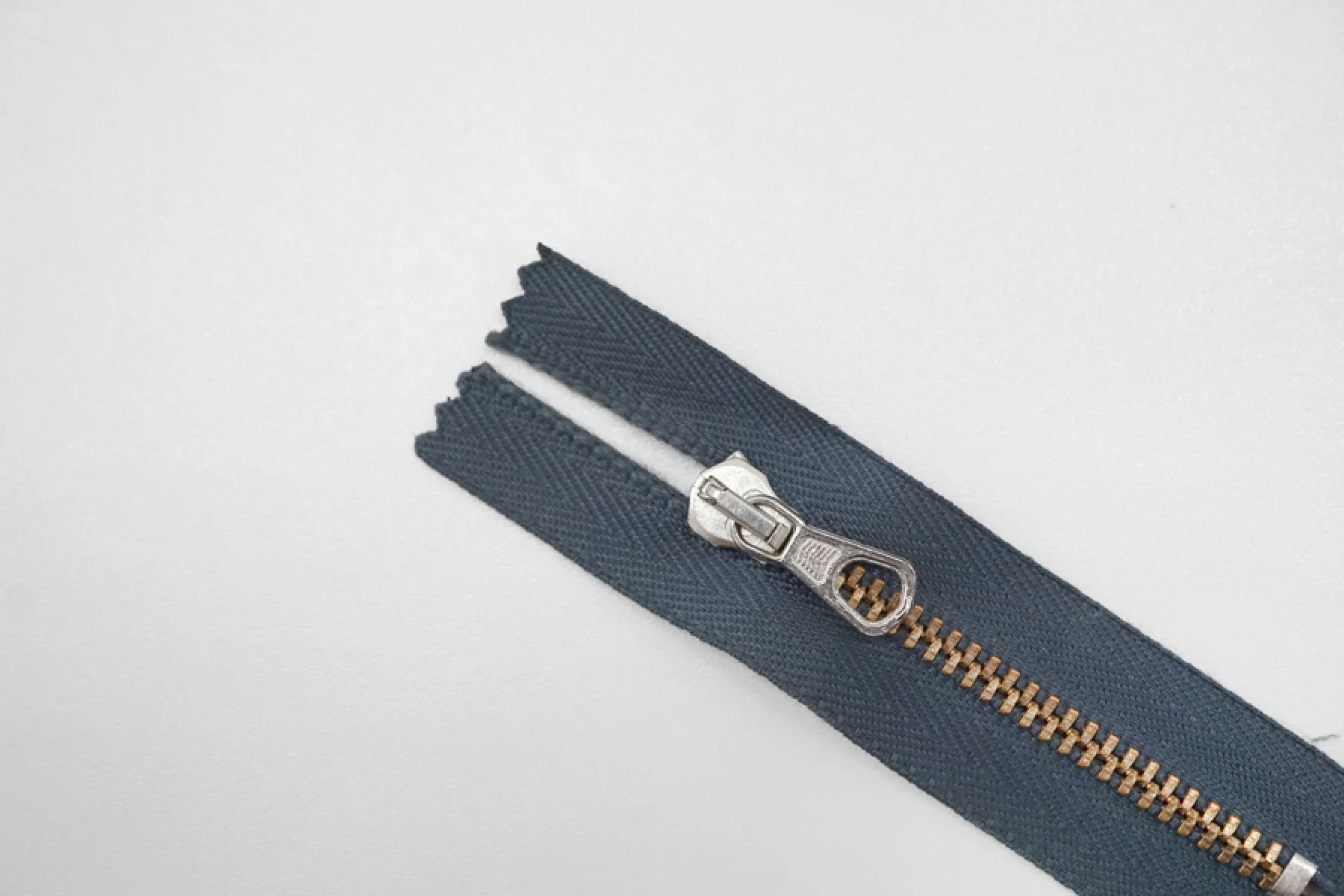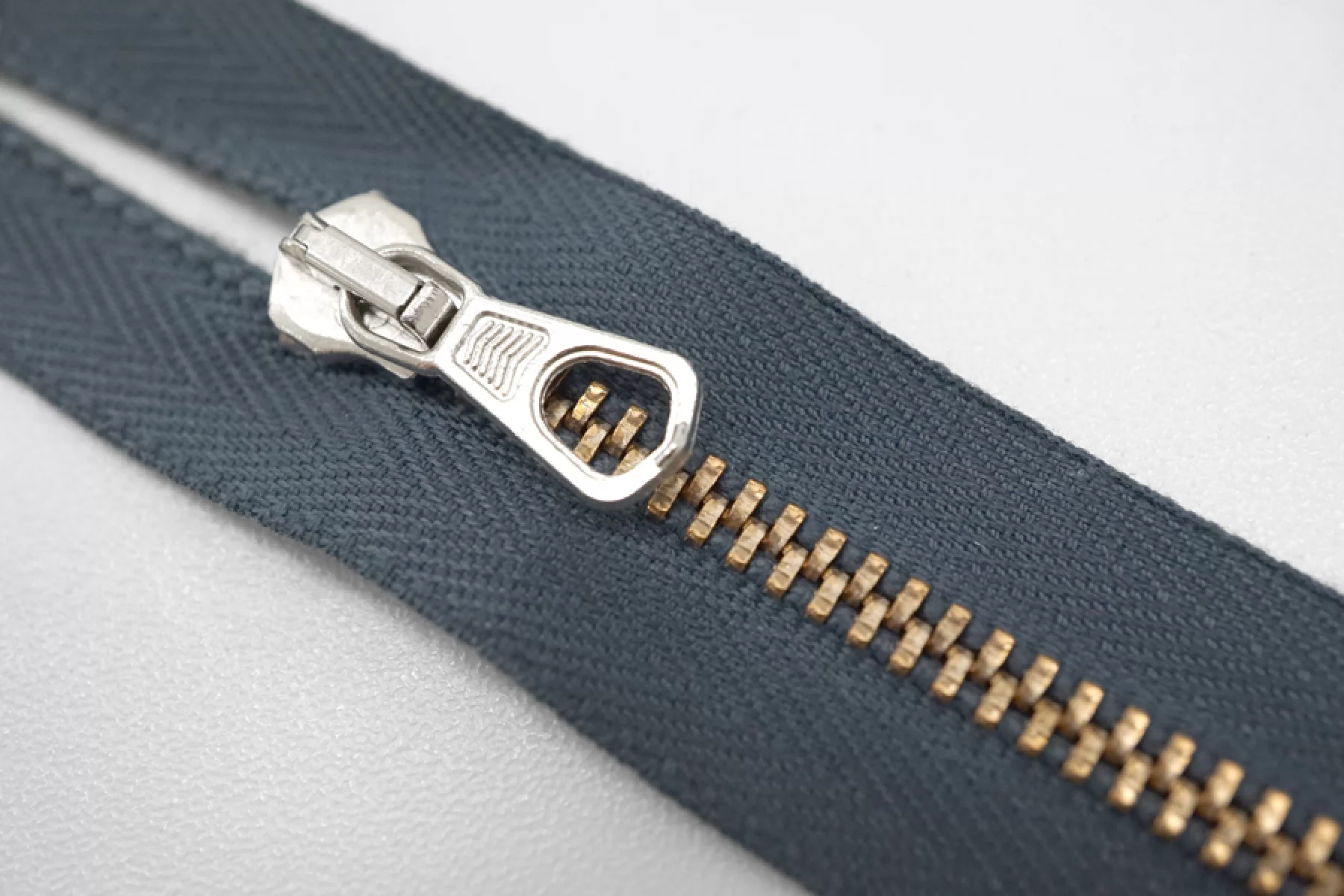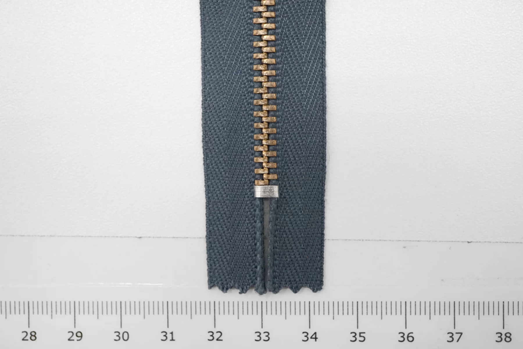 Молния от "Lampo" неразъемная, синевато-серая, цвет зубцов - золотистый, слайдер и пуллер серебристого цвета. Длина 7 см.