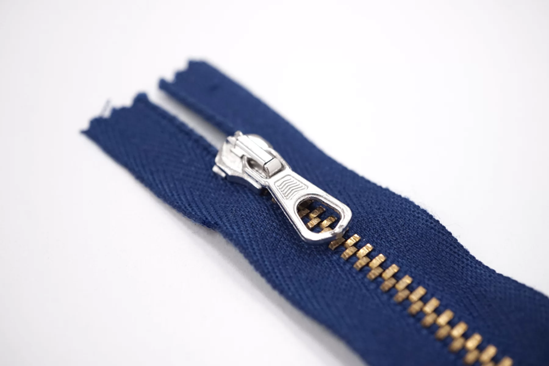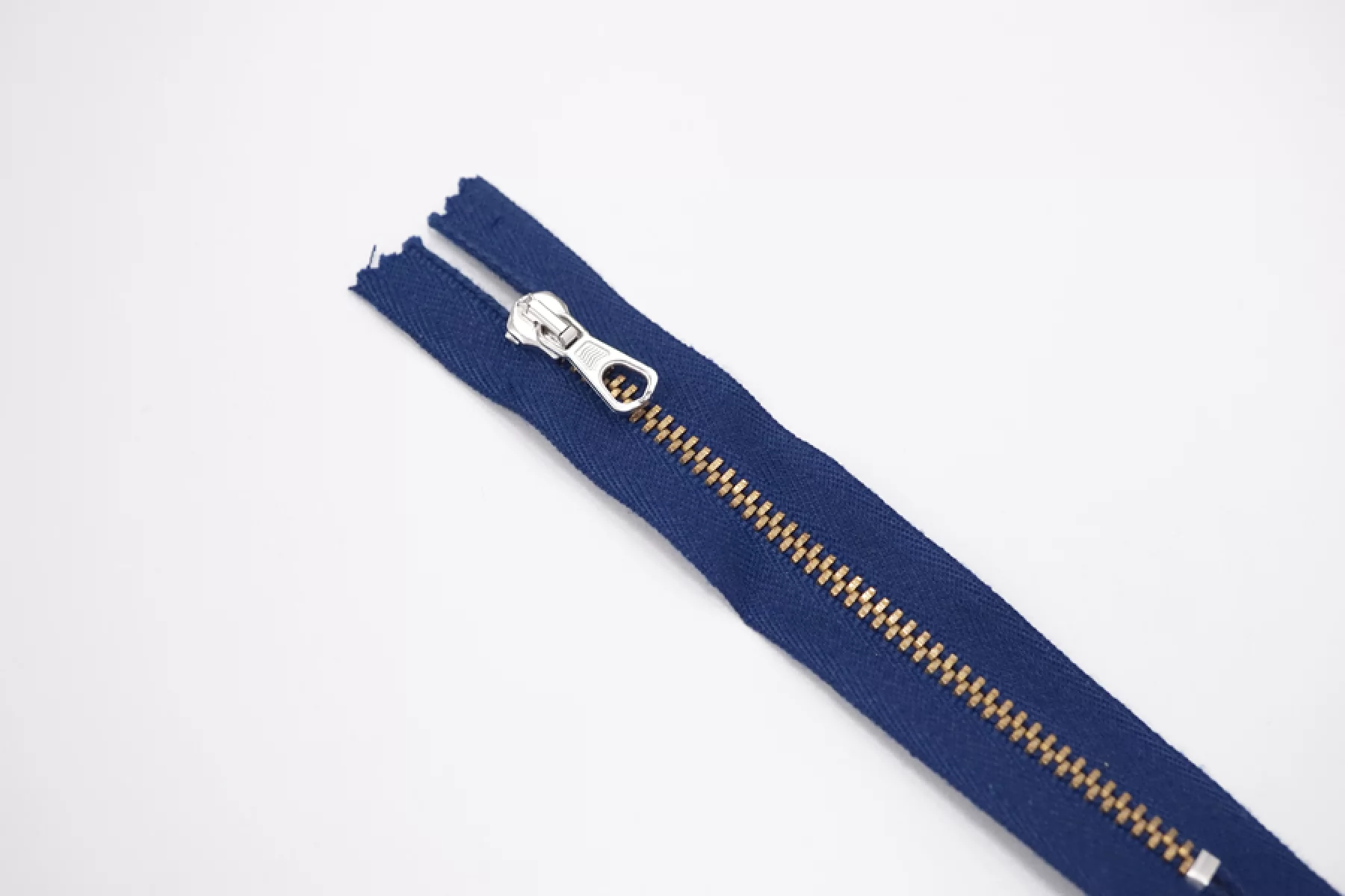 Молния от "Lampo" неразъемная, синяя, цвет зубцов золотистый, пулер и слайдер серебристые. Длина 12 см.