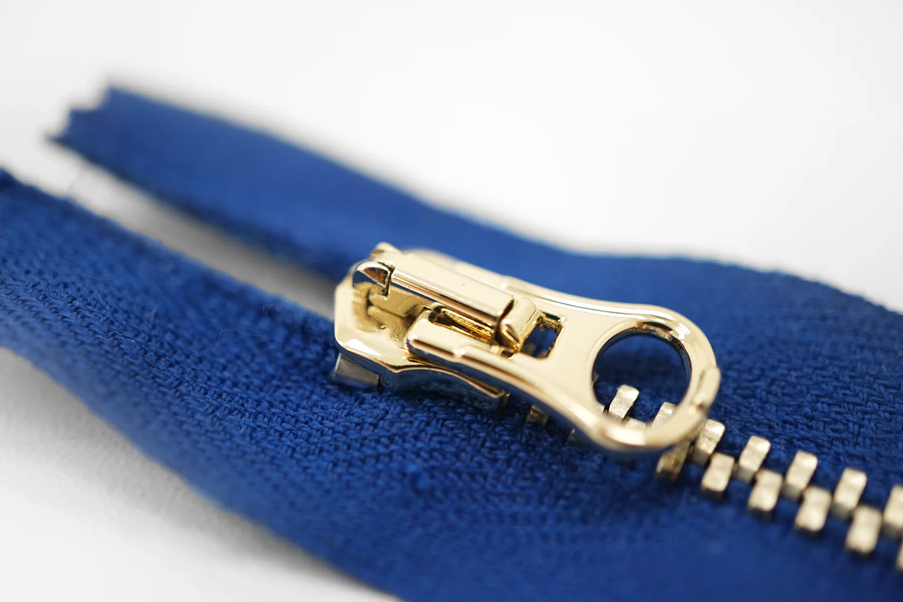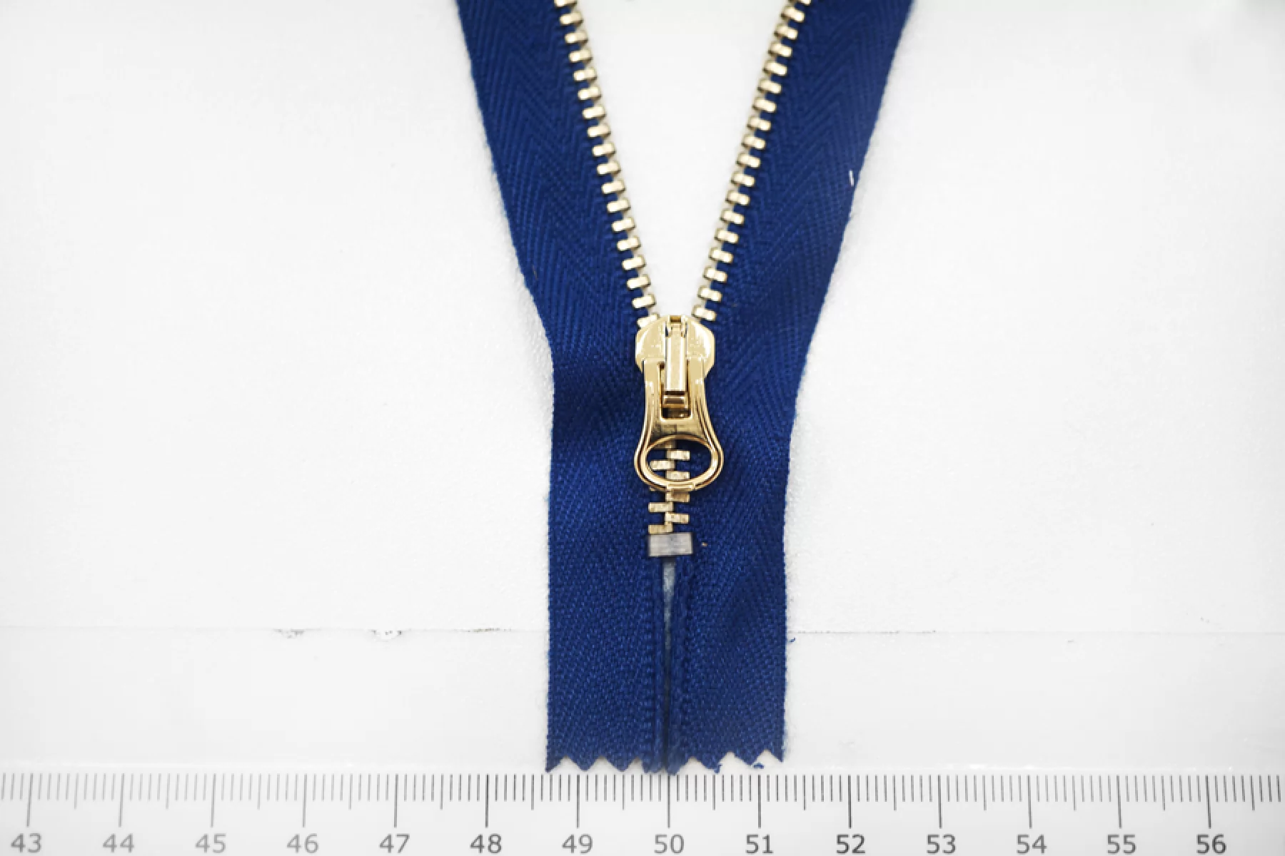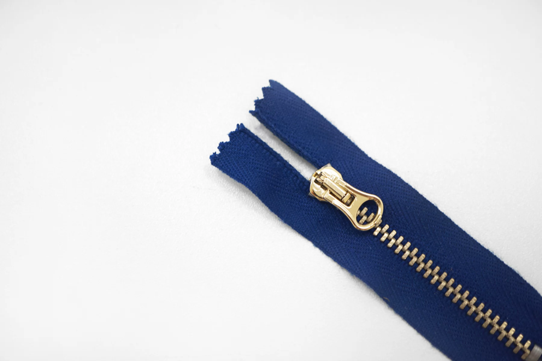 Молния от Lampo неразъемная, однозамковая, синего цвета, цвет зубцов золотистый. Длина 9 см.