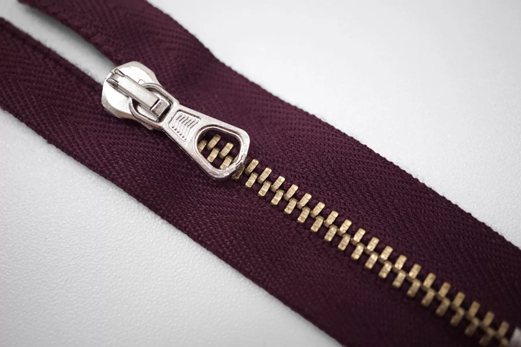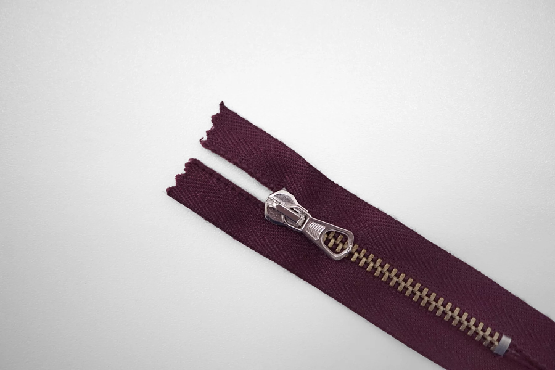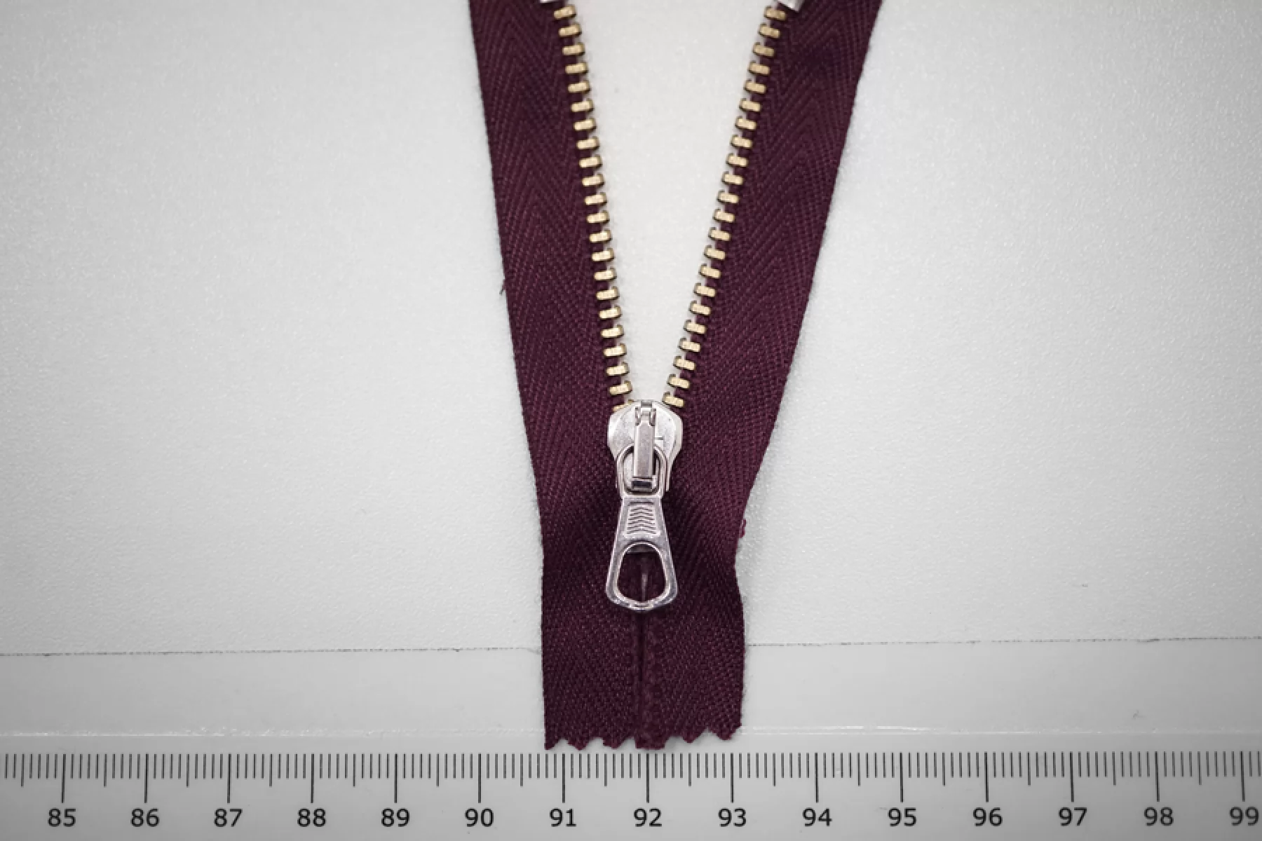 Молния металлическая от "Lampo" неразъемная, сливовая, цвет зубцов золотистый, слайдер и пуллер серебристый. Длина 7 см.