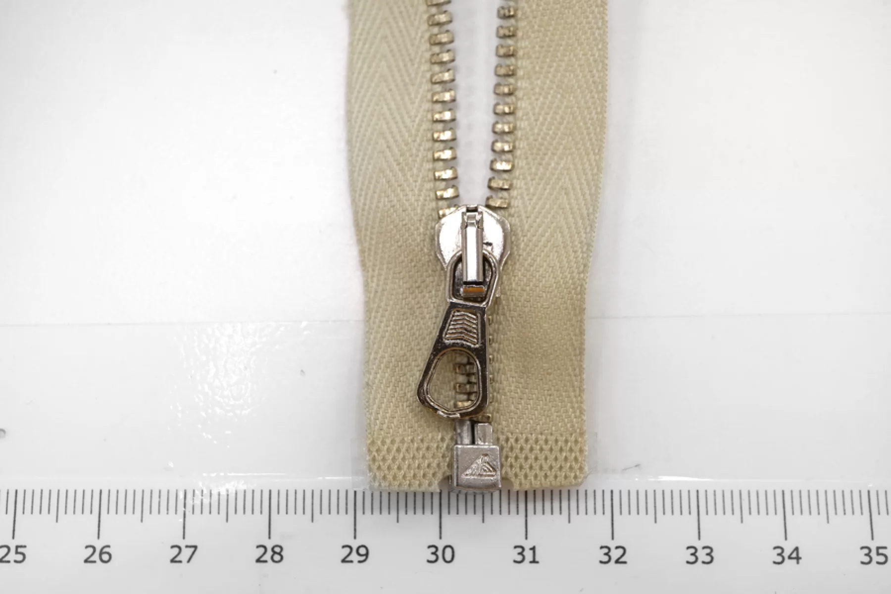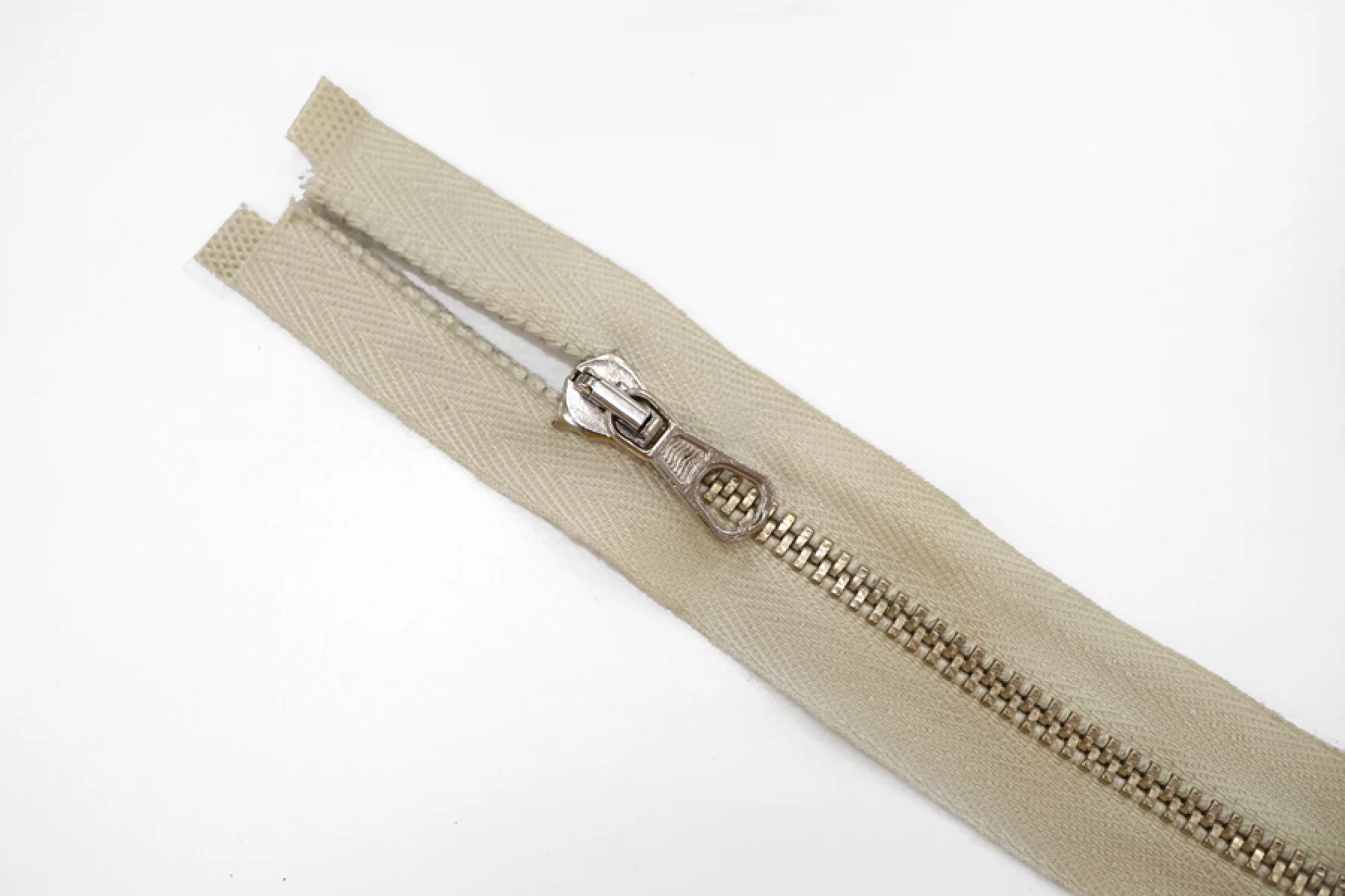 Молния от "Lampo" разъемная, однозамковая, светло-зеленого цвета, цвет зубцов - золотистый , цвет пуллера и слайдера серебристый. Длина 14 см.