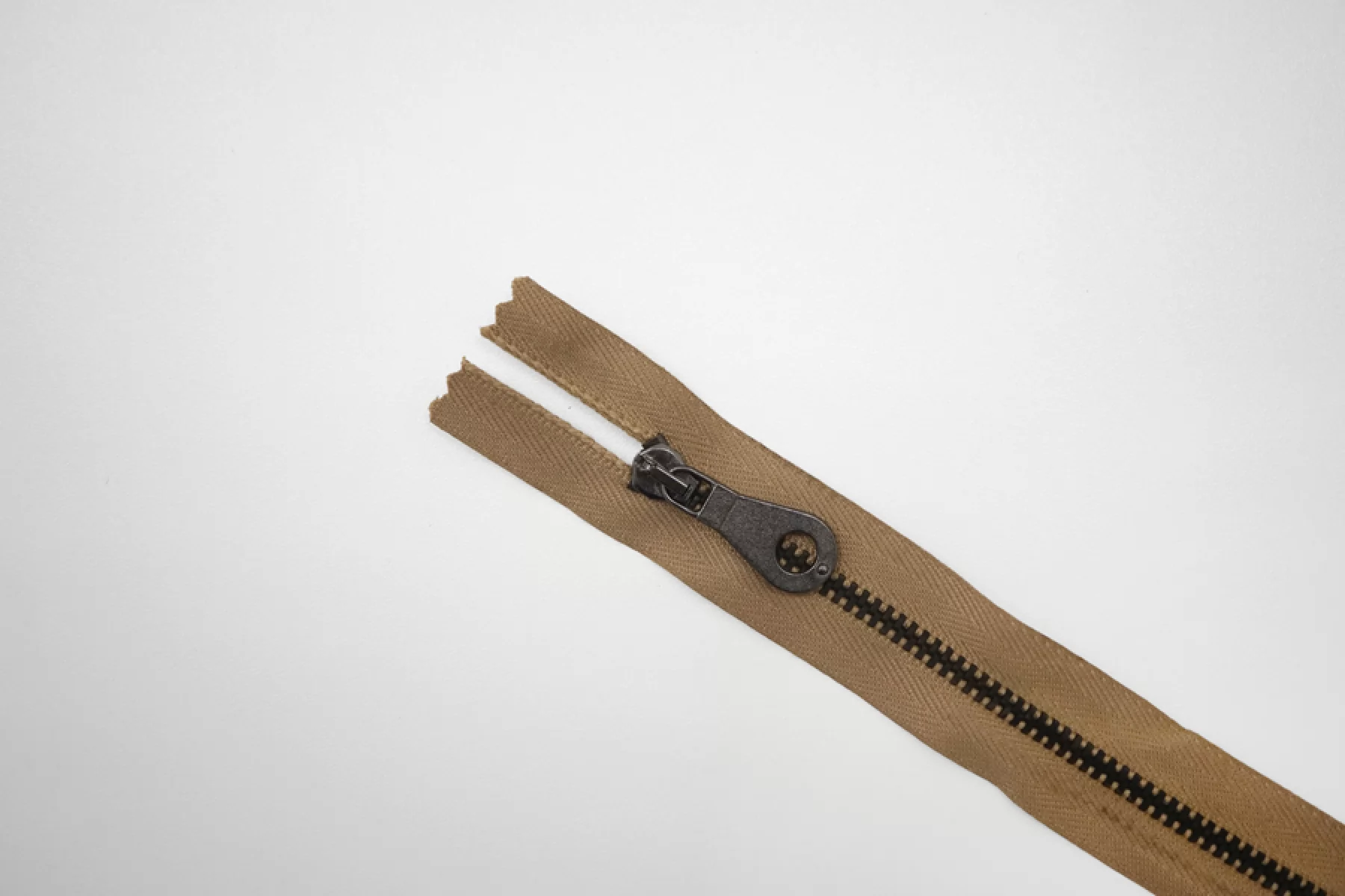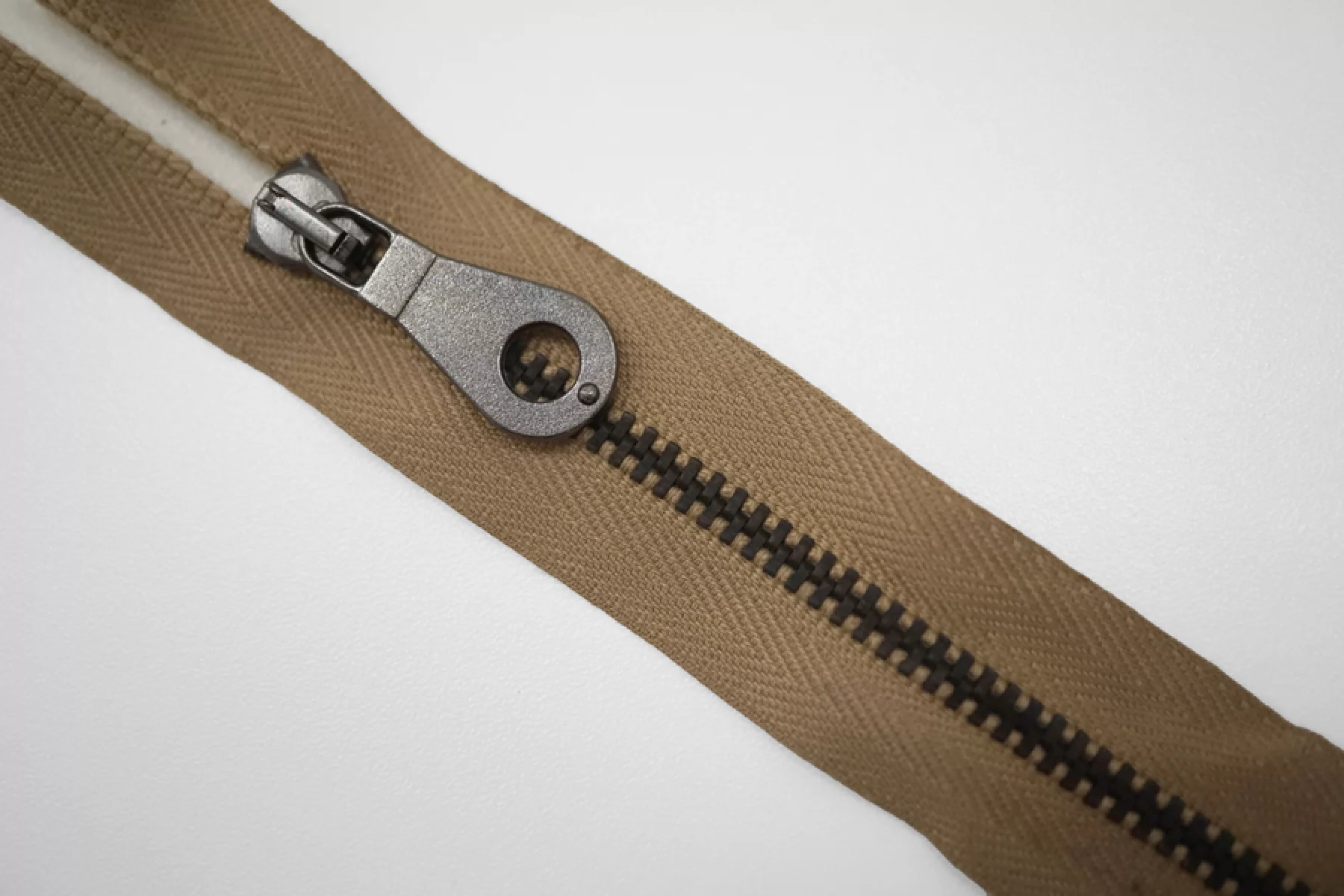Молния металлическая от "Lampo" разъемная, темно-бежевая, цвет зубцов бронзовый, слайдера и крупного пуллера никель. Длина 60 см.