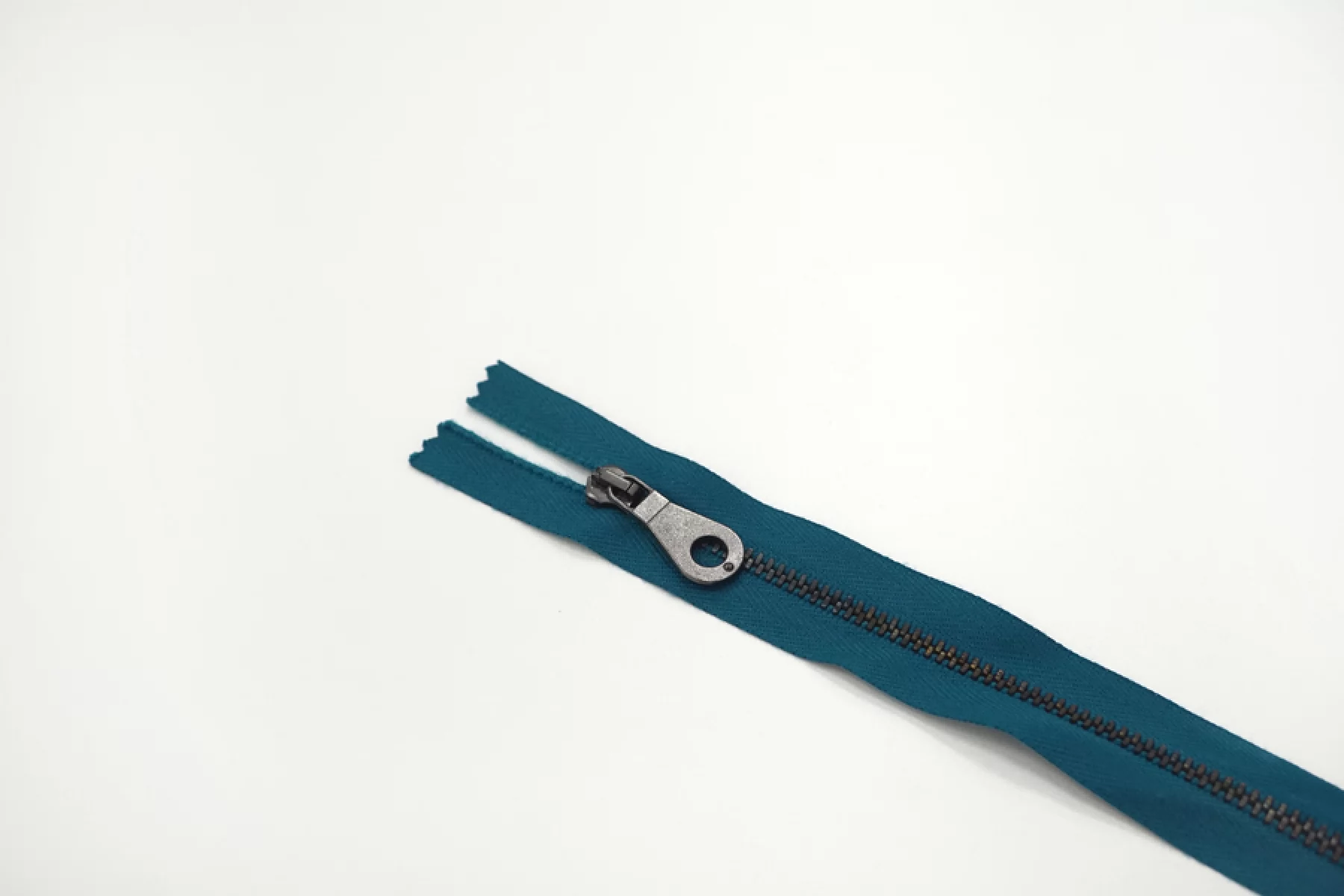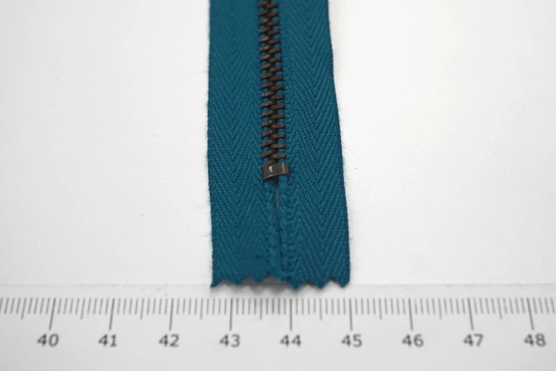 Молния от "Lampo" неразъемная, темно-бирюзовая, цвет зубцов и крупного слайдера бронзовый. Длина 20 см.