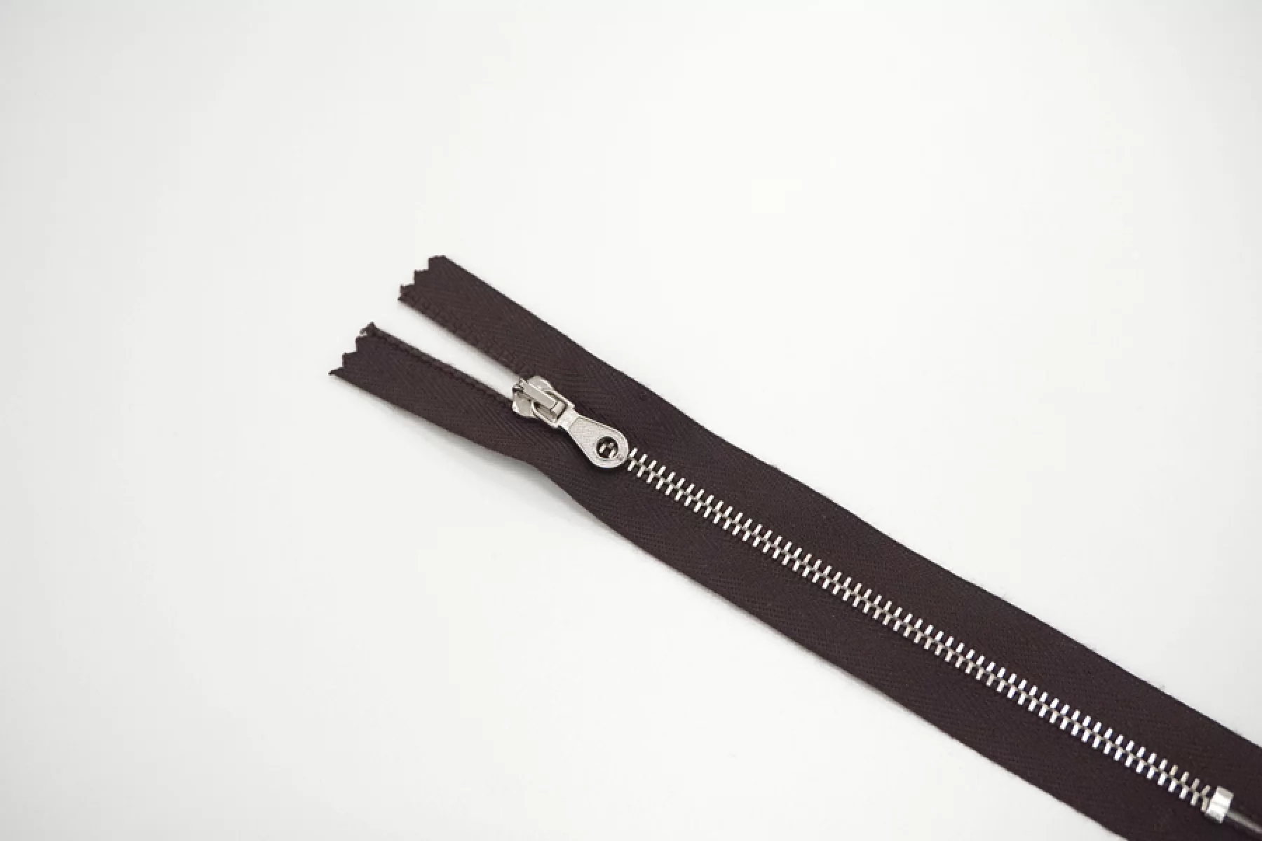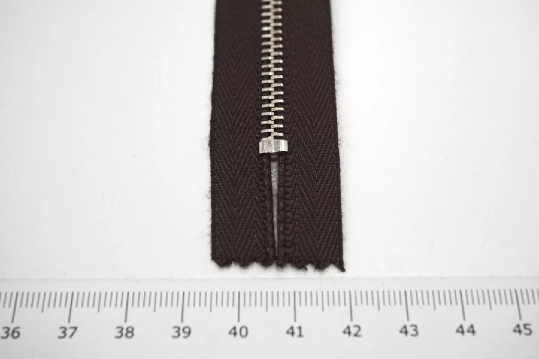 Молния от "Lampo" неразъемная, темно-коричневая, цвет зубцов серебристый. Длина 14 см.