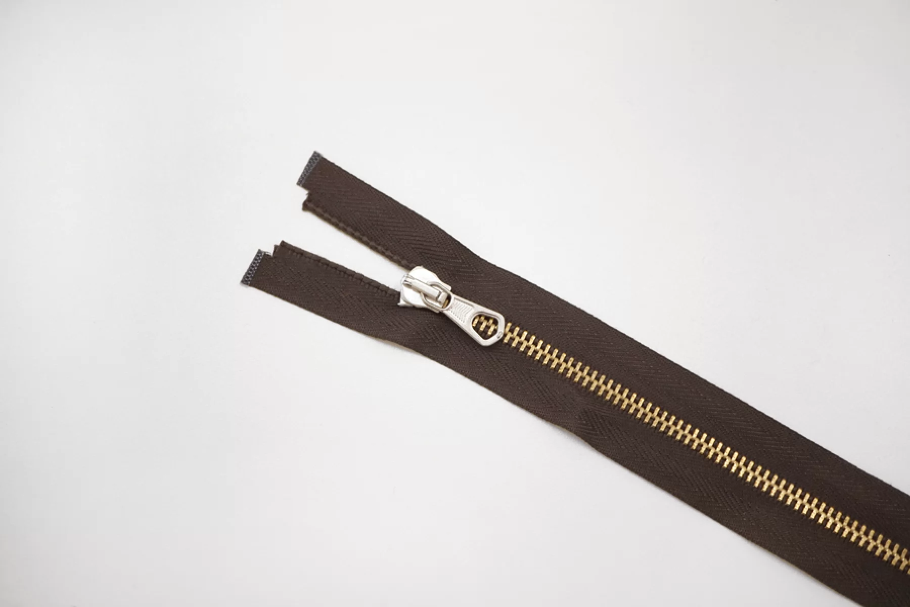 Молния от "Lampo" неразъемная, темно-коричневого цвета,цвет зубцов золотистый, пуллера и слайдера серебристый. Длина 16 см.