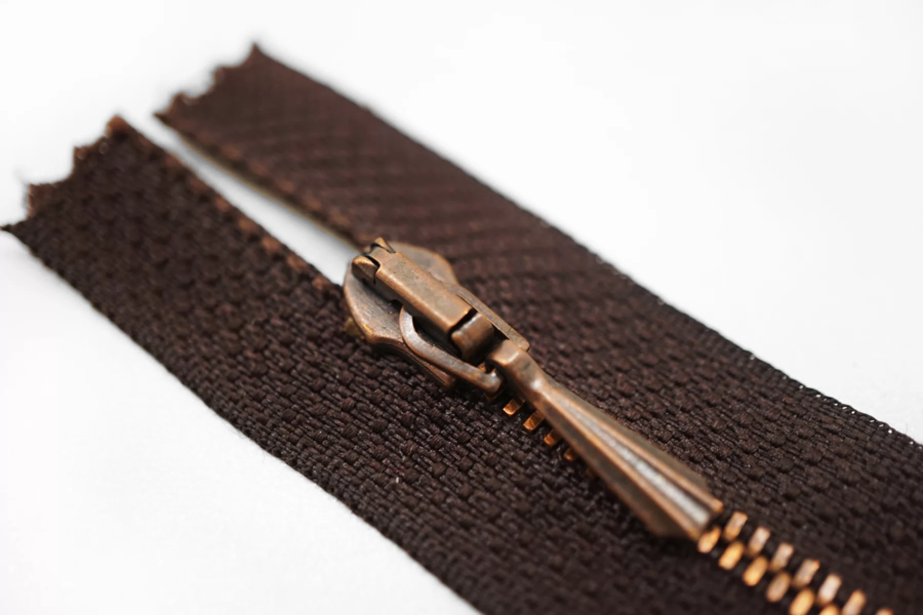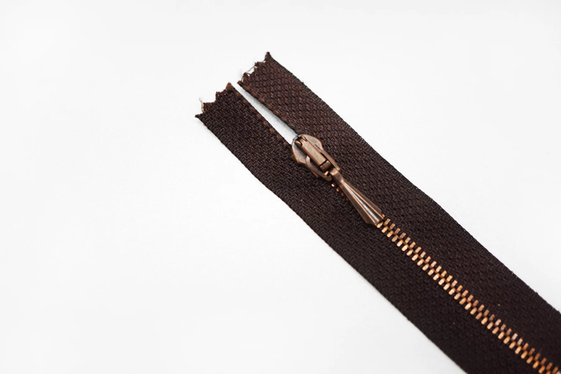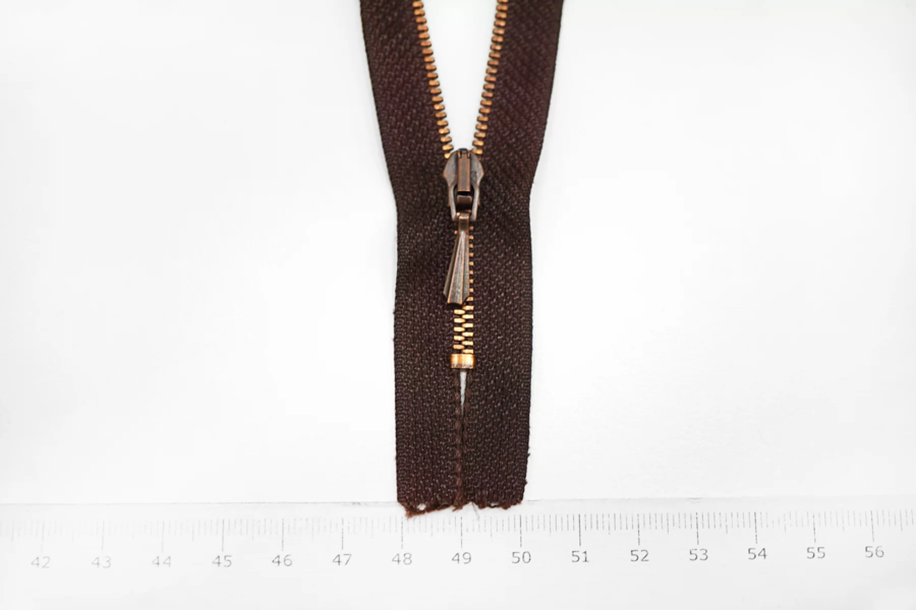 Молния от "Lampo" неразъемная, темно-коричневая с красным оттенком, цвет зубцов красновато-бронзовый. Длина 8 см.