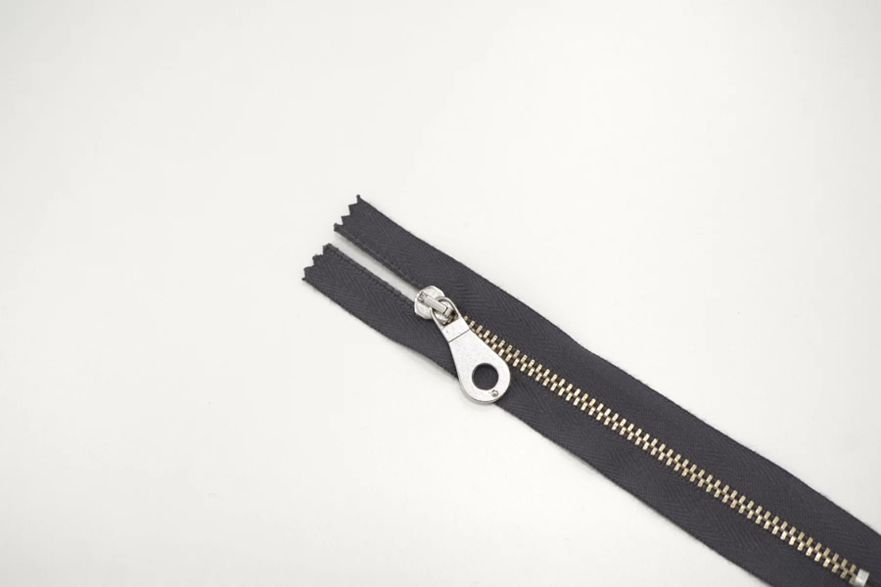 Молния от "Lampo" неразъемная, темно-серая, цвет зубцов светло-золотистый, крупный слайдер и пулер серебристый. Длина 13 см.