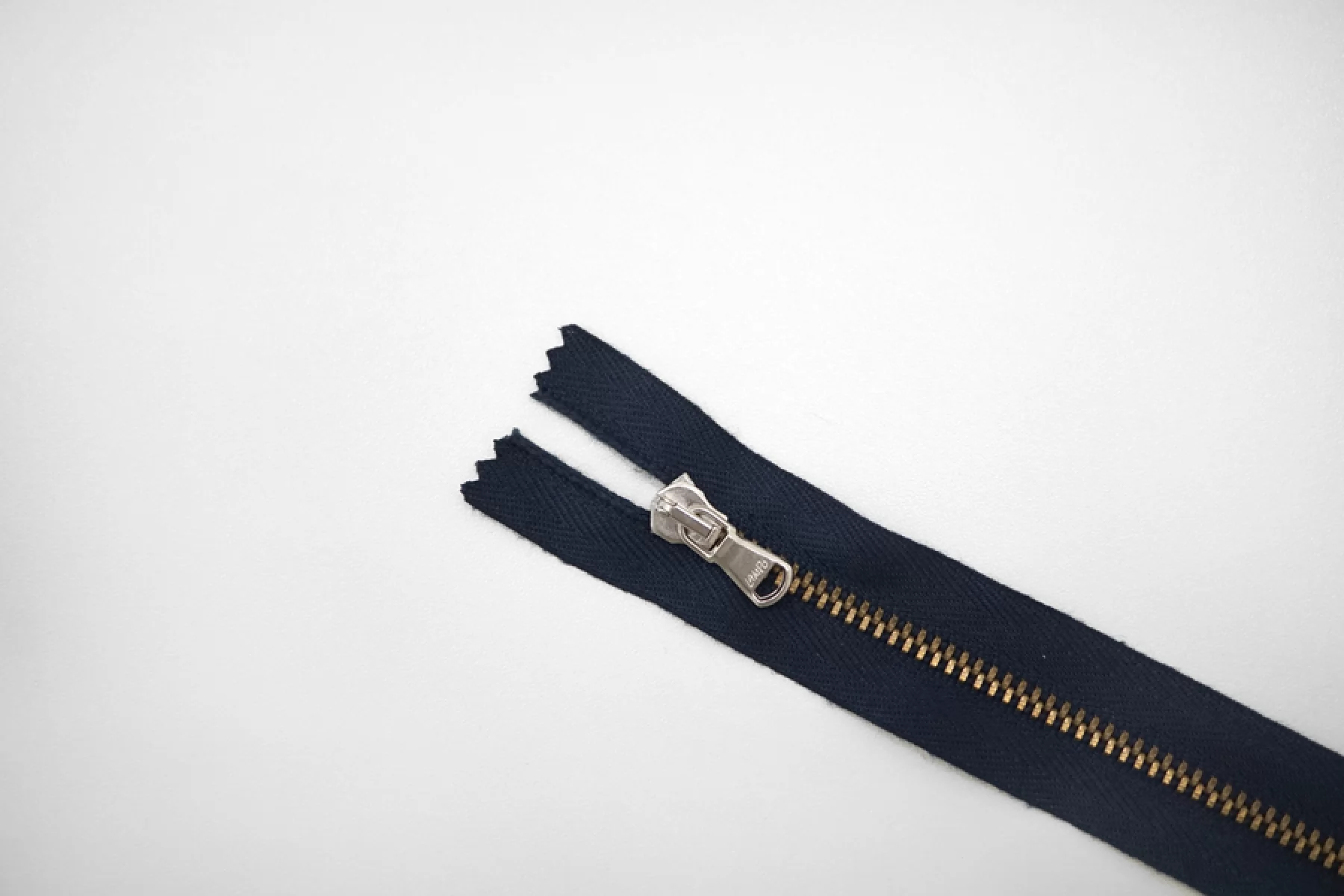 Молния от "Lampo" неразъемная, темно-синяя, цвет зубцов золотистый, слайдера и пуллера серебристый. Длина 18 см.