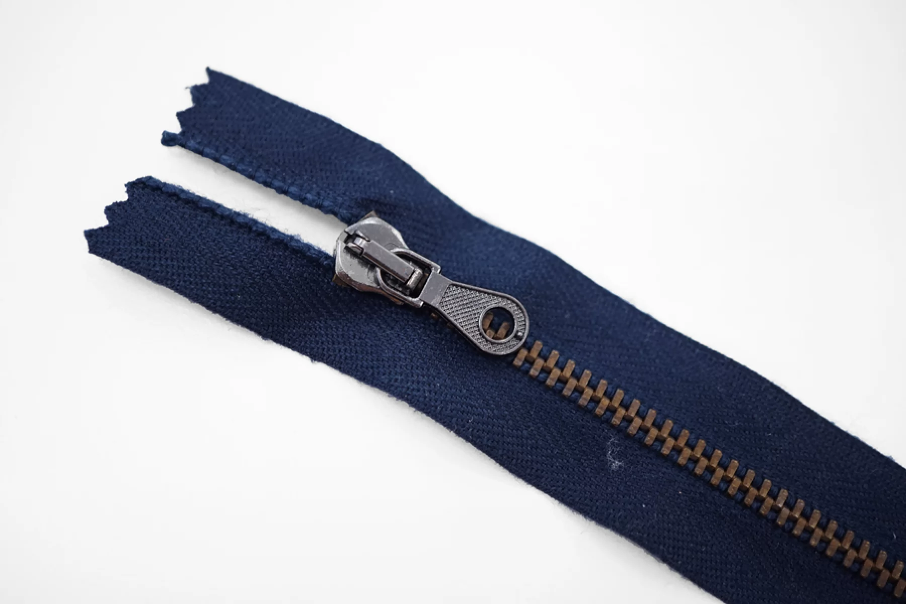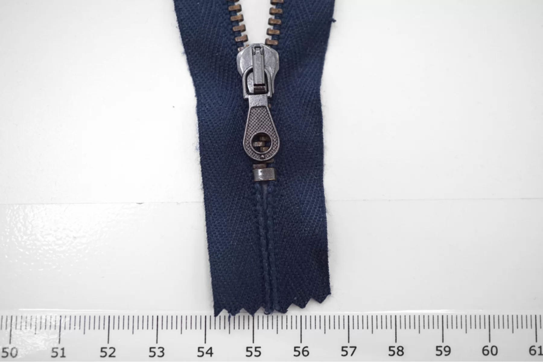Молния металлическая от "Lampo" неразъемная, темно-синего цвета, цвет пуллера и слайдера темный никель. Длина 20 см.