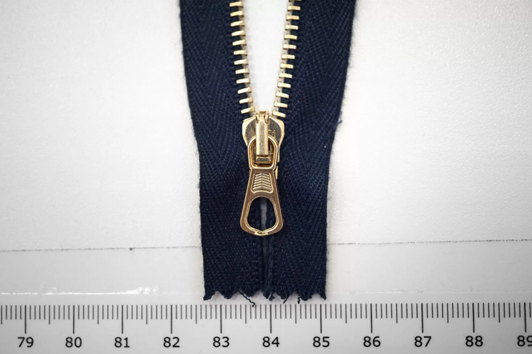 Молния от "Lampo" неразъемная, однозамковая, темно-синего цвета, цвет зубцов золотистый. Длина 9 см.
