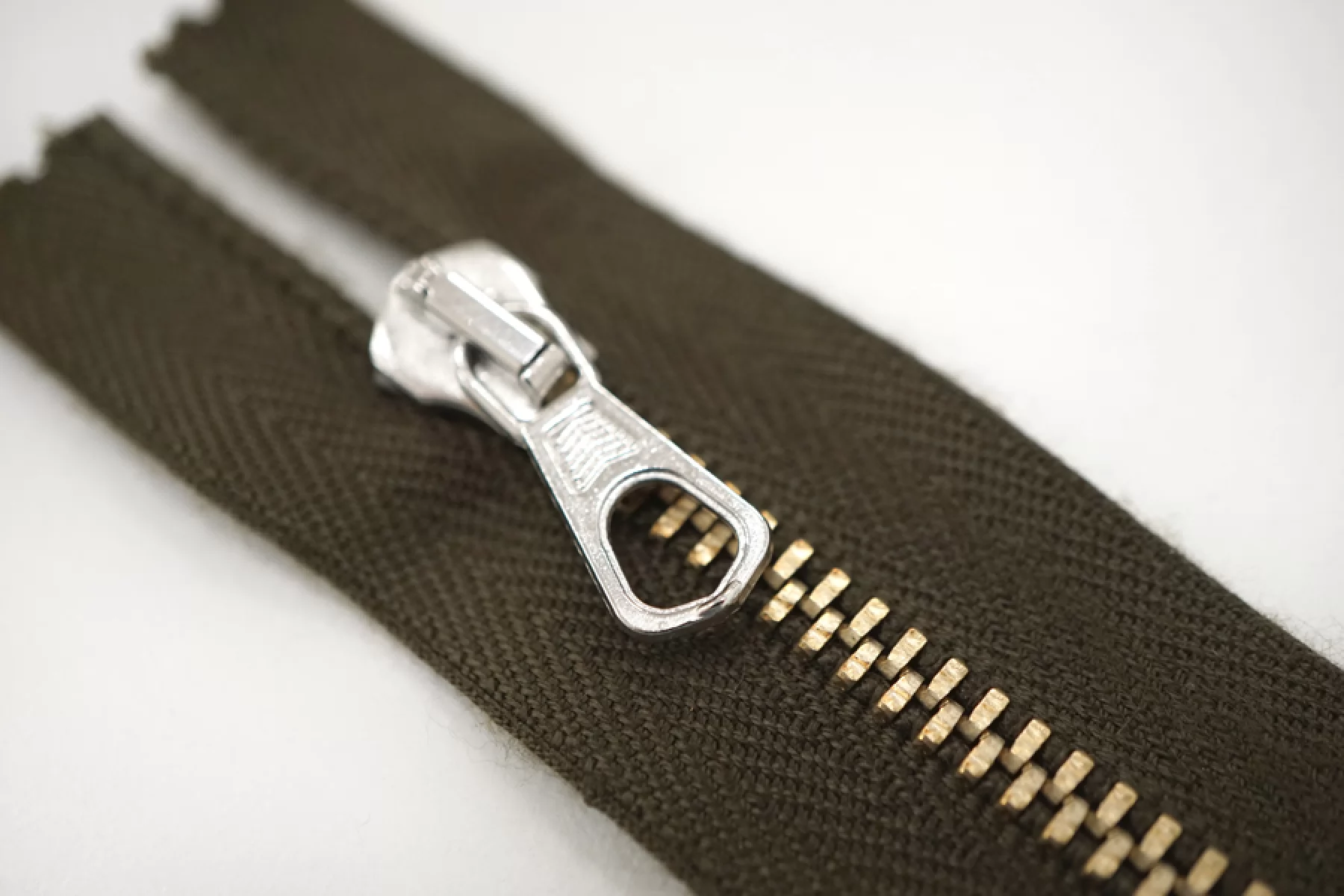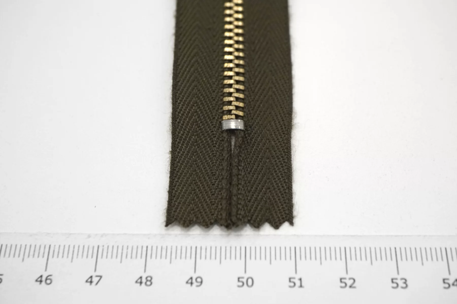 Молния от "Lampo" неразъемная, темно-зеленая, цвет зубцов - золотистый, слайдер и пулер - серебристые. Длина 7 см.